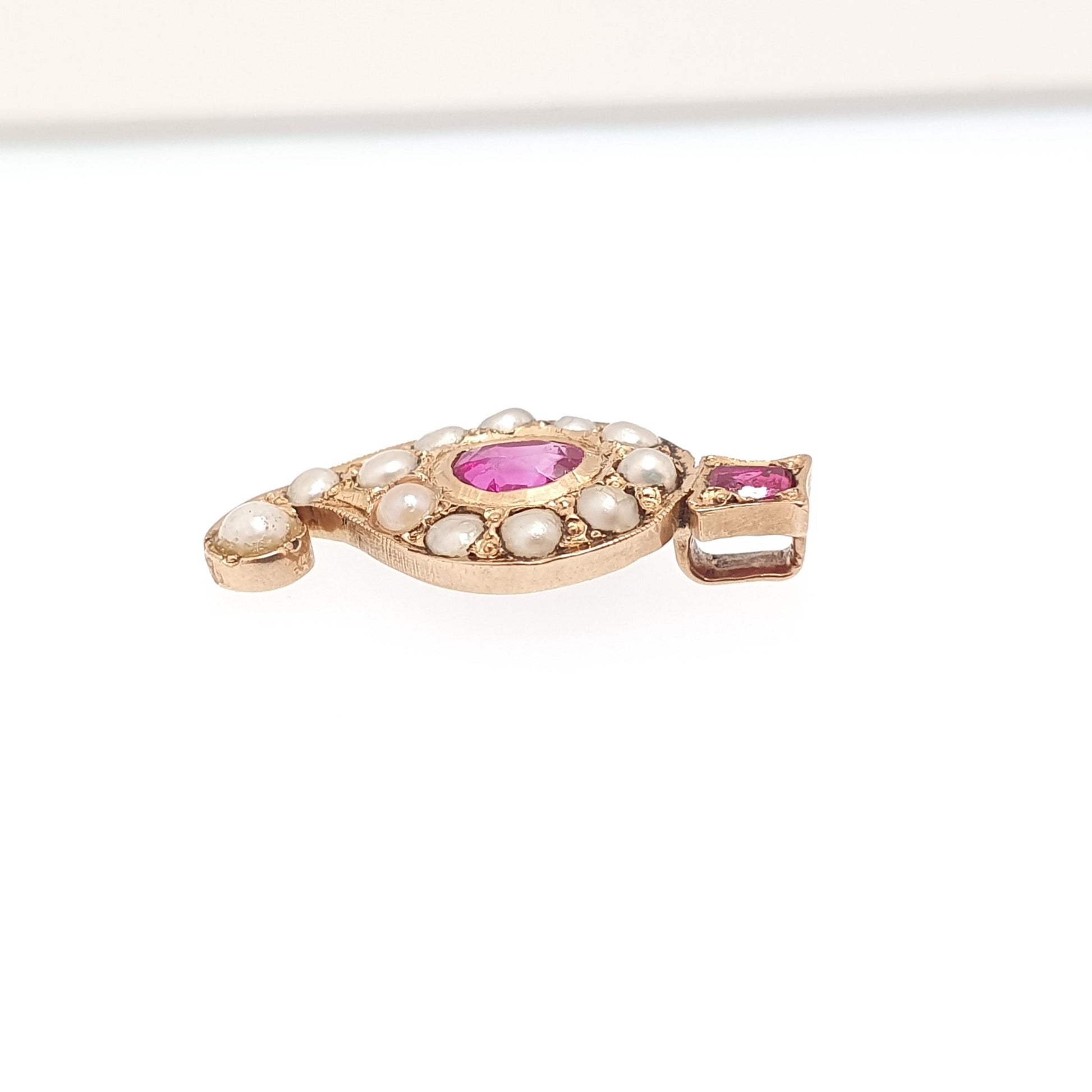 Antique Victorian 18ct 18k Gold Ruby Pearl Necklace Pendant Victorian Teardrop Solid 750 Vintage Jewelry Jewellery