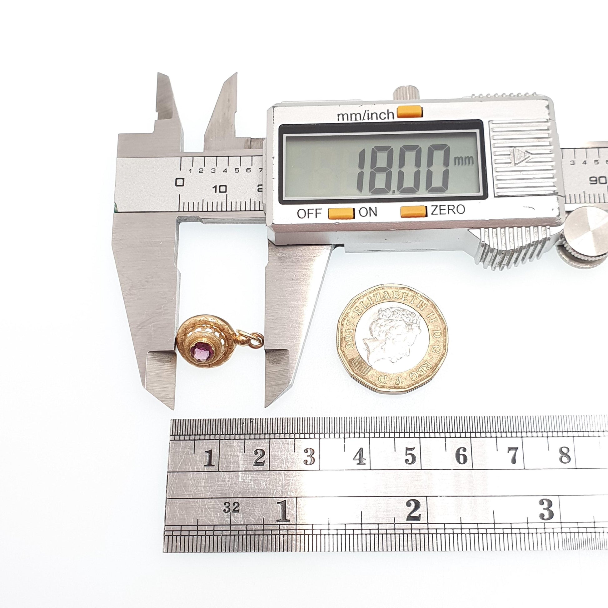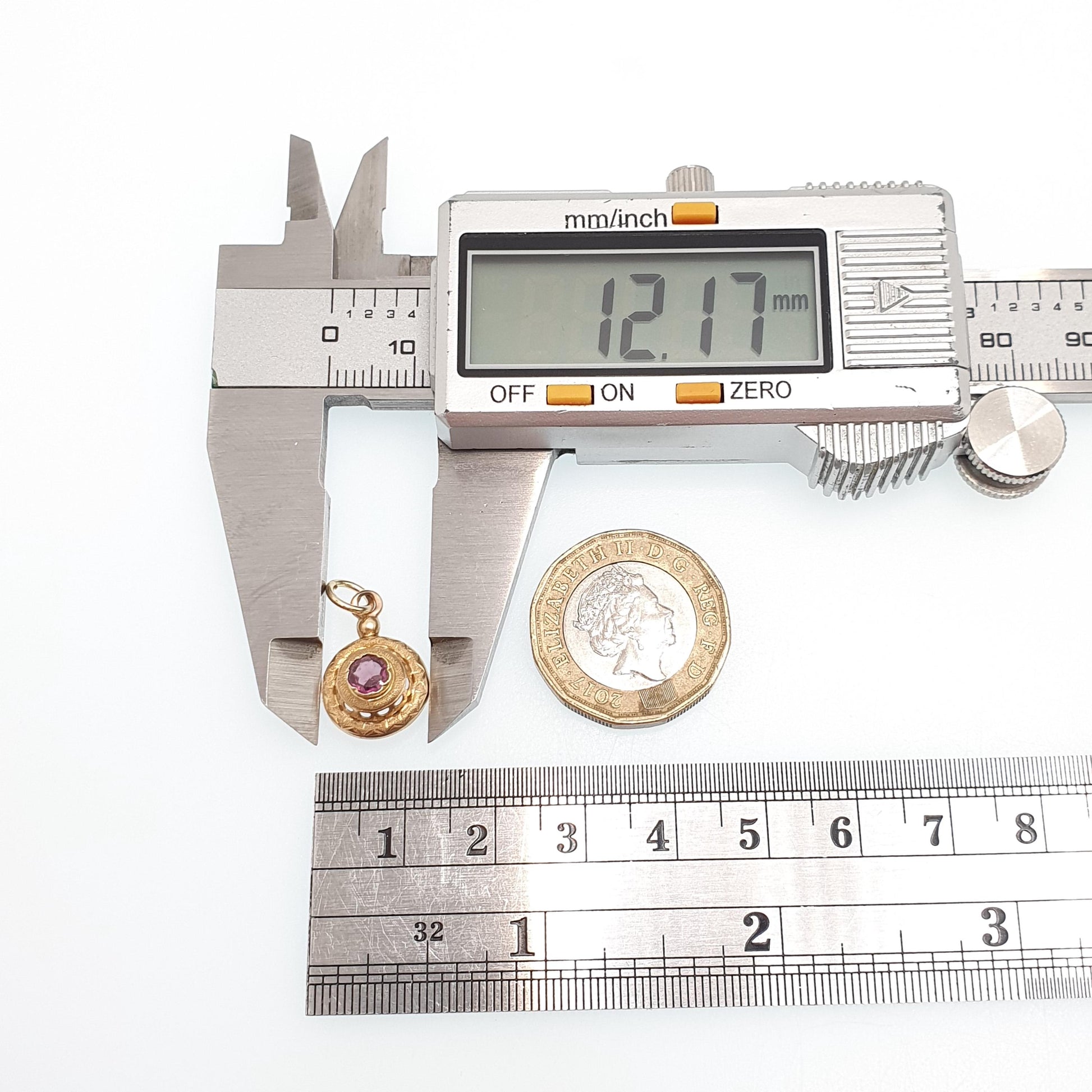 DESCRIPTION: A beautiful antique French solid 18ct yellow gold pendant, adorned with an amethyst in a round cut shape. The pendant is stamped with the French 18ct gold eagle head and also tests for solid 18ct gold. It weighs approx. 0.74g and the size dimensions are in the later photos.