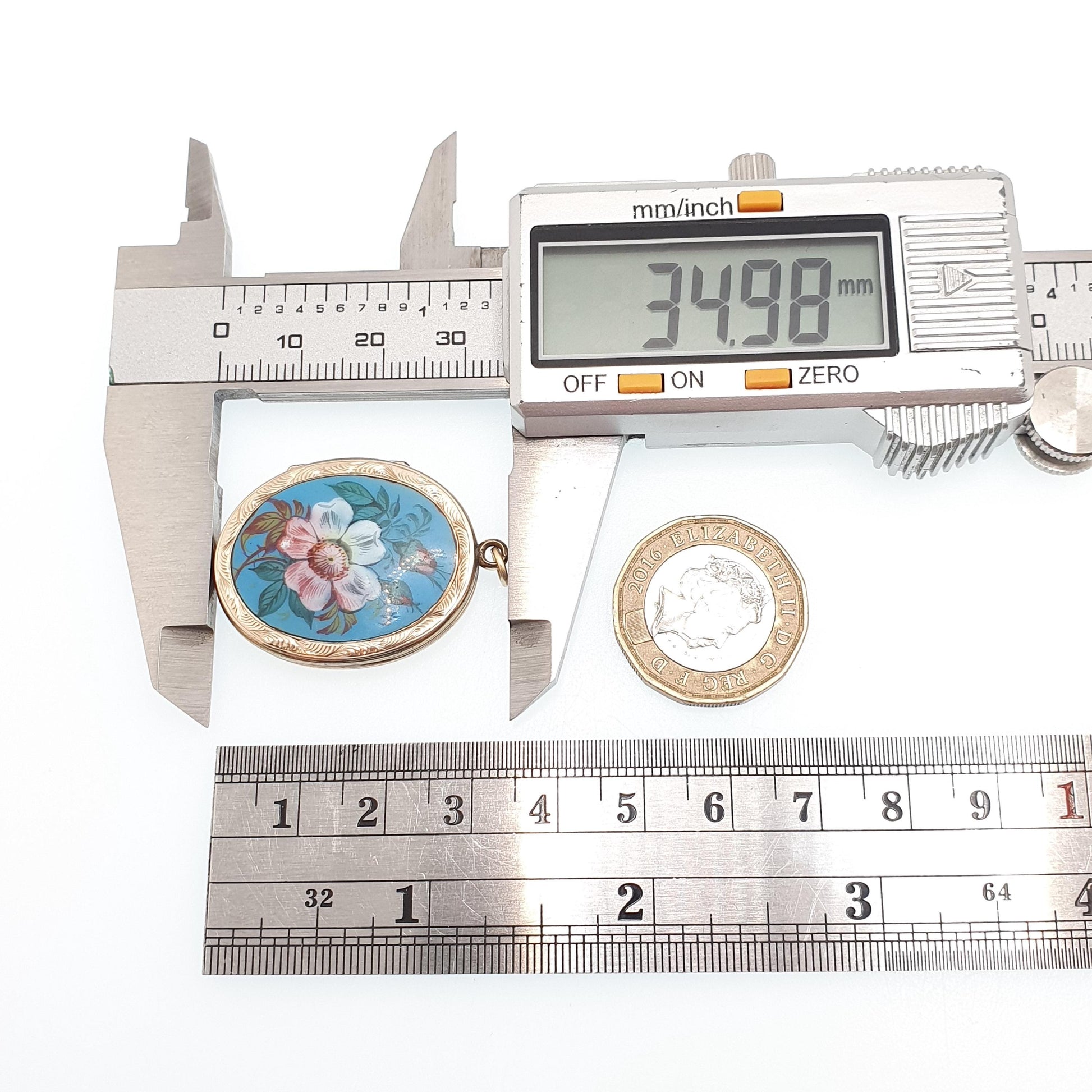 Antique Victorian 9ct 9k Gold Locket Enamel Flower Hand Painted Necklace Pendant Large Big Solid Back & Front Engraved Jewelry Jewellery