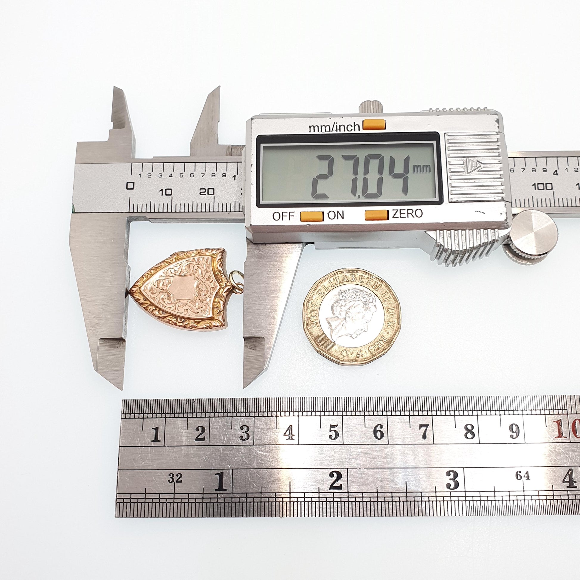 Antique Victorian 9ct Gold Shield Locket 9kt 9k Rose Back and Front Pendant Engraved Picture Photo Vintage Jewellery Jewelry