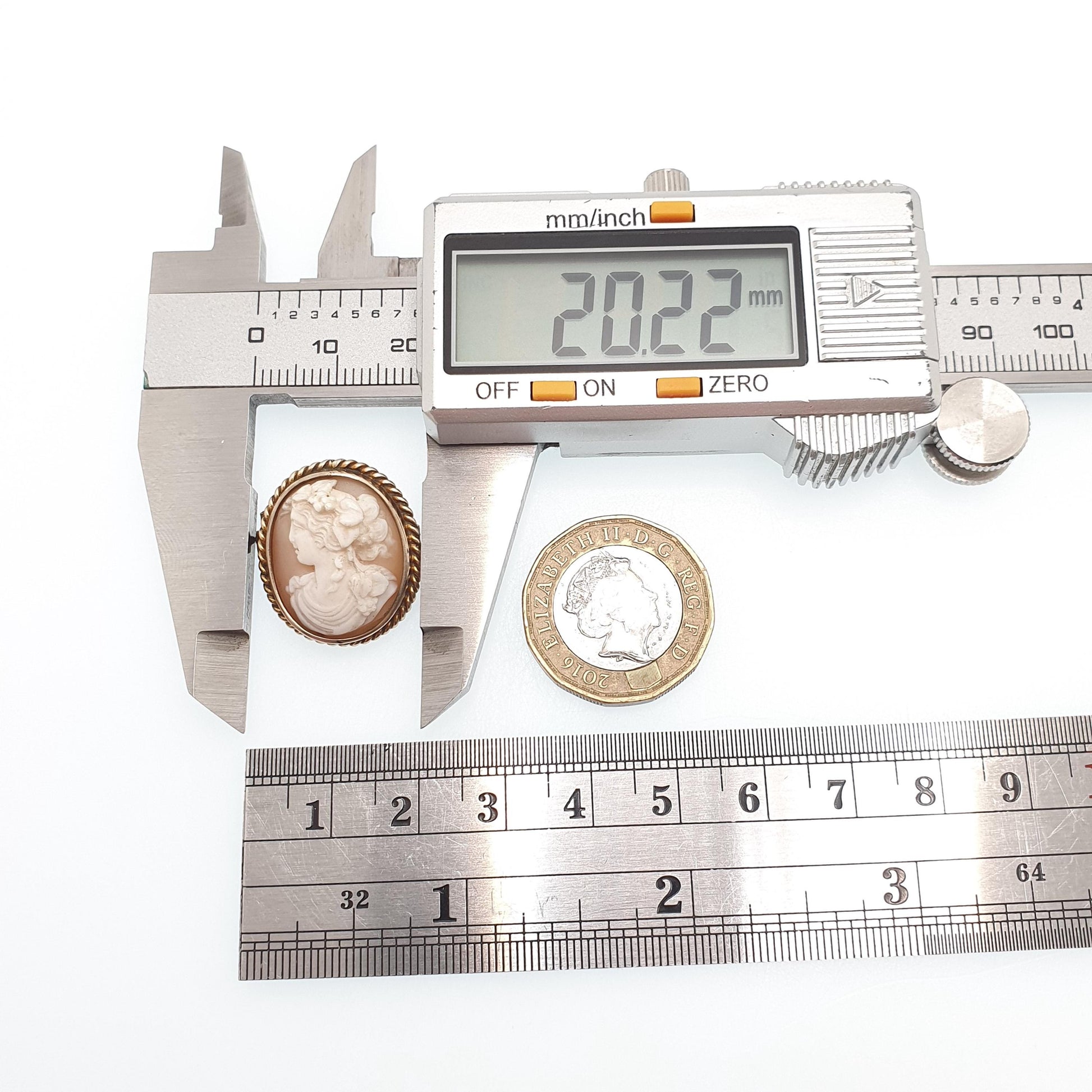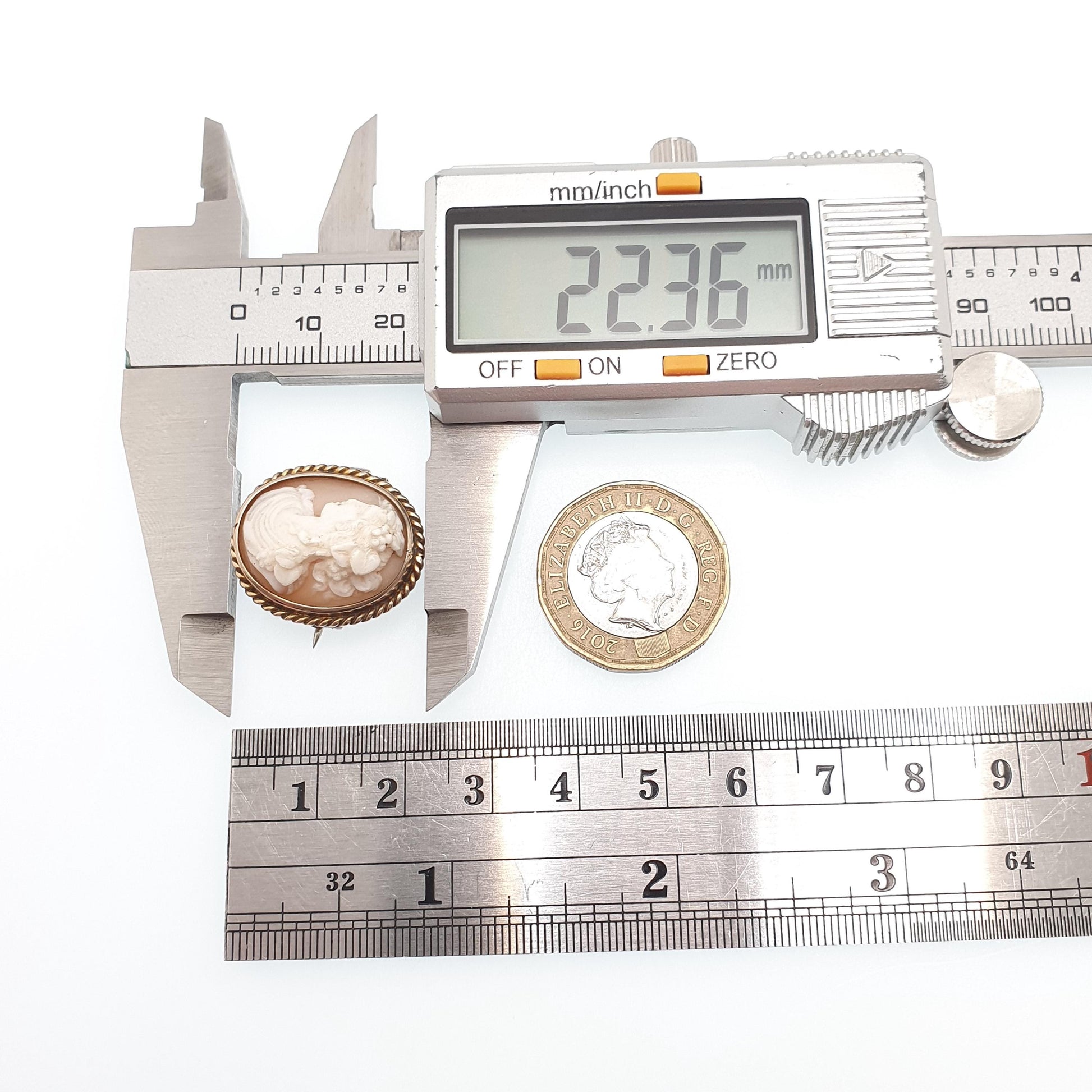 DESCRIPTION: A lovely antique Victorian genuine shell cameo brooch, mounted in a solid 9ct 375 gold frame. The cameo itself has good detail with a high relief. The item weighs approx. 3.88g and the size dimensions are in the later photos. As to be expected with the items age, it isn't stamped/hallmarked but tests as explained above.
