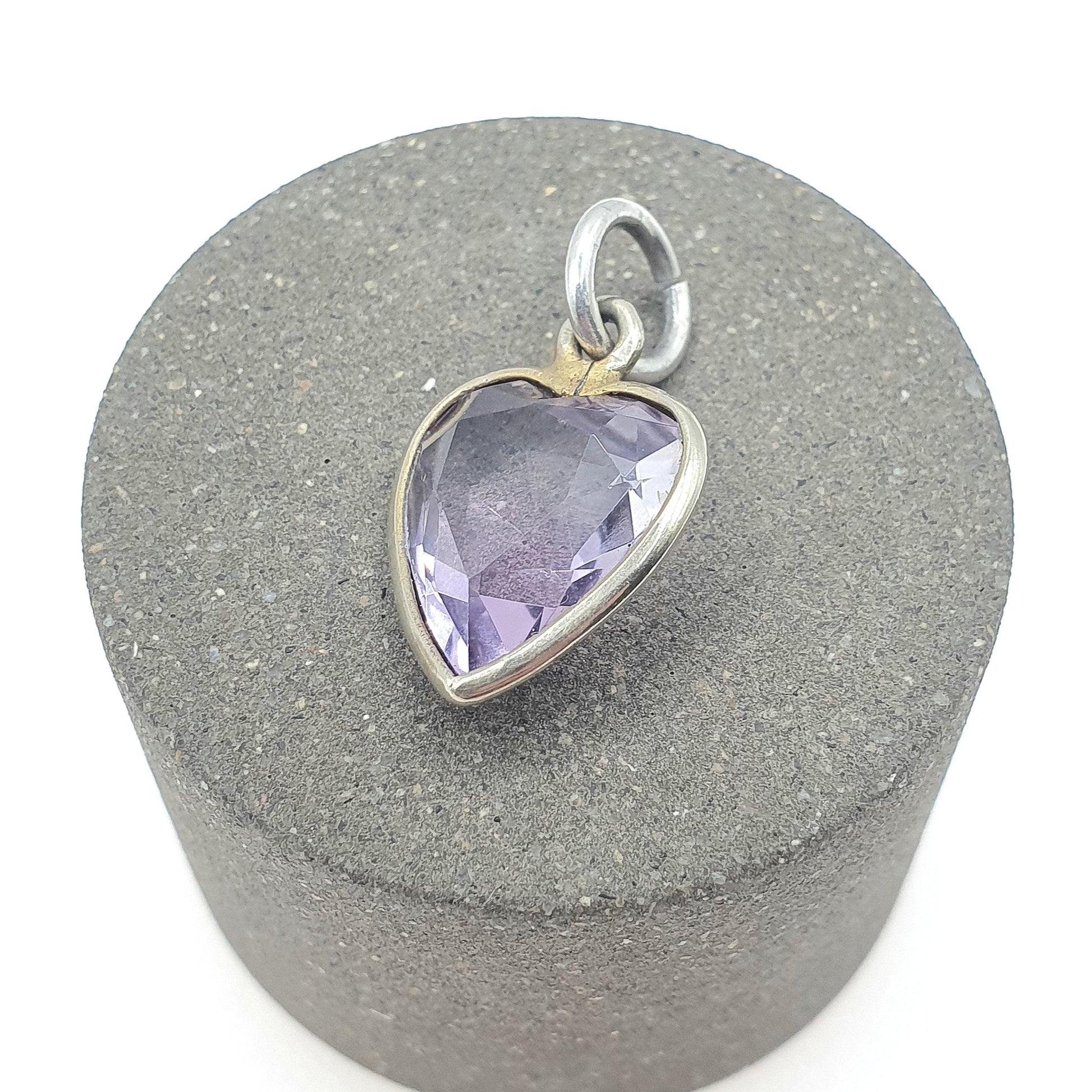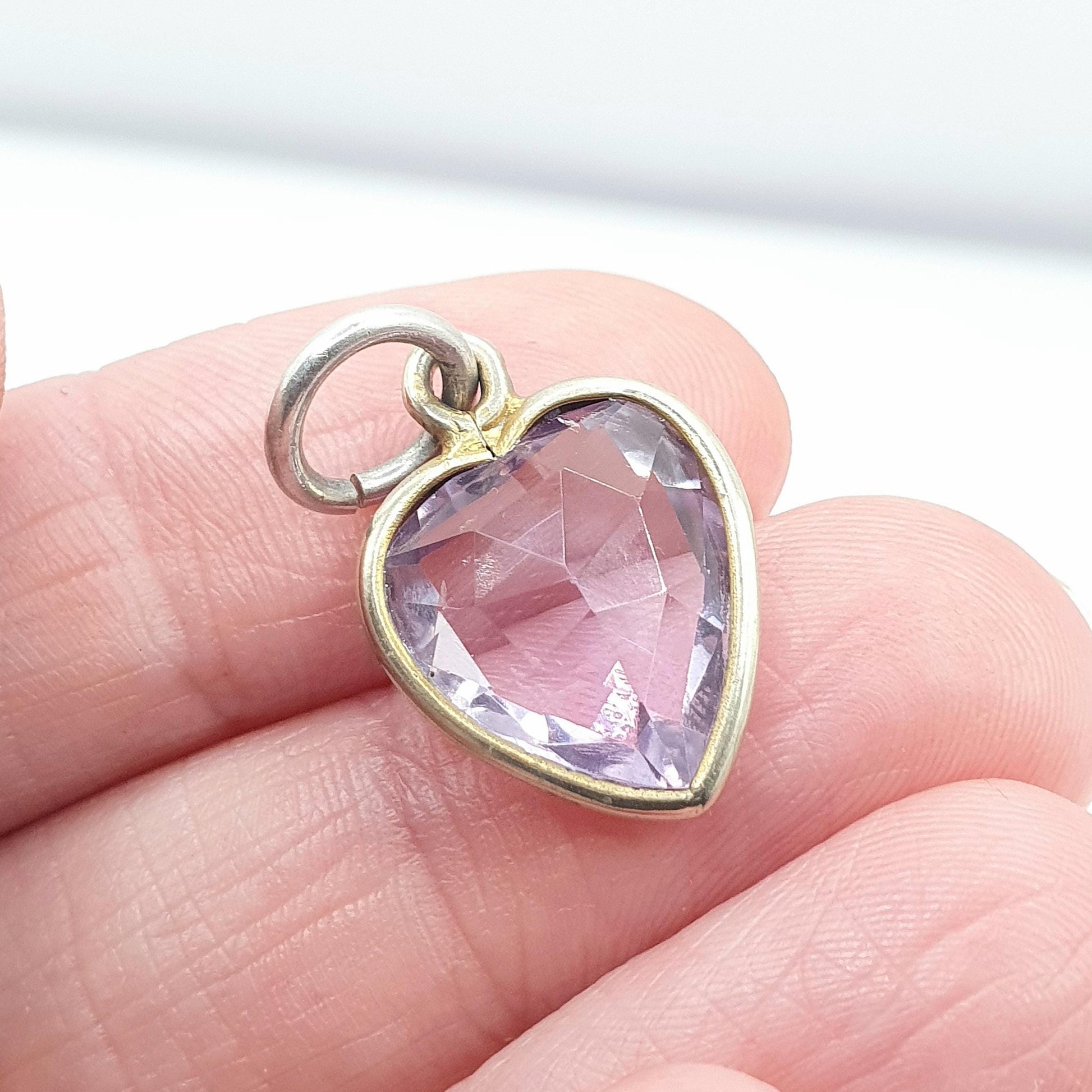 Antique Victorian Amethyst Heart Pendant Charm Lilac Gemstone Silver Tone Base Metal Love Romantic Womens Jewelry Vintage Jewellery