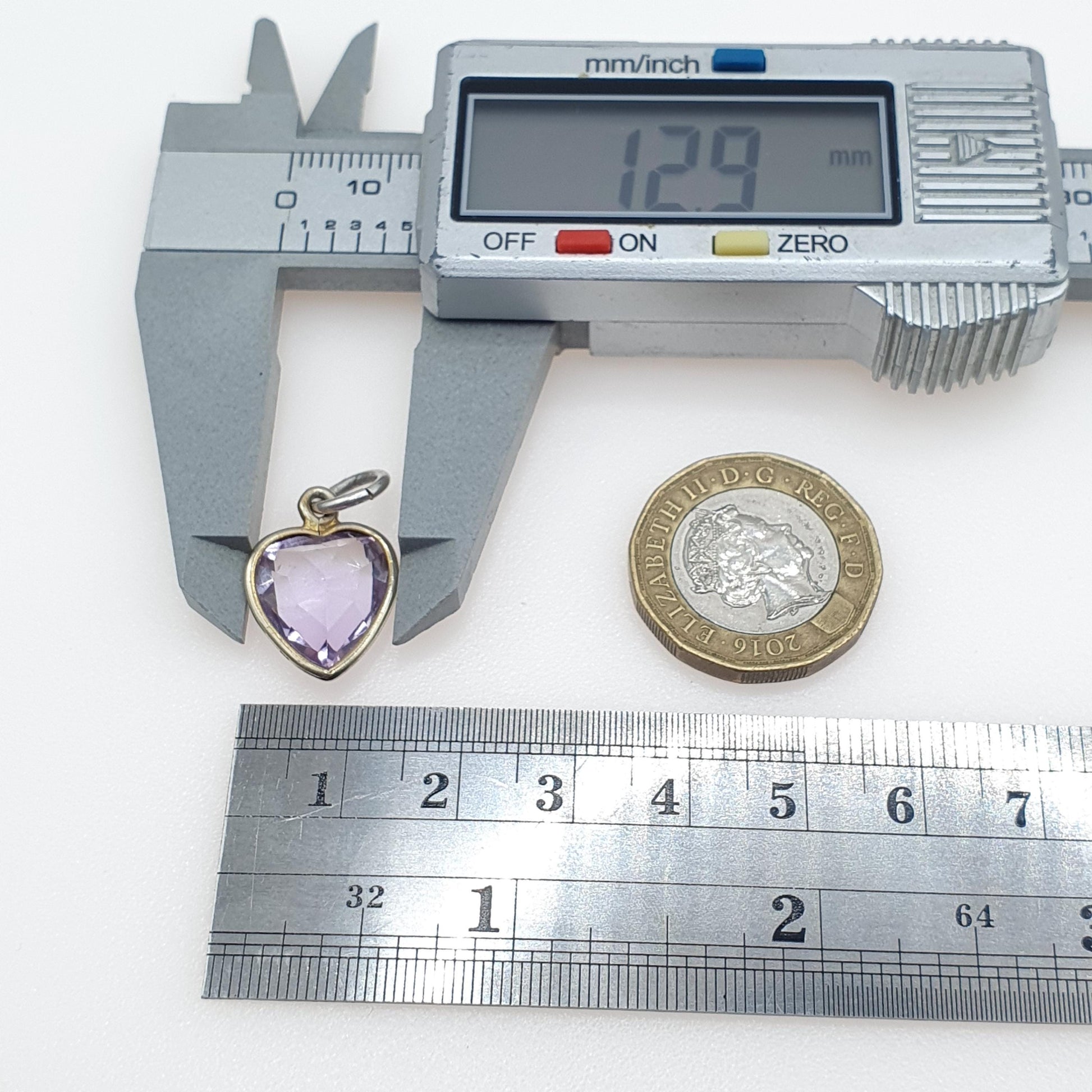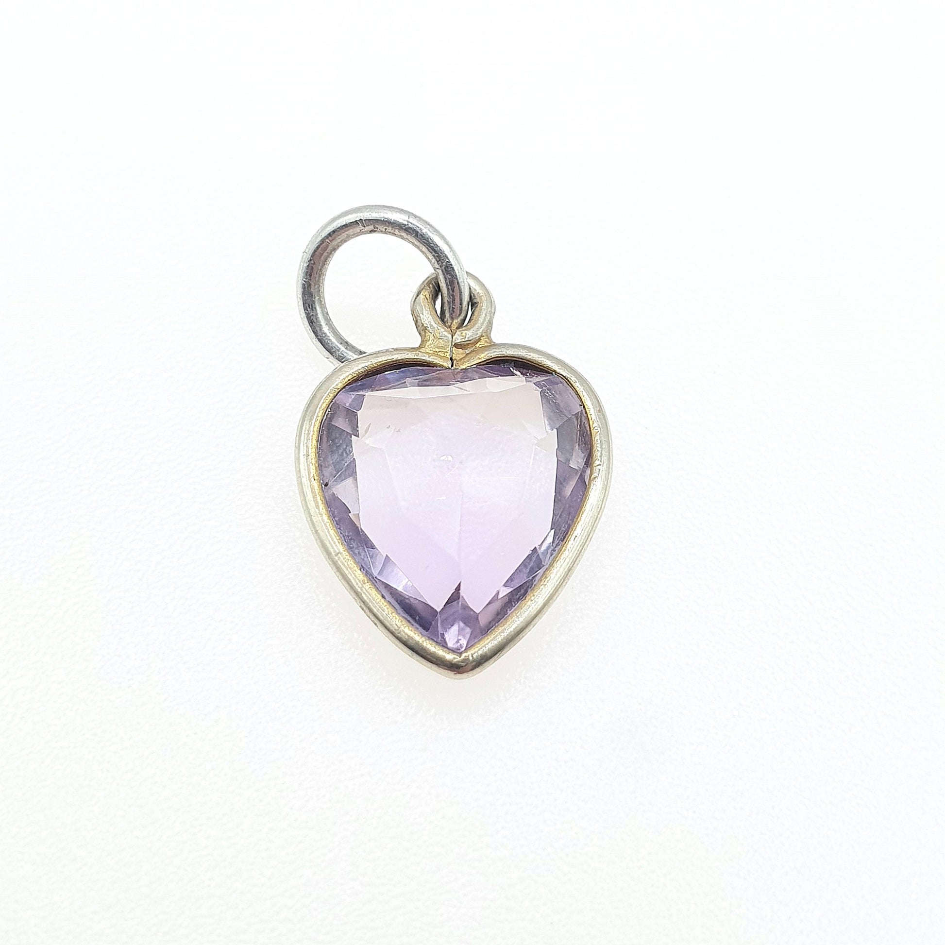 DESCRIPTION: A cute antique Victorian genuine amethyst heart charm, made from a silver tone base metal. The charm weighs approx. 1.87g and the size dimensions are in the later photos.