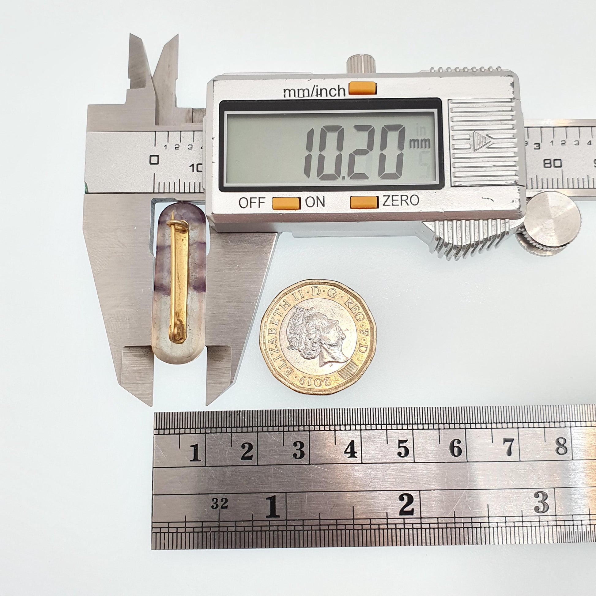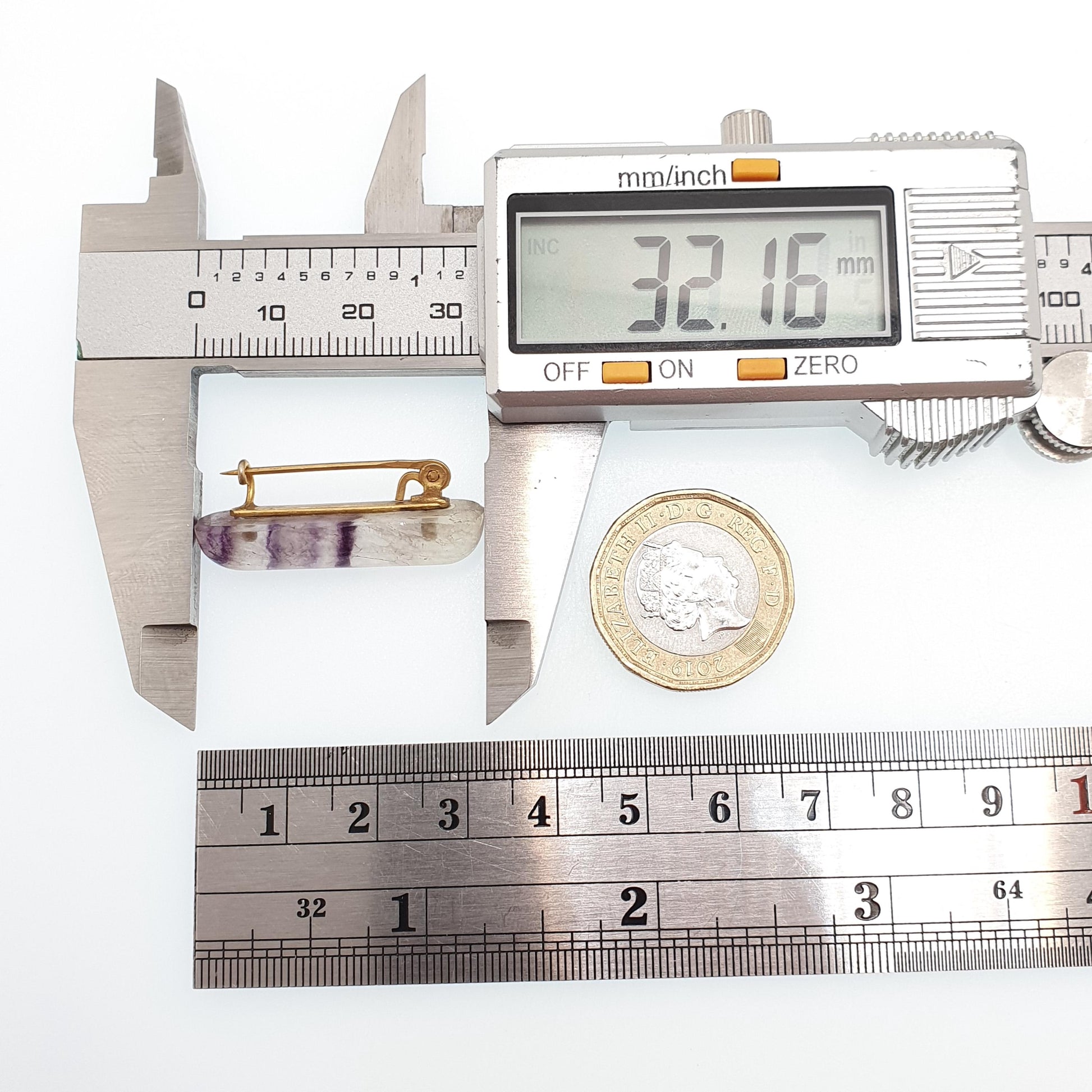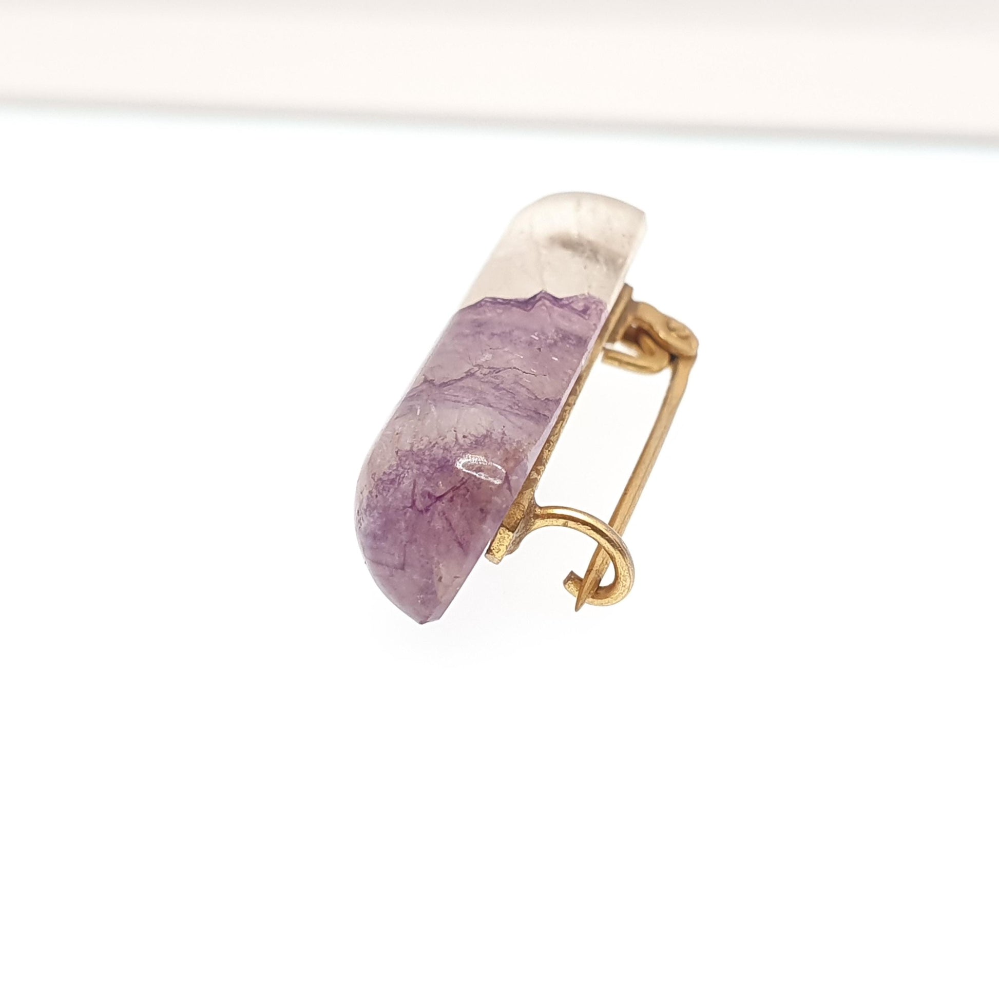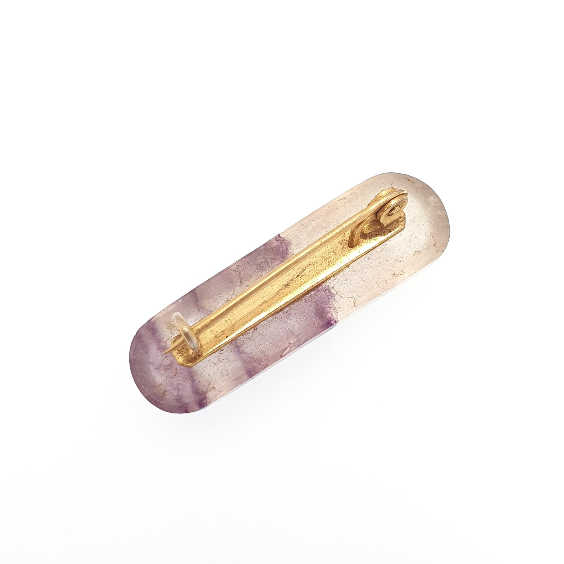 DESCRIPTION: A very rare genuine antique Victorian Blue John brooch. It weighs approx. 5.64g and the size dimensions are in the later photos. The brooch is made from gold gilt base metal.