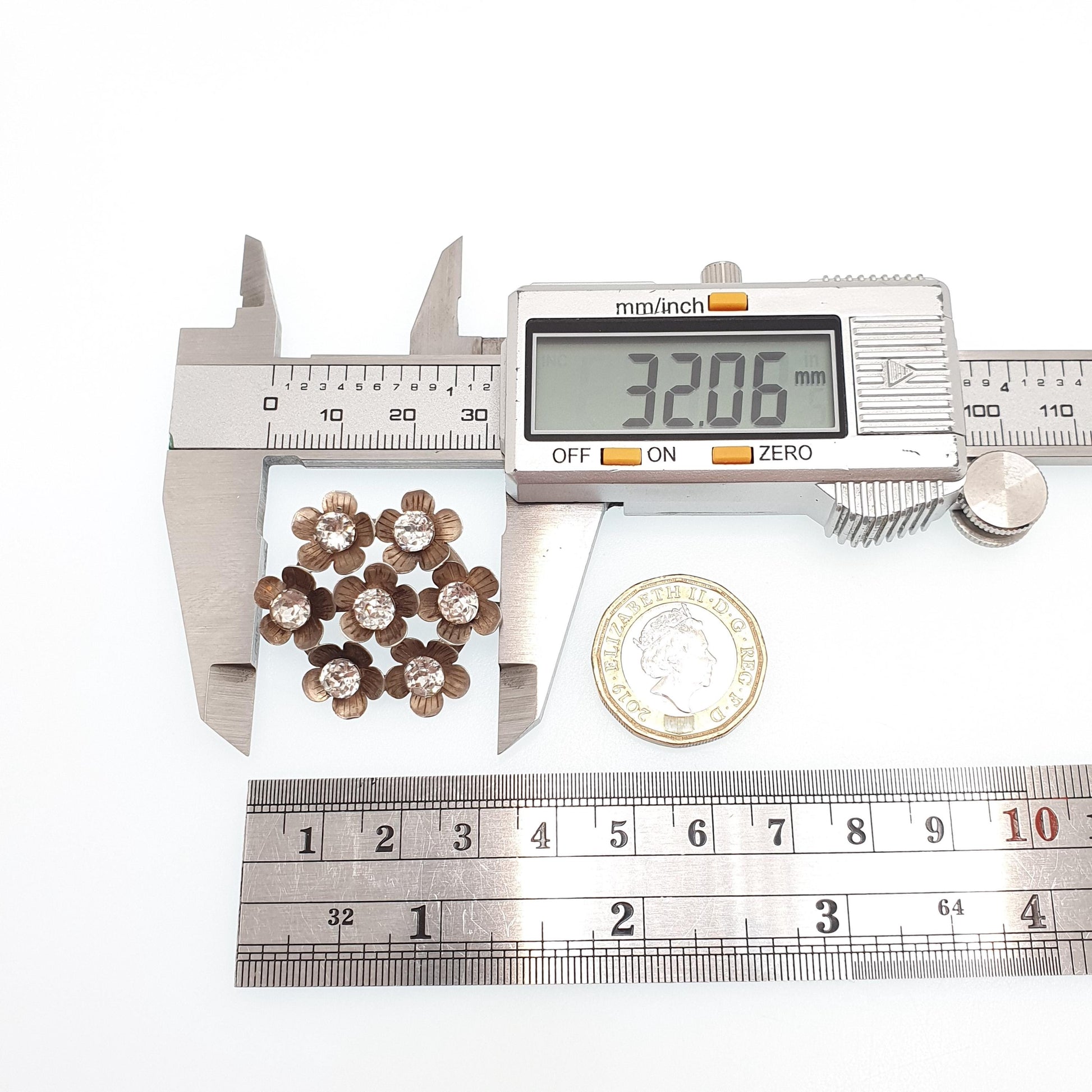 DESCRIPTION: A gorgeous antique Victorian sterling silver flower brooch, adorned with numerous sparkly diamond pastes. The pastes still have a good sparkle with some minor darkening as to be expected with age. The brooch weighs approx. 6.05g and the size dimensions are in the later photos. It's fully hallmarked for sterling silver, dating to 1889.