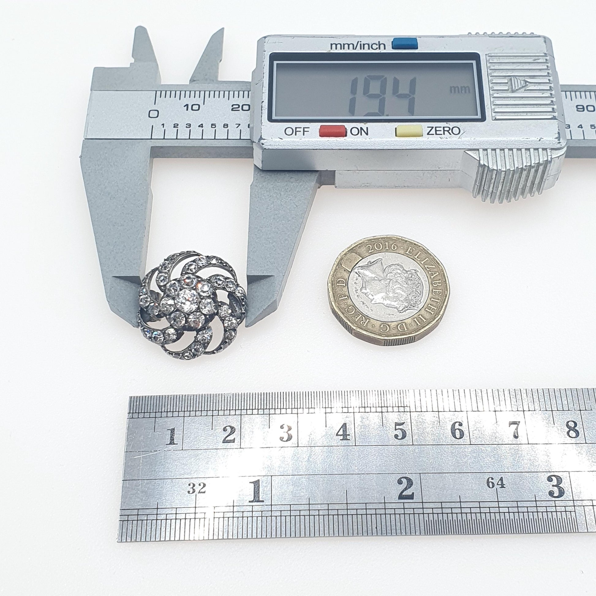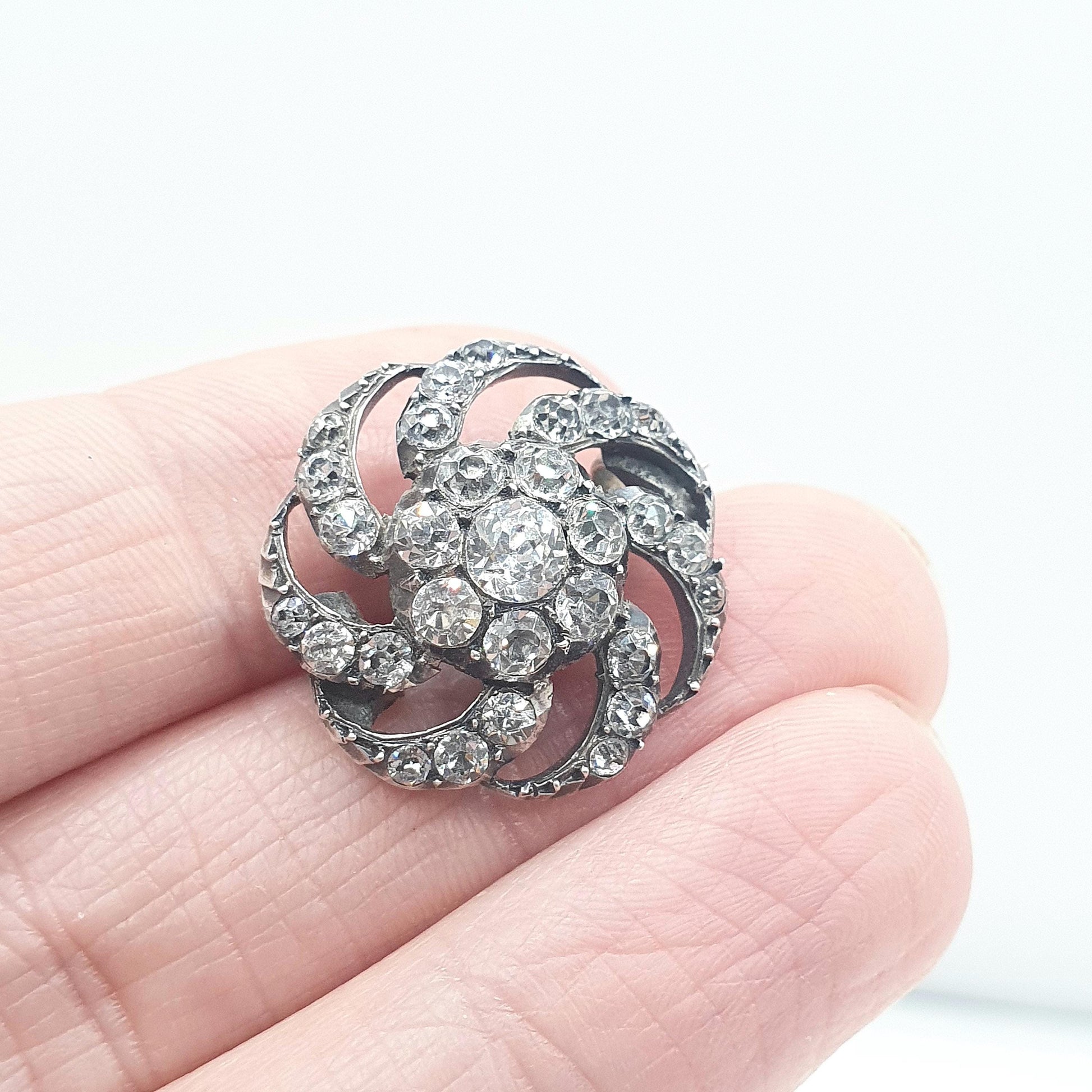 Antique Victorian Diamond Paste Solid Silver Brooch Spiral Swirl Old Cut Ornate Late 1800s Sparkly Foiled Glass Jewelry Jewellery