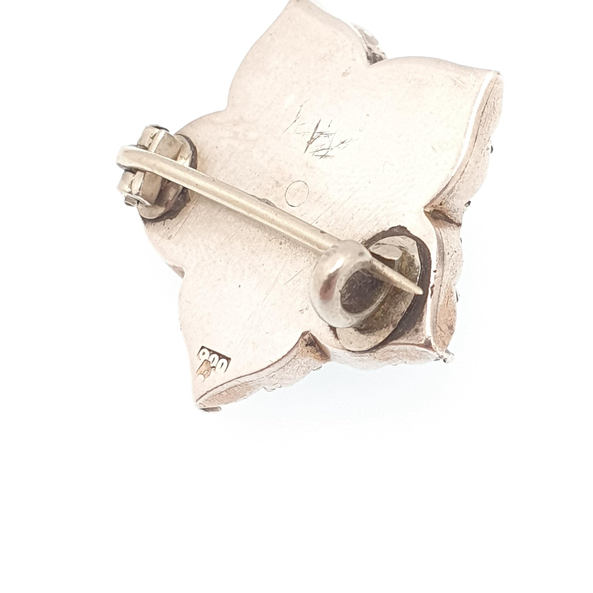 DESCRIPTION: A sparkly Victorian diamond paste and turquoise paste solid silver star brooch. The pastes still have a lovely sparkle. The brooch is stamped "900" for silver. It weighs approx. 7.33g and the size dimensions are in the later photos. The clasp and hinge have old lead repairs on them.