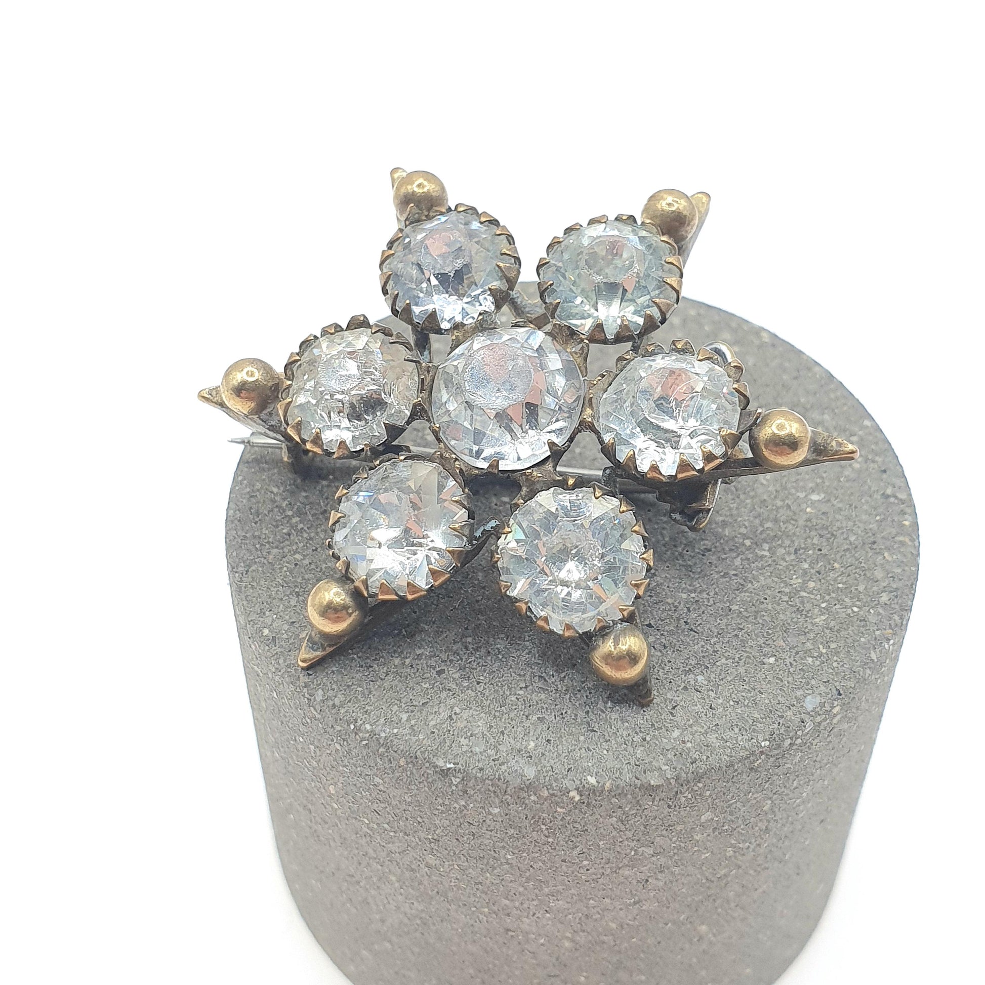 Antique Victorian Diamond Paste Star Brooch Gold Tone Base Metal Large Celestial Night Sparkly Womens Jewelry Jewellery