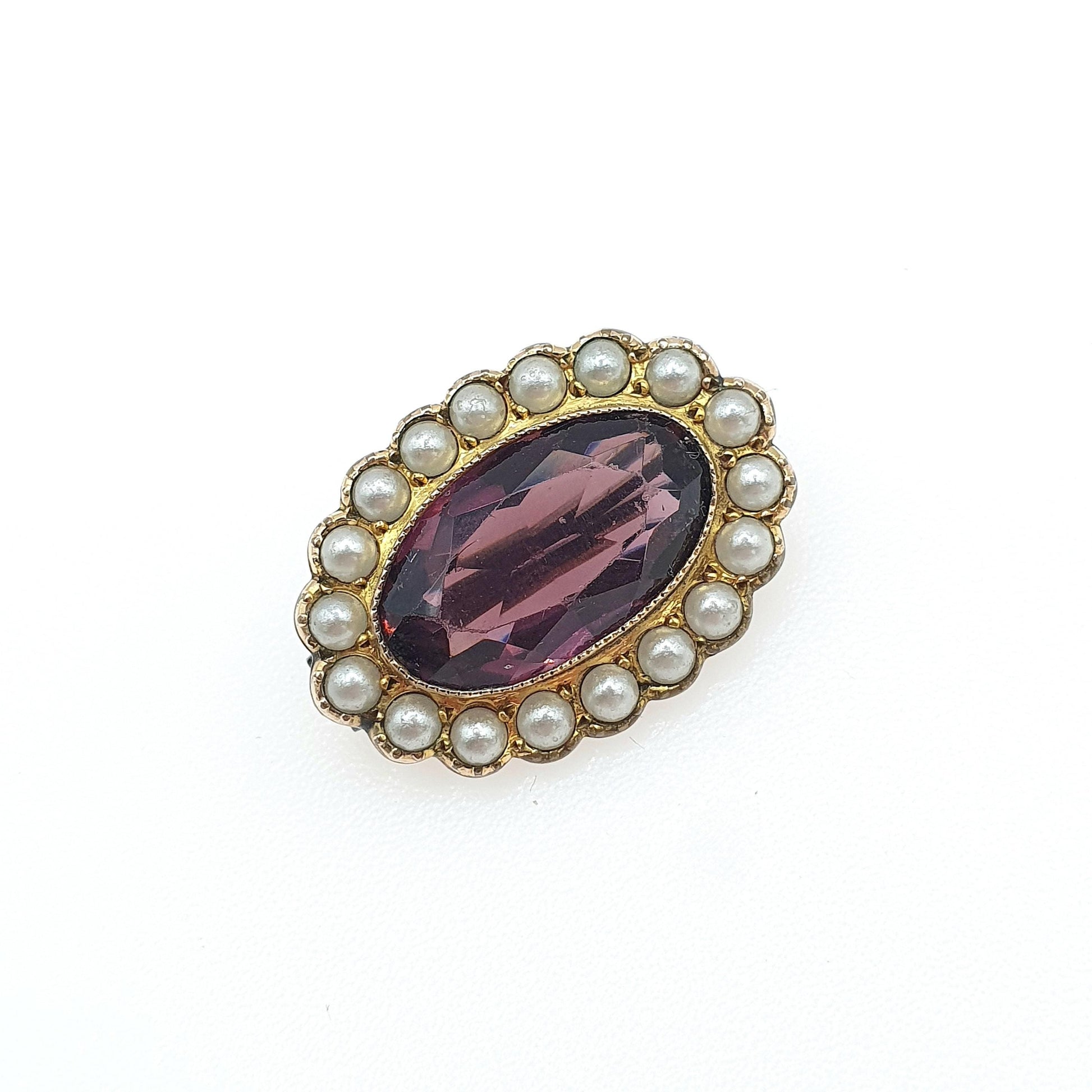Antique Victorian Gold Gilt Amethyst Paste & Faux Seed Pearl Brooch Oval Cut Purple Womens Ladies Vintage Jewelry Jewellery