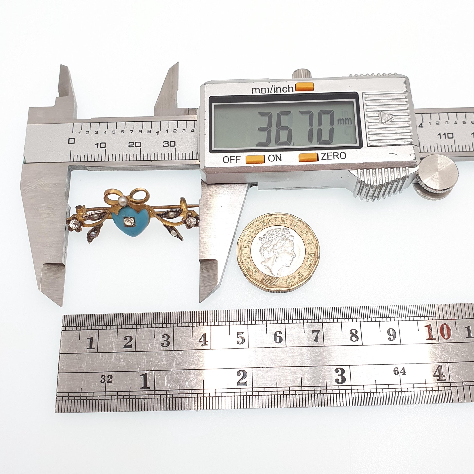 Antique Victorian Gold Gilt Enamel Heart Brooch Sky Blue Diamond Paste Bow Sweetheart Womens Jewelry Jewellery Vintage