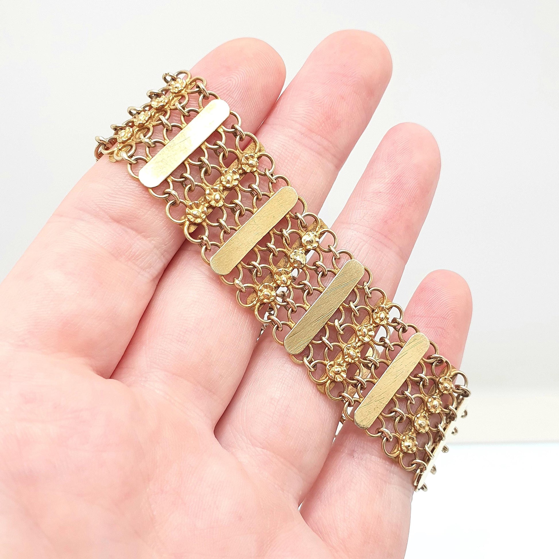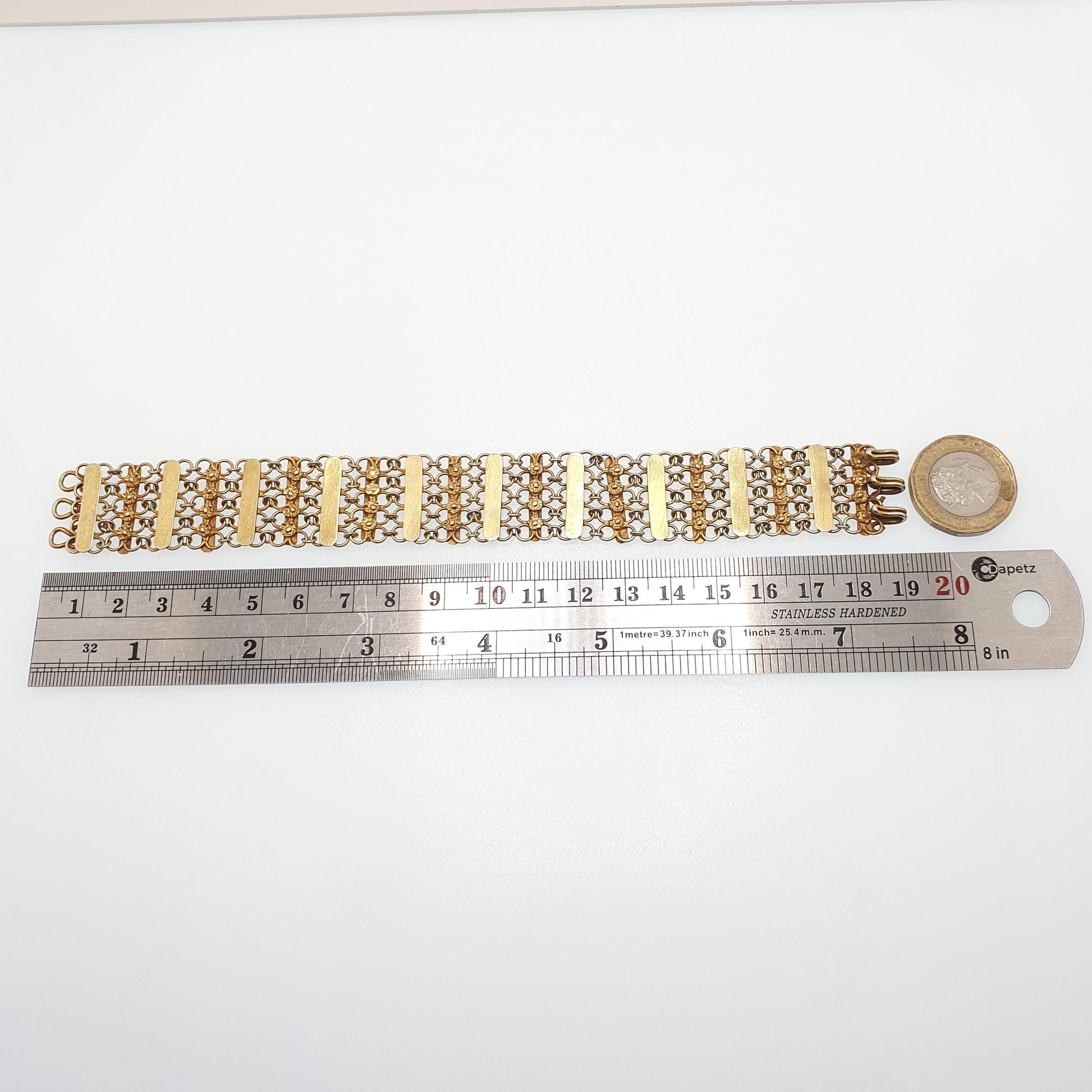 Antique Victorian Gold on Solid Silver Bracelet Gate Link Chainmail Indian Style 25.52g 19cm Flower Womens Jewelry Retro Jewellery