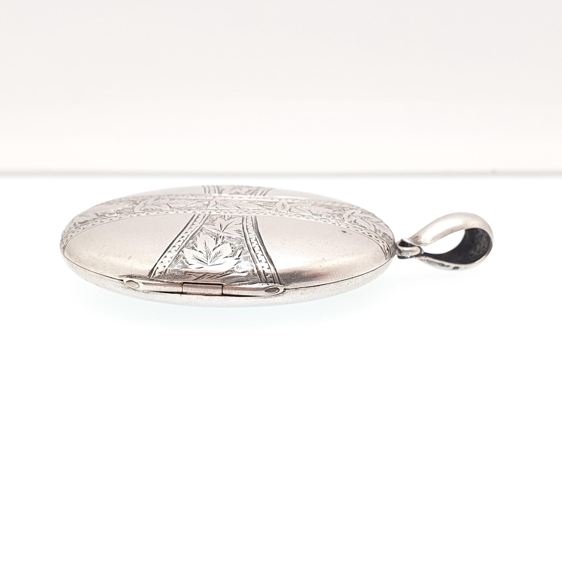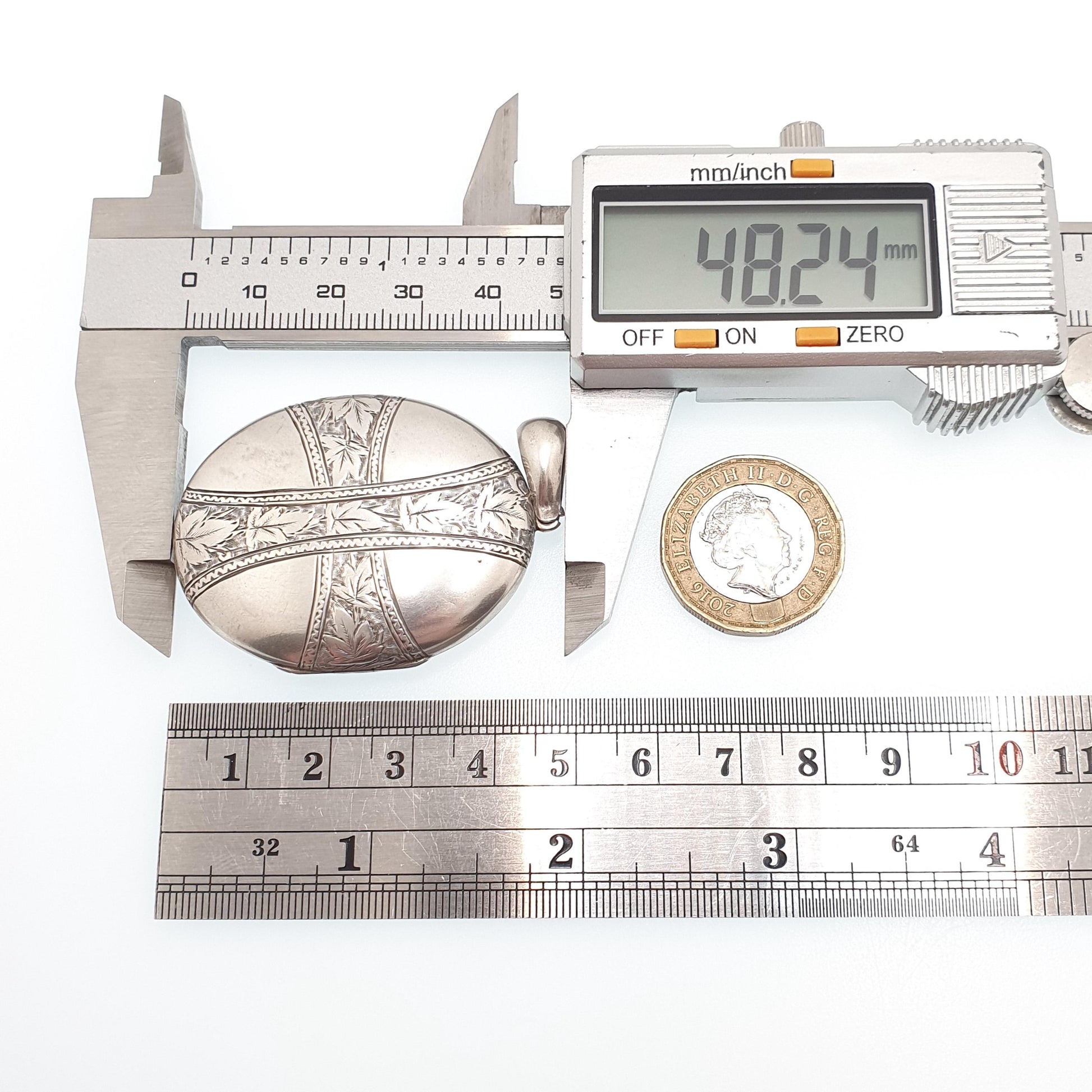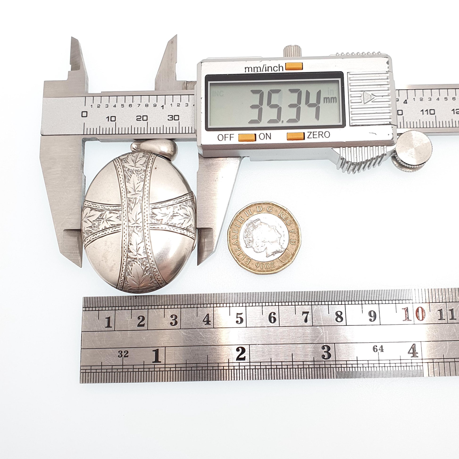 Antique Victorian Locket Silver Plate Large Big Cross Engraved Necklace Pendant Genuine 1800s Gift Picture Photo Oval Vintage Jewellery