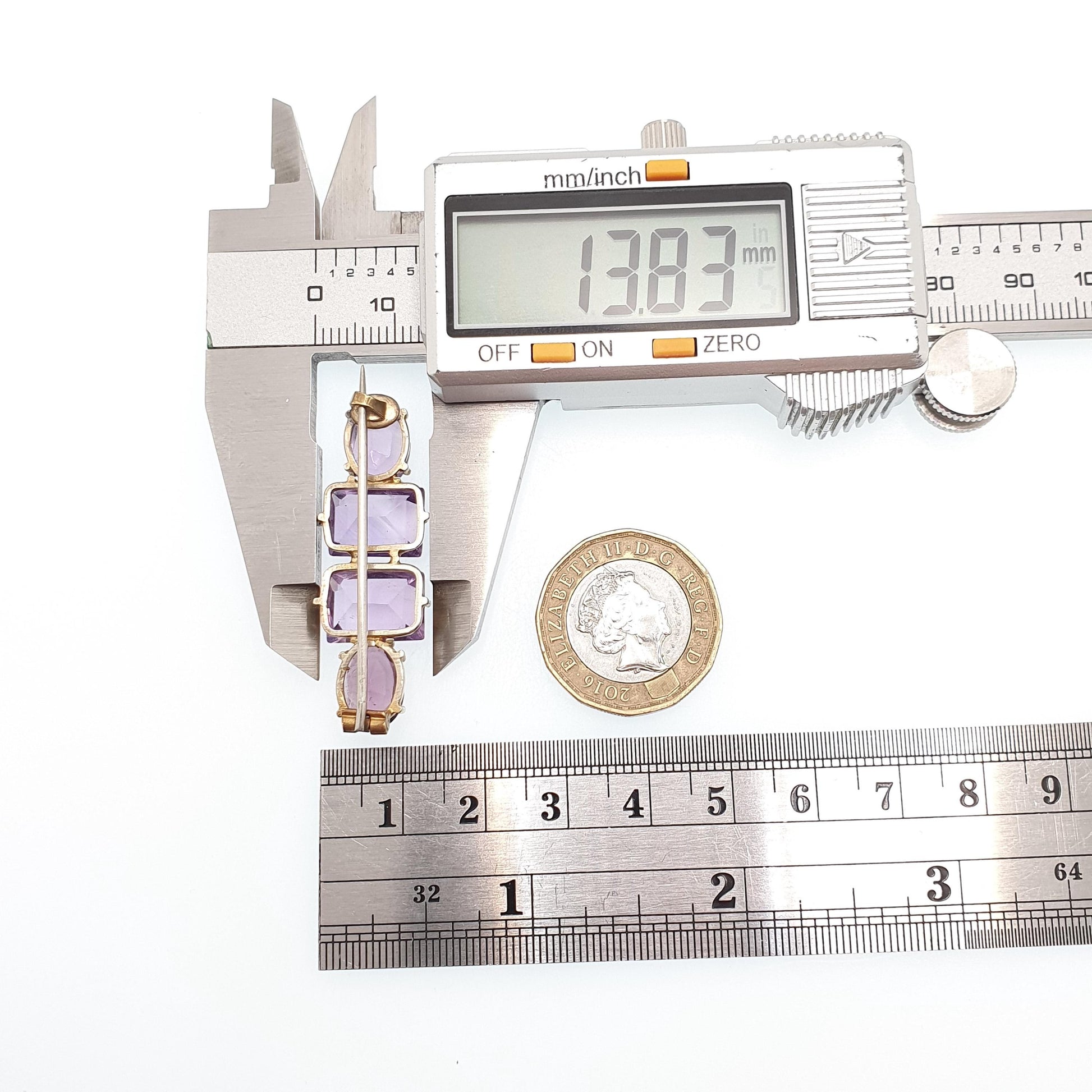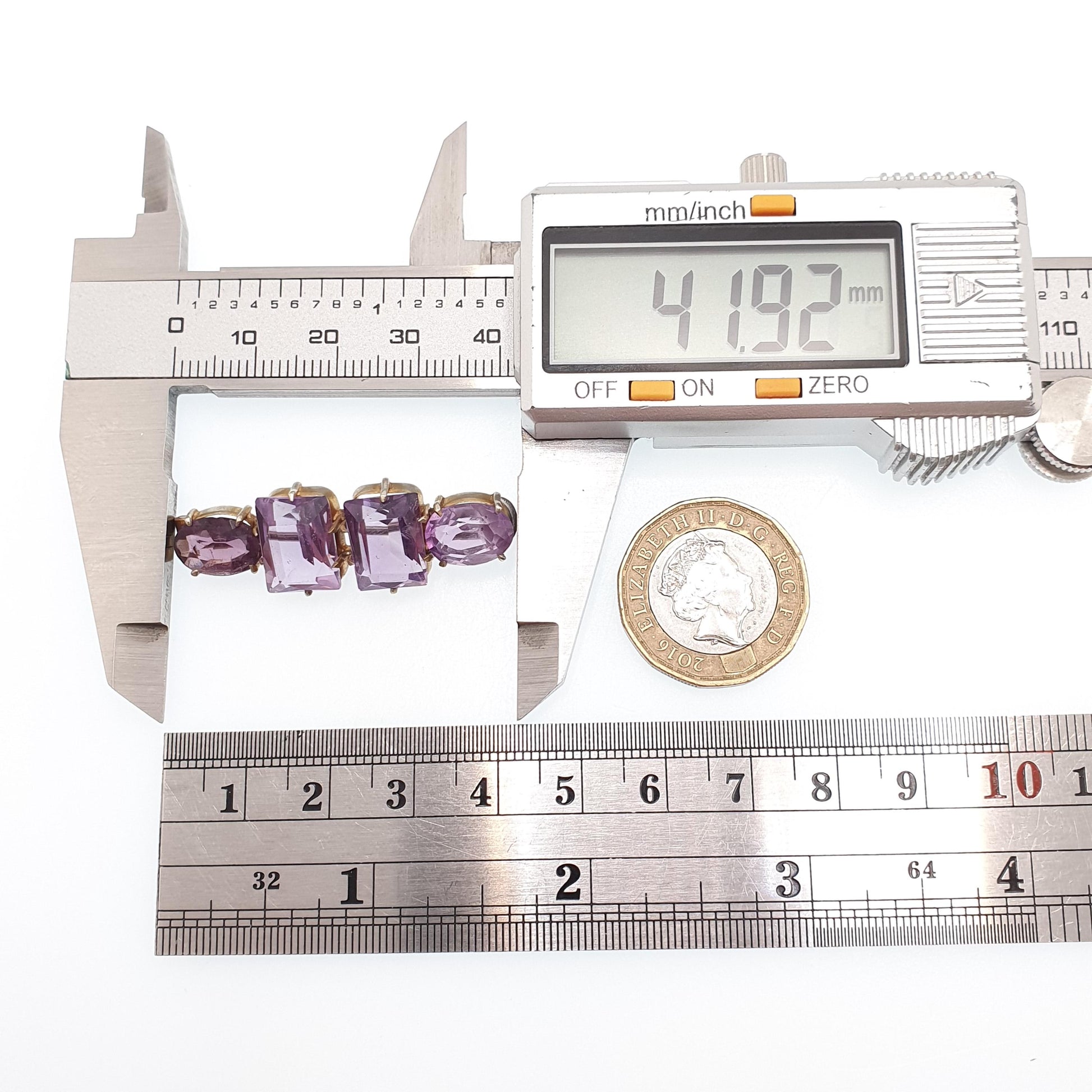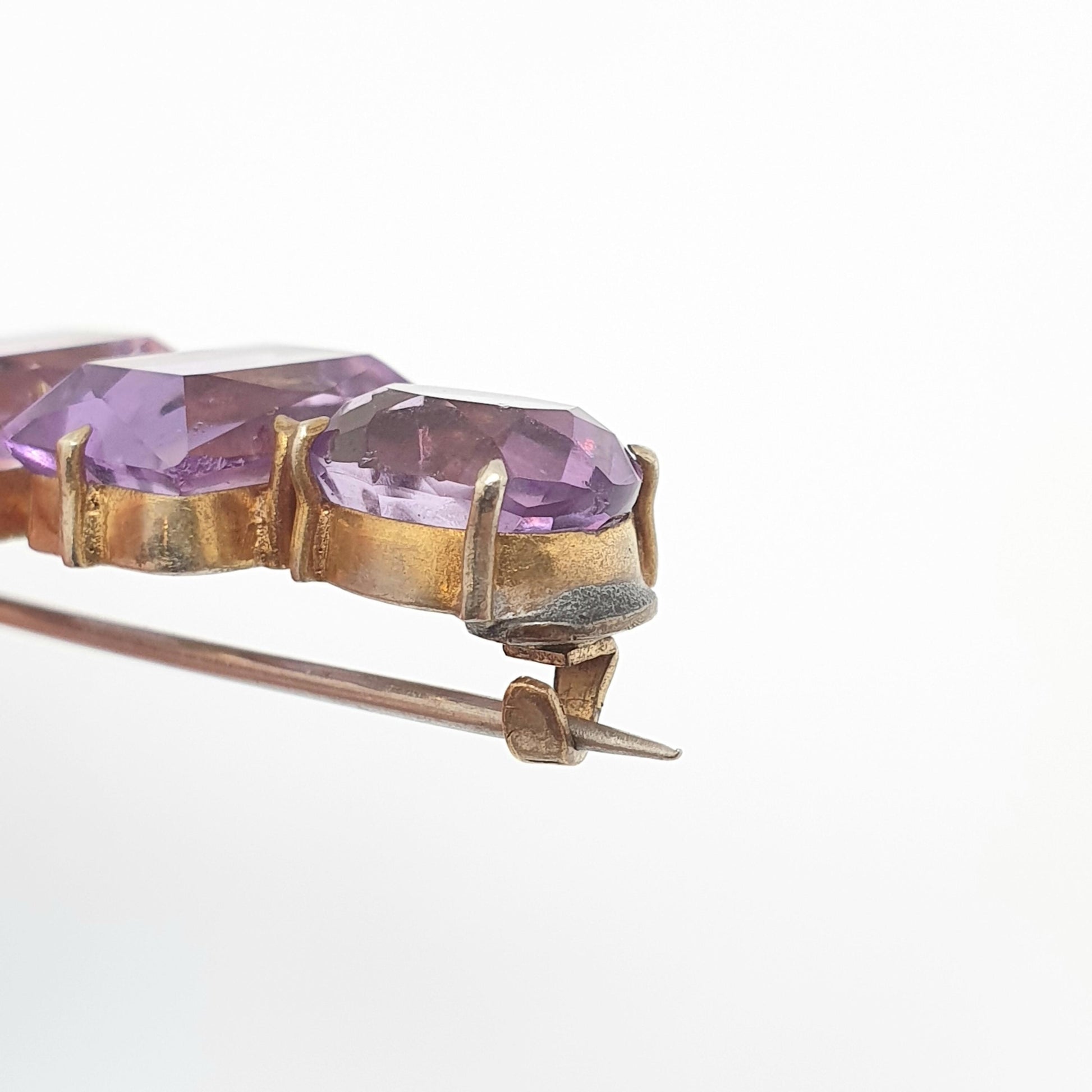 DESCRIPTION: A stunning and rare unusual antique Victorian brooch, adorned with a genuine amethyst gemstones. The metal on the brooch is a gold gilt base metal. It weighs approx. 5.96g and the size dimensions are in the later photos. One of the oval amethysts looks like it is a replacement. The clasp has a lead repair on it.