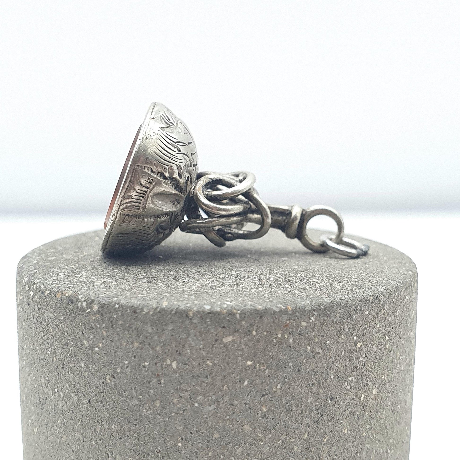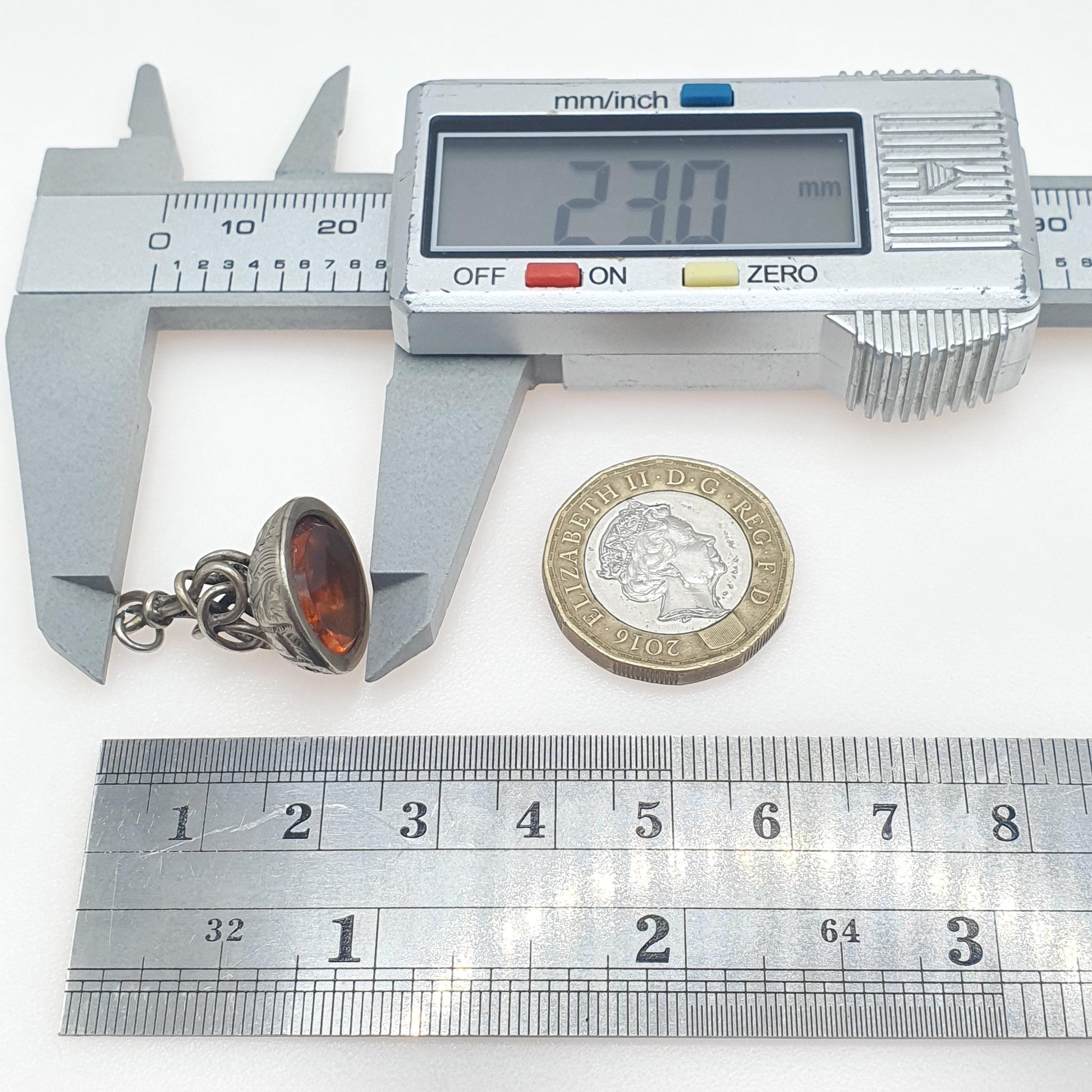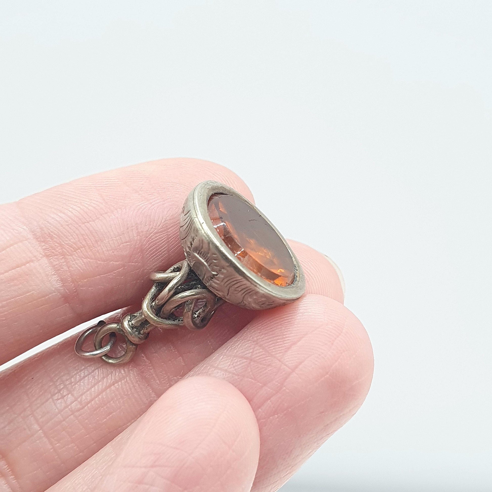 Antique Victorian Silver Tone Citrine Paste Pendant Fob Orange Knot Bail Vintage Womens Jewelry Jewellery