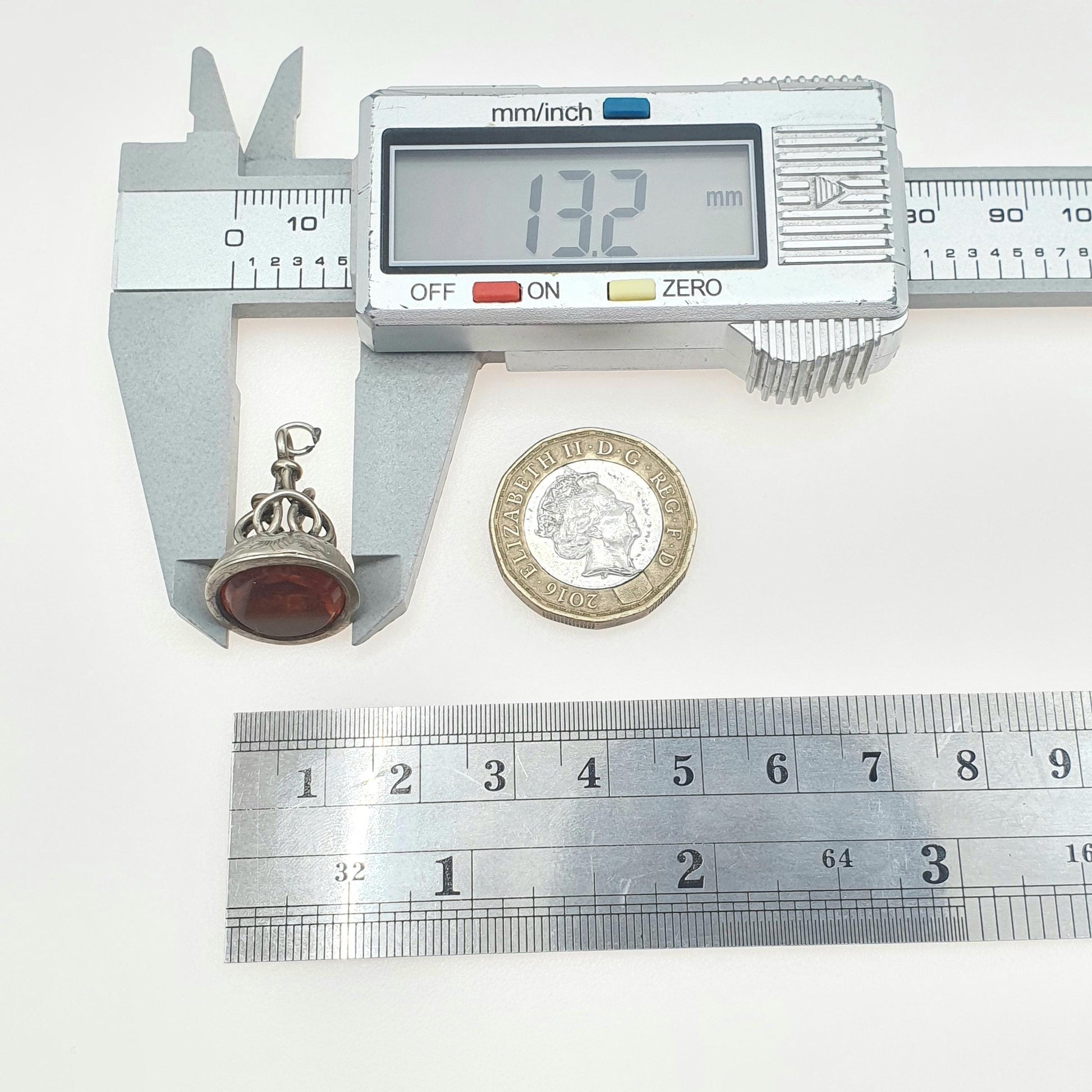 DESCRIPTION: A gorgeous antique silver tone genuine Citrine tone paste pendant in a fob style with a knot design bail. The item weighs approx. 5.93g and the size dimensions are in the later photos.