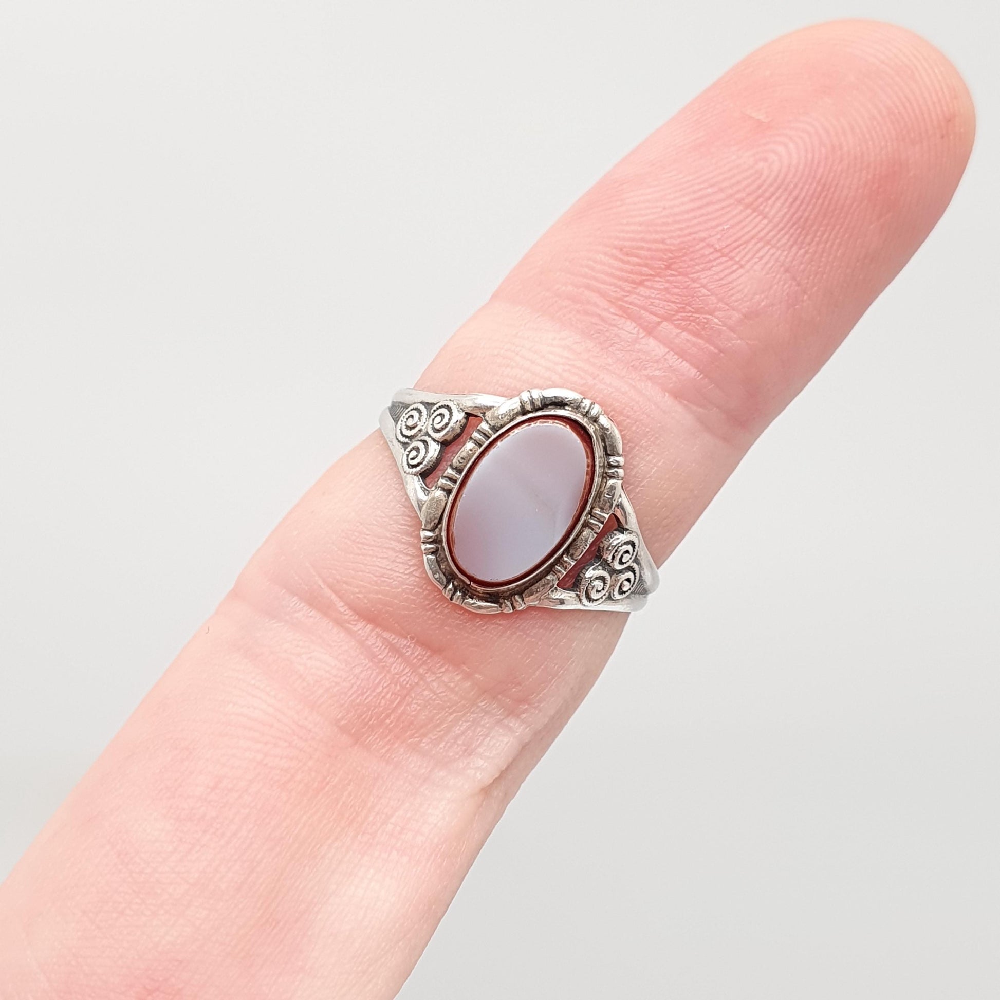 Antique Victorian Solid Silver Agate Signet Ring White Face Quartz Gemstone Arts and Craft Womens Vintage