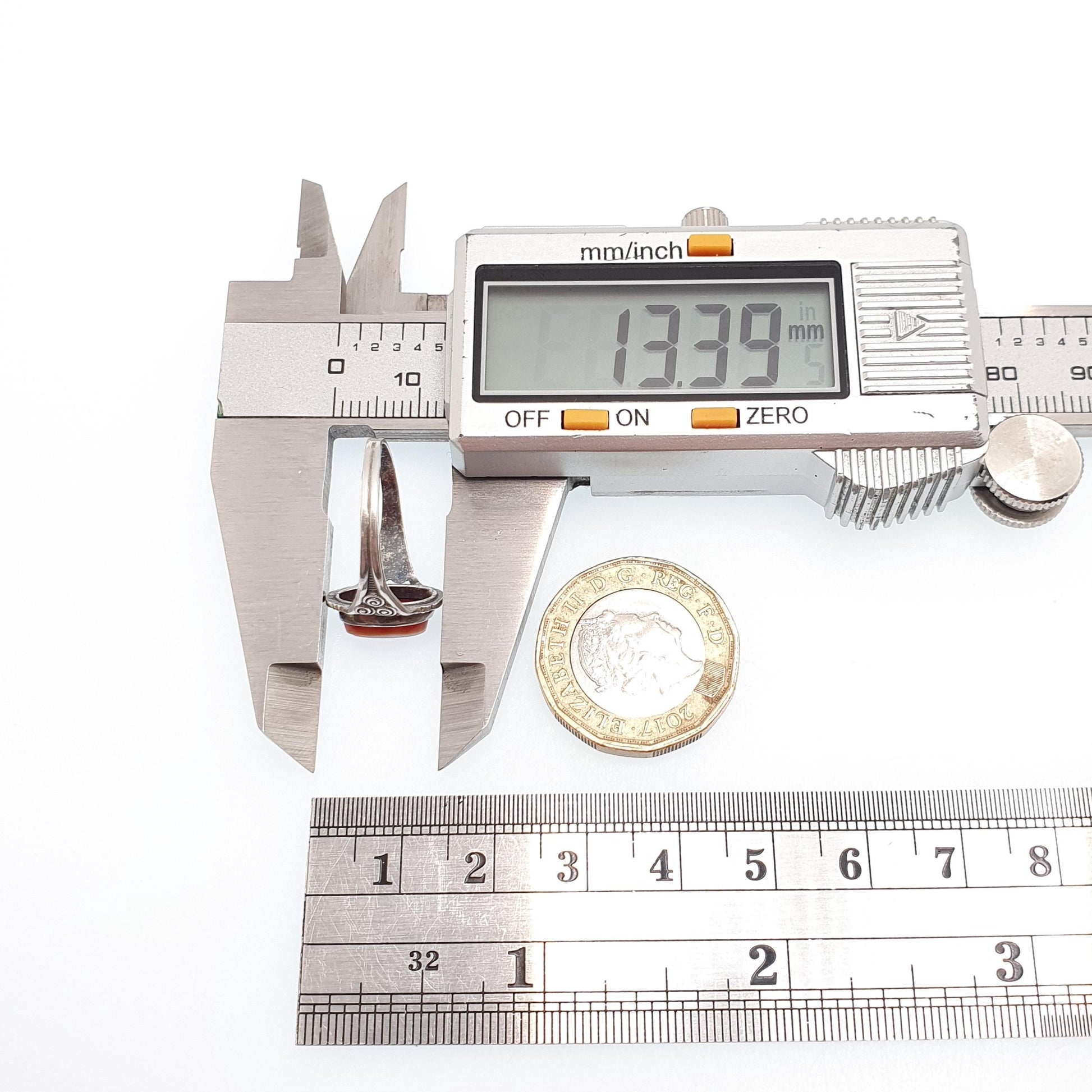 DESCRIPTION: A brilliant antique Victorian solid silver genuine agate ring (100% tested). The ring sizes at UK P.5 or US 7.75 and weighs approx. 1.73g. As to be expected with the items age, it isn't stamped/hallmarked, it tests for high grade silver (800+). The agate has some surface marks and minor chips on its edge, see pictures/video. The ring looks like it has been resized at some point during its life.