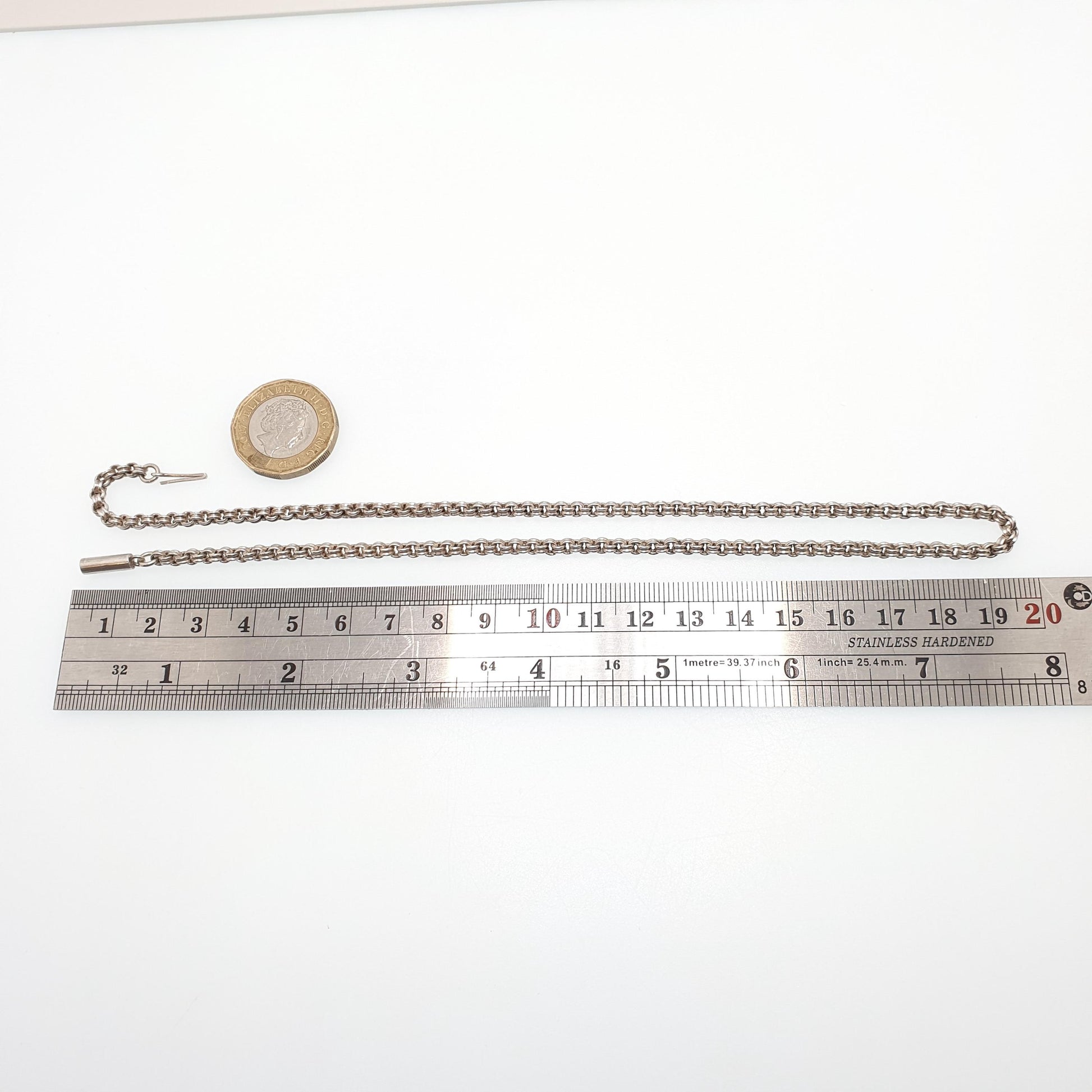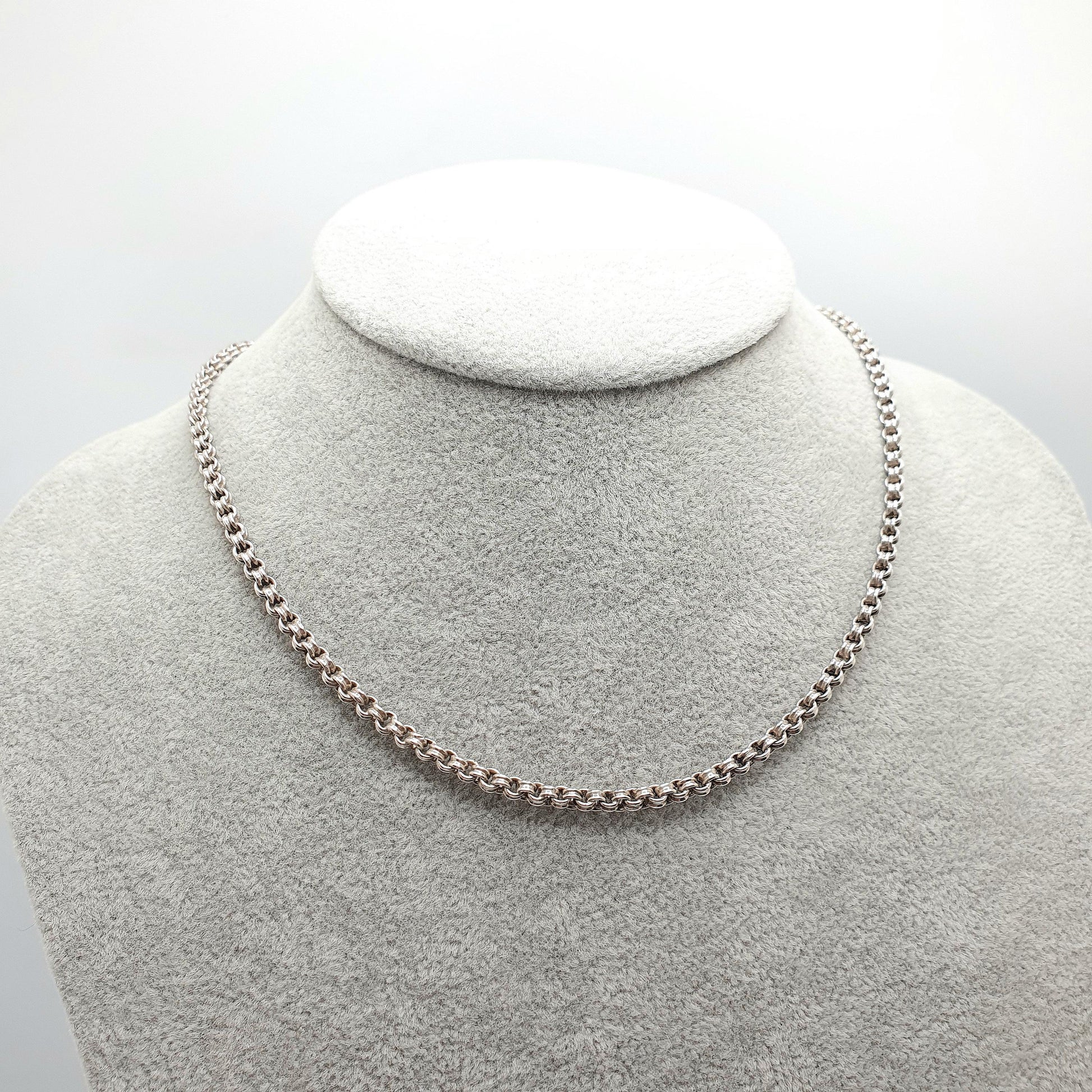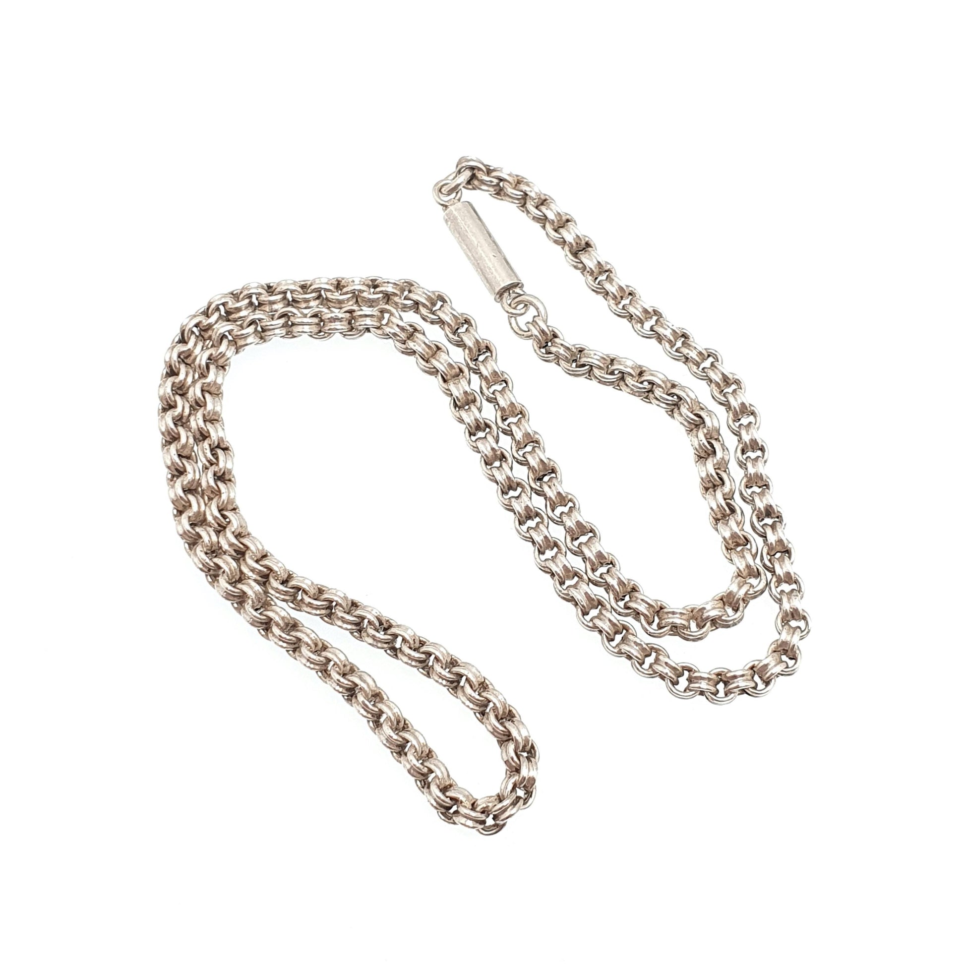 Antique Victorian Solid Silver Belcher Chain Necklace 41cm 16.1" 7.00g Crimped Rolo Links 1800s Vintage Mens Womens Jewelry