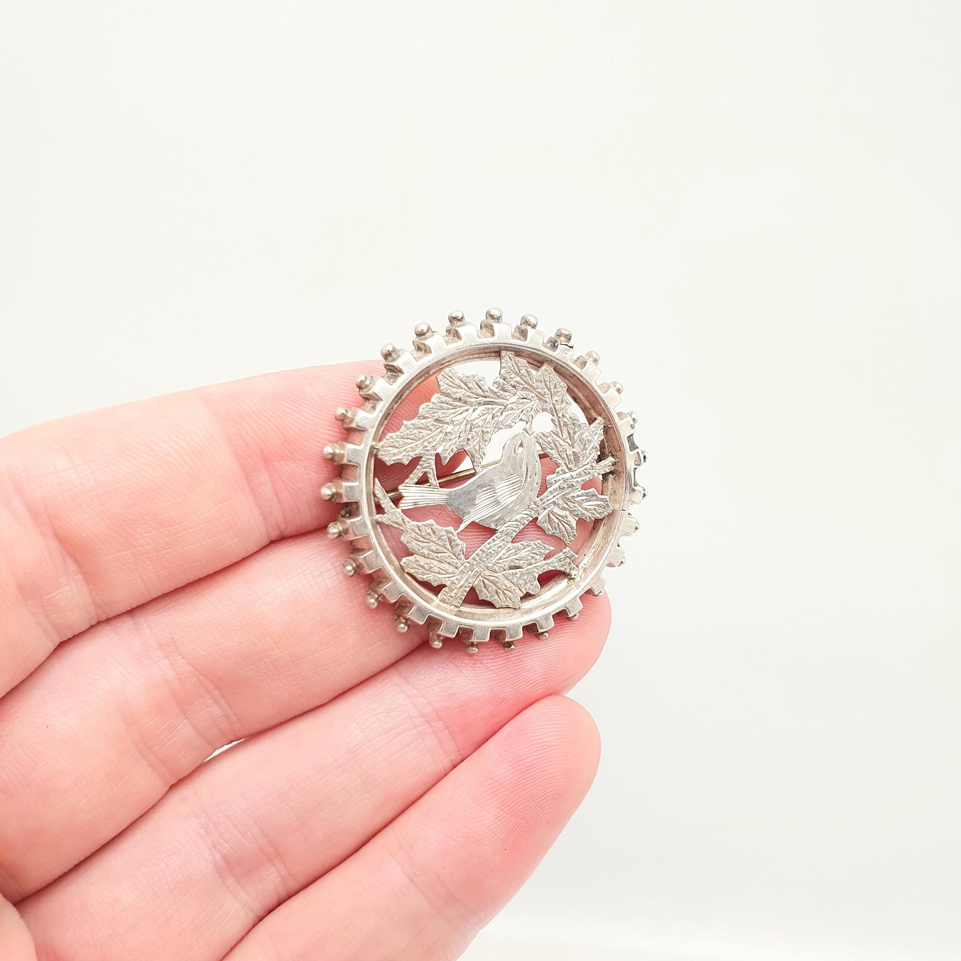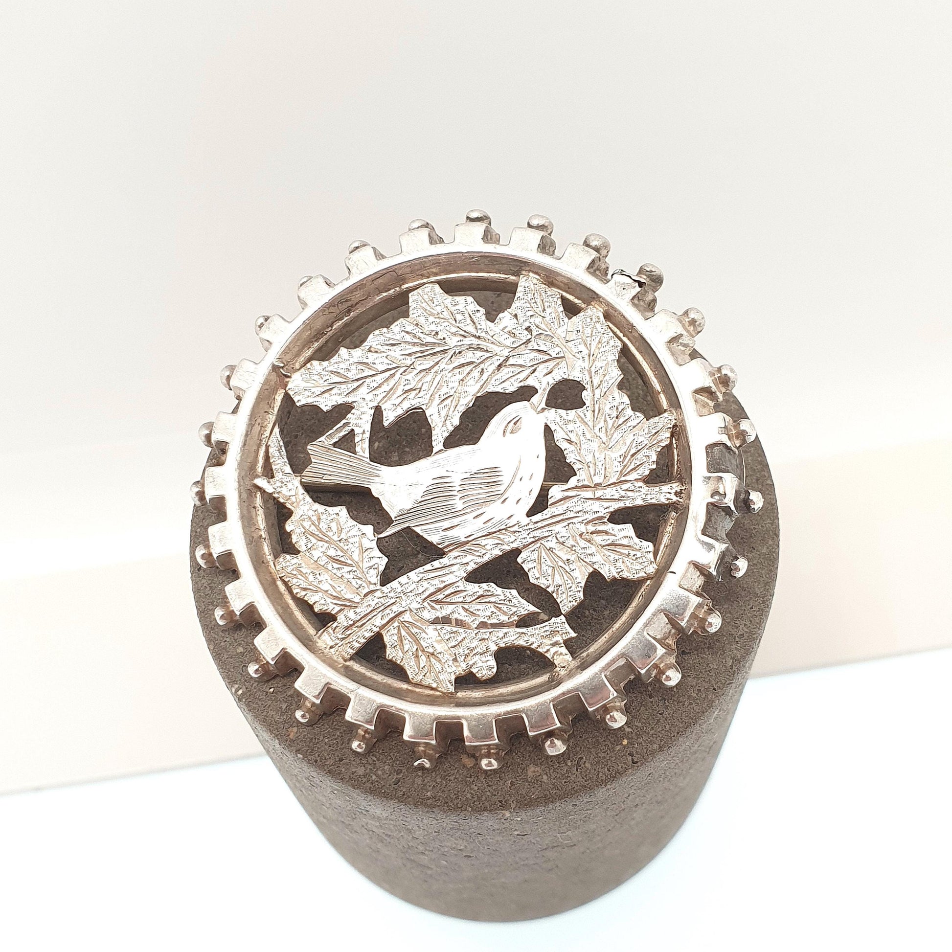 Antique Victorian Solid Silver Bird Brooch Etruscan Wheel Pin Sweetheart Good Luck Vintage Jewelry Jewellery