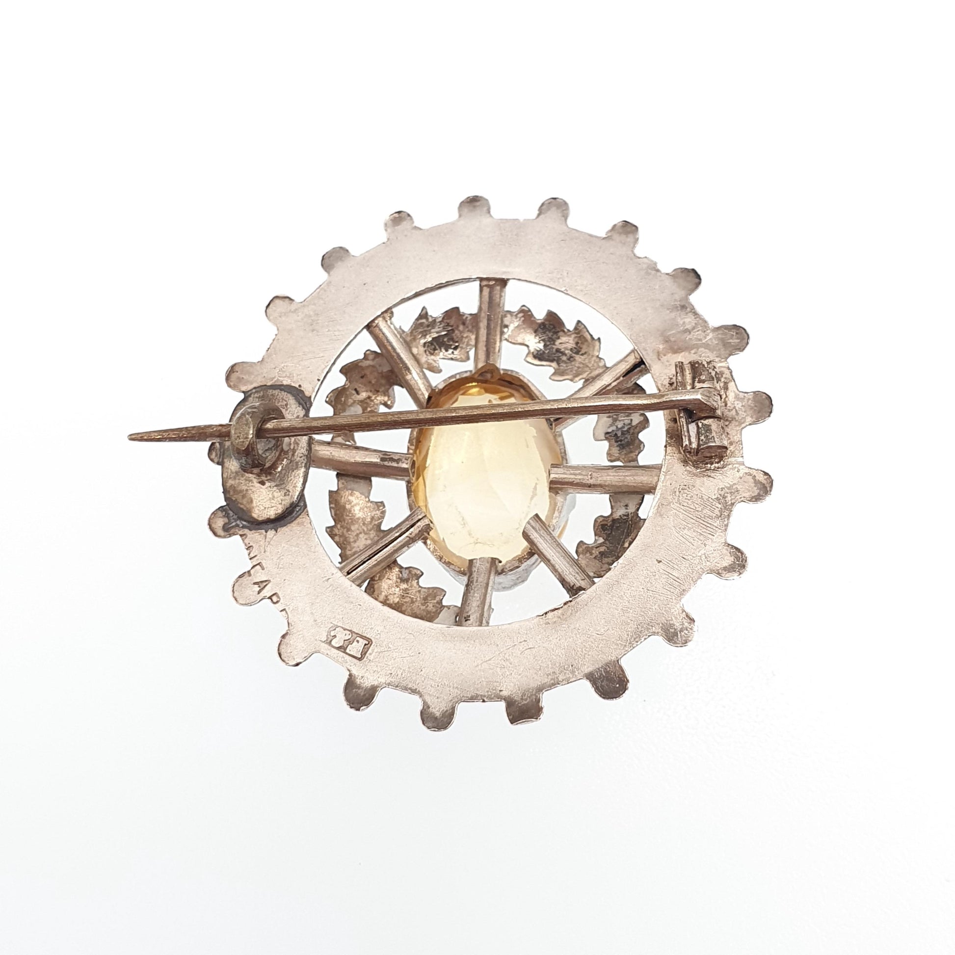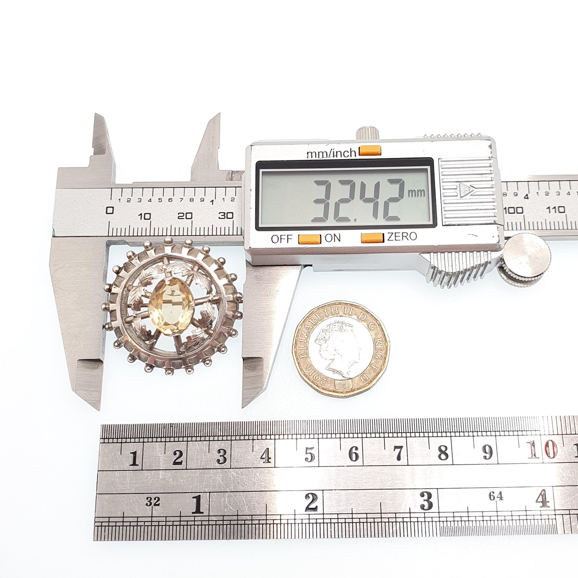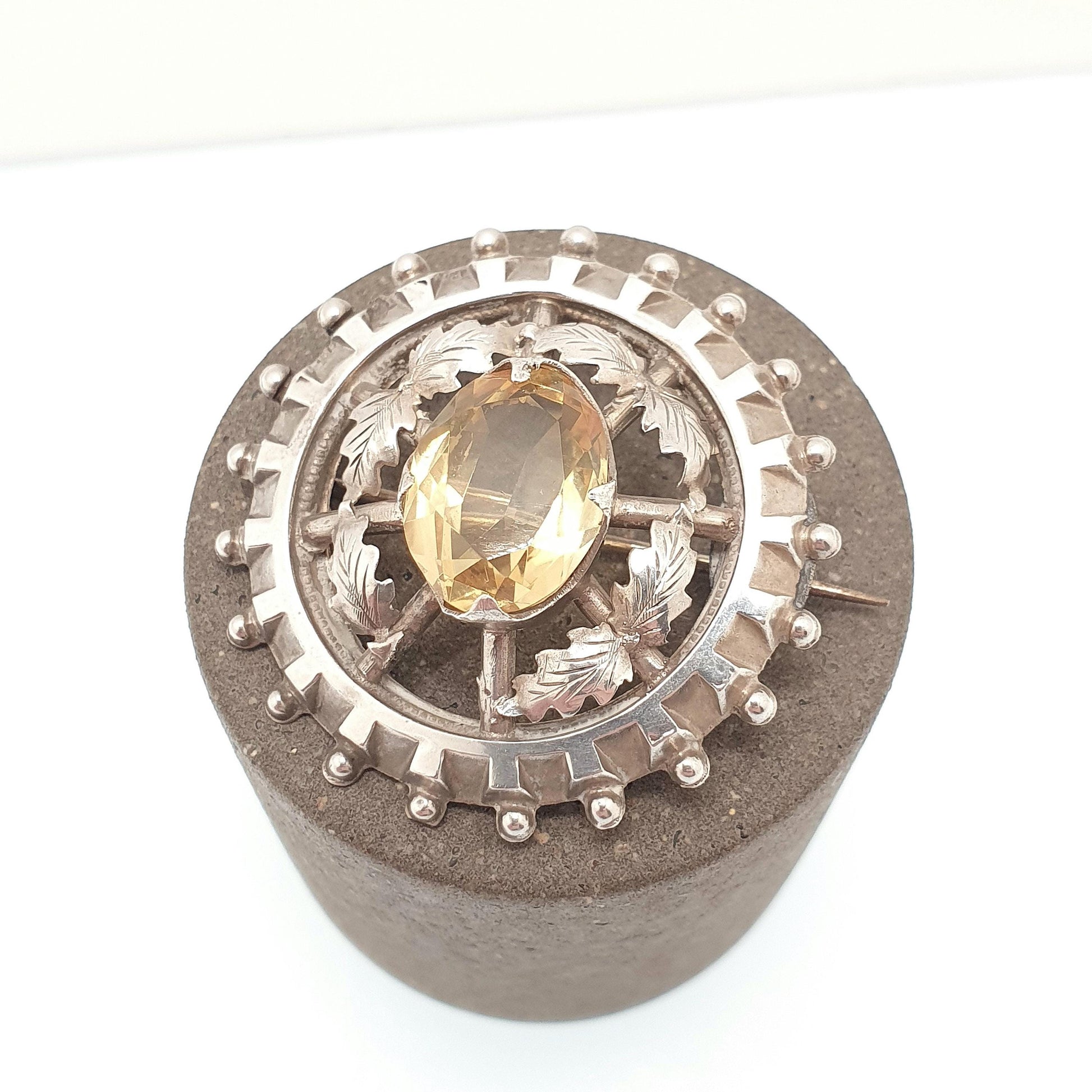 Antique Victorian Solid Silver Citrine Brooch Genuine Gemstone Etruscan Leaf Border Oval Cut Quartz Pin Vintage Womens Jewelry Jewellery