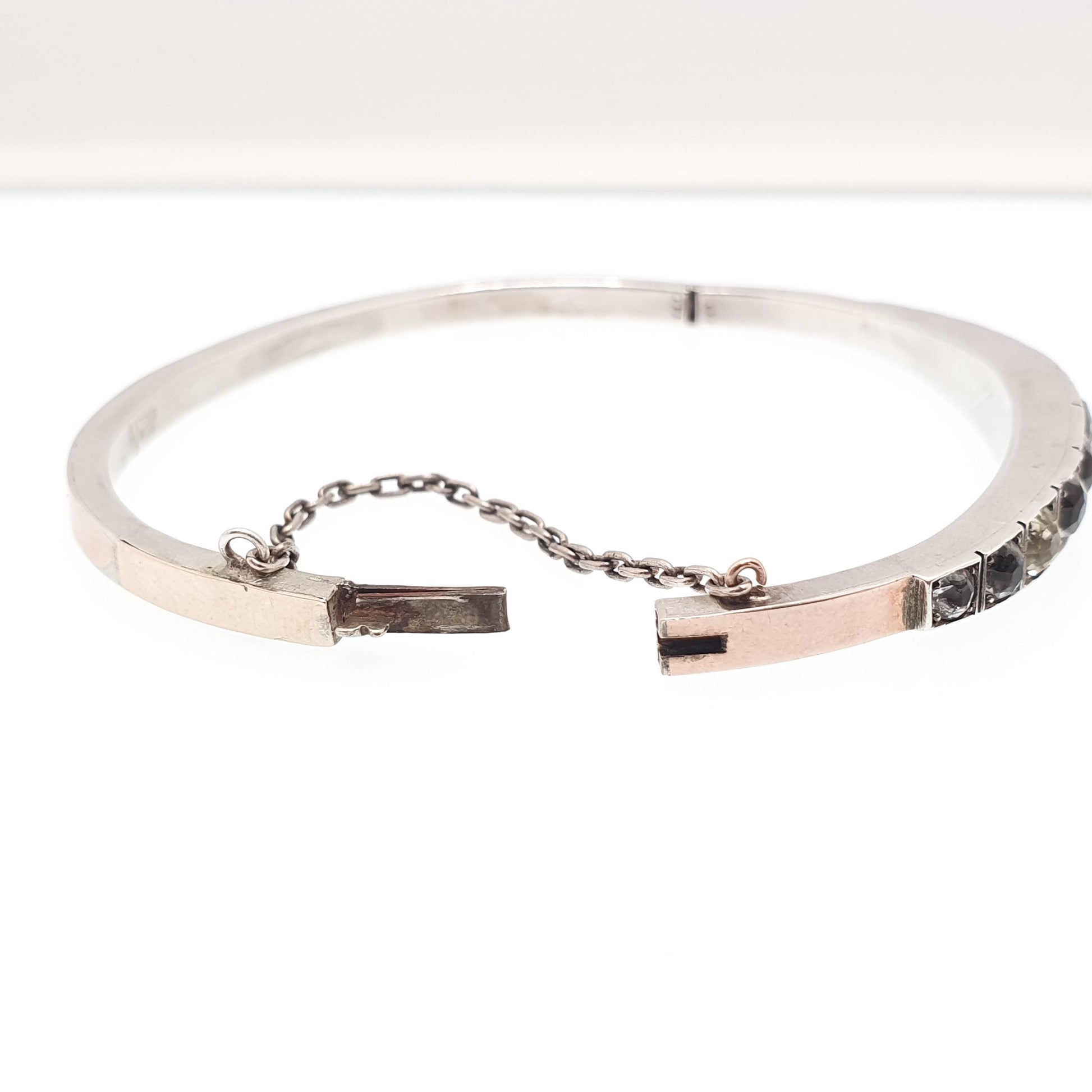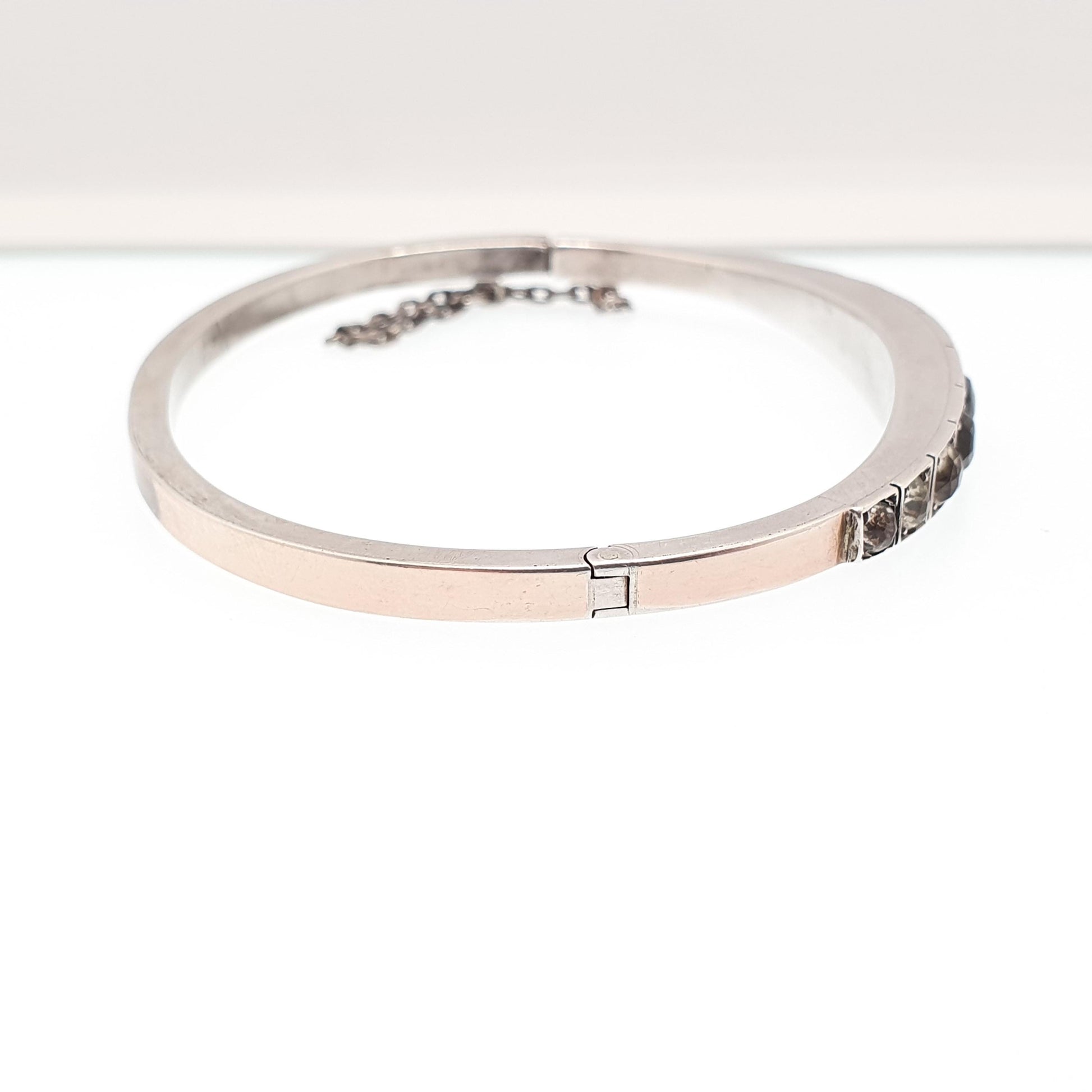 Antique Victorian Solid Silver Diamond Paste Bangle Bracelet 9ct Rose Gold Georgina Style Old Cut Pastes
