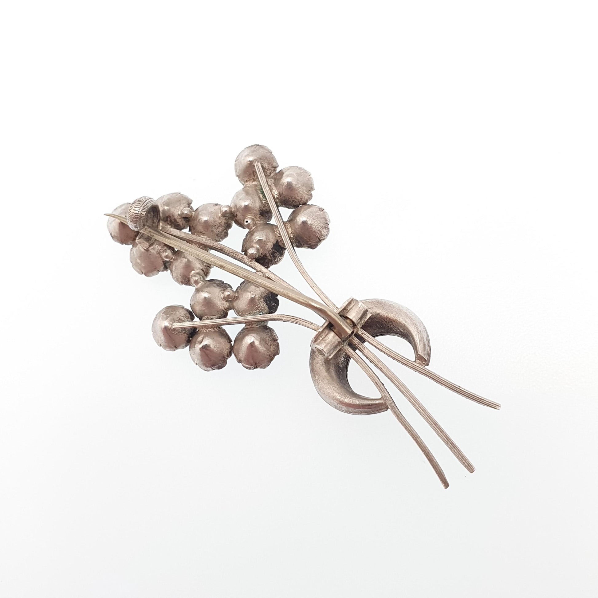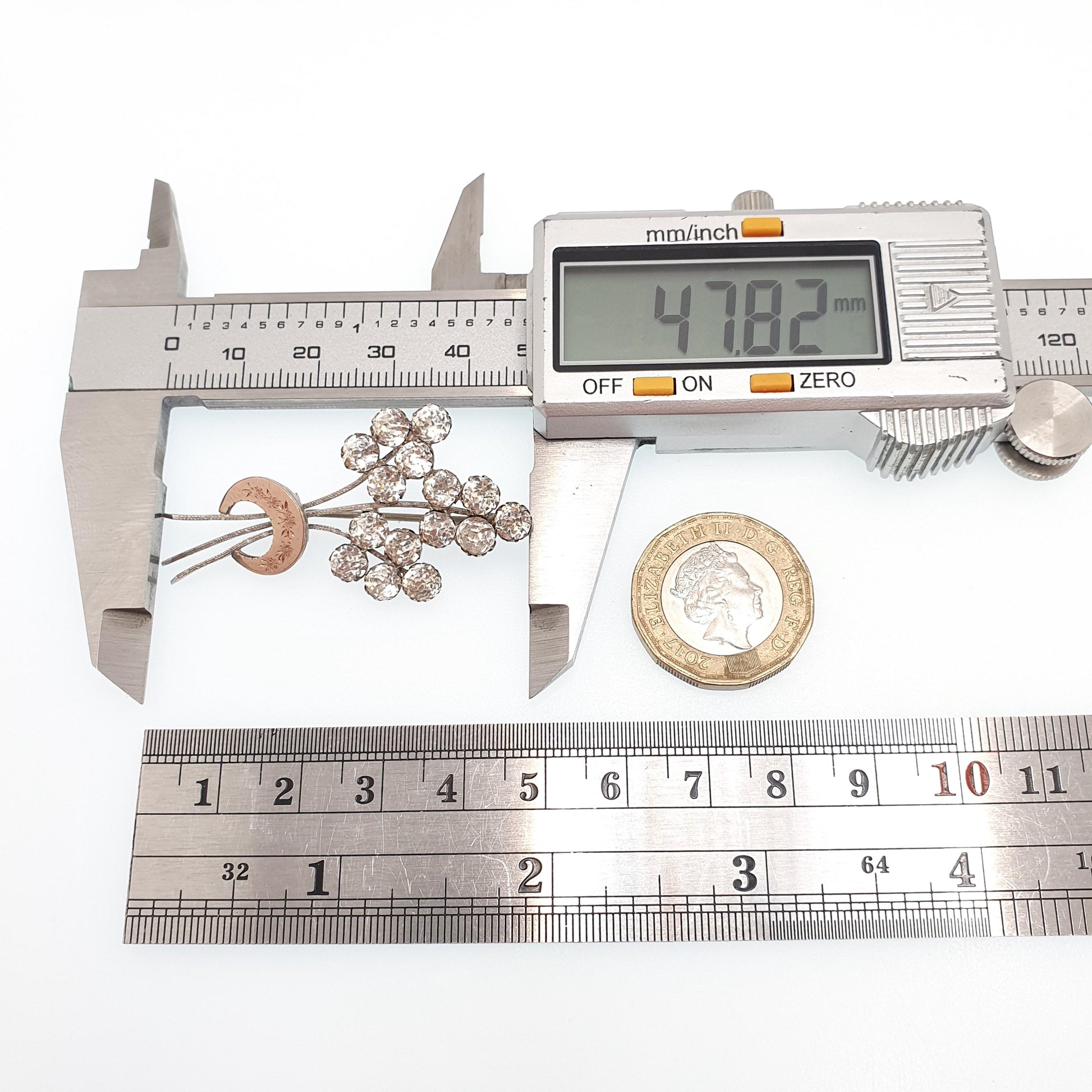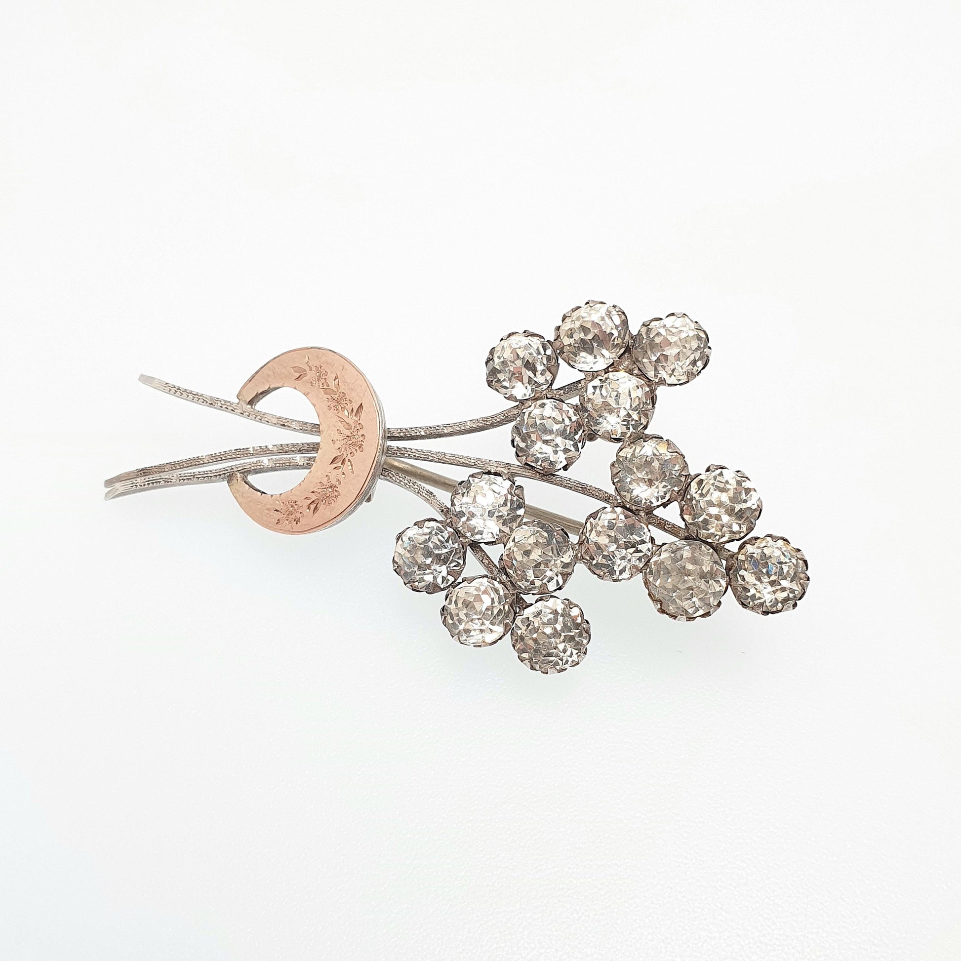 Antique Victorian Solid Silver Diamond Paste Brooch Crescent Moon Rose Gold Highlight Floral Spray Sparkly Vintage Jewelry Jewellery