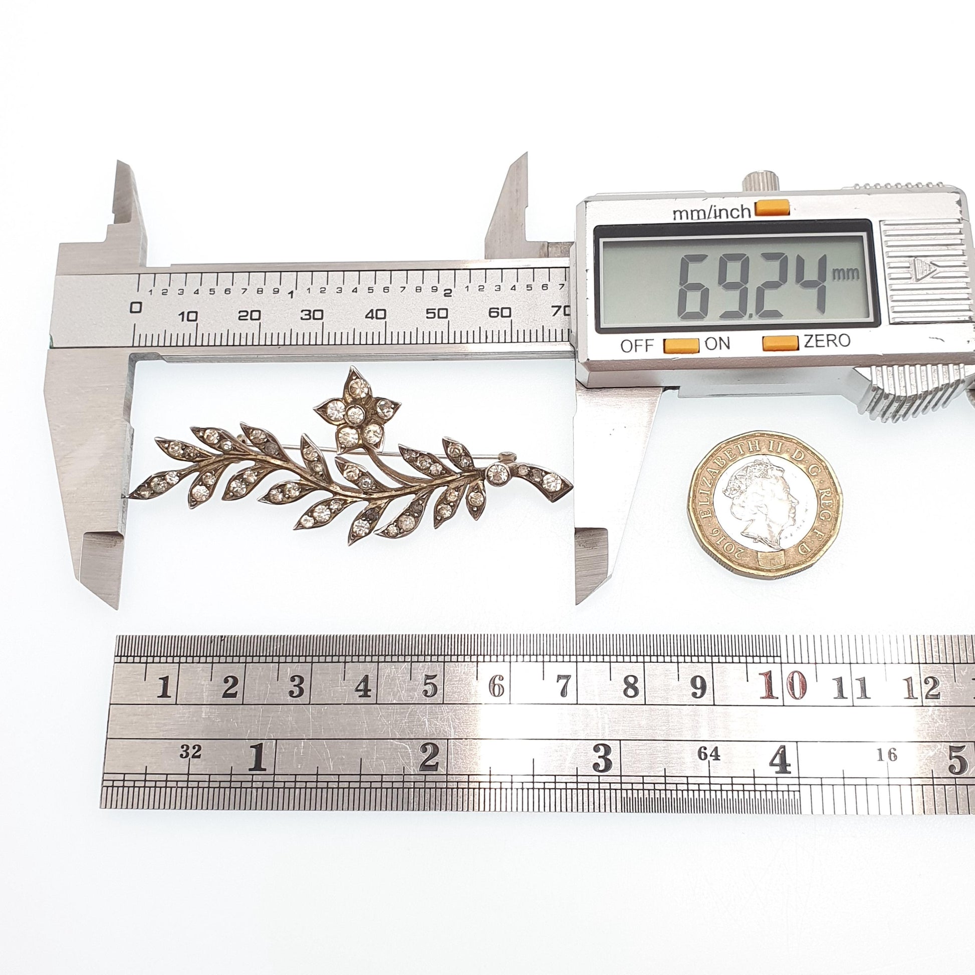 Antique Victorian Solid Silver Diamond Paste Flower Brooch Pin Floral Spray Large Ornate Late 1800s Sparkly Foiled Glass Jewelry Jewellery