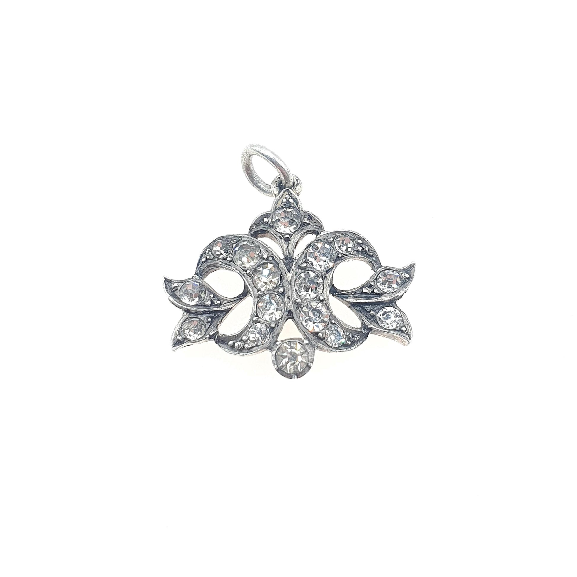 Antique Victorian Solid Silver Diamond Paste Pendant Art Nouveau Scroll Small Necklace Womens Jewelry Jewellery