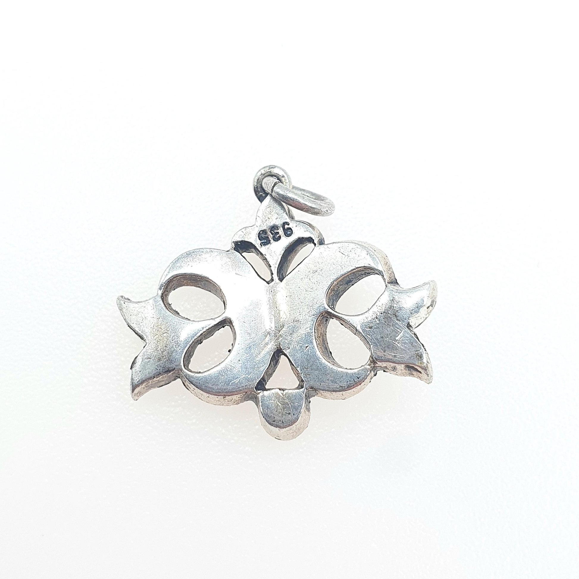 DESCRIPTION: A very cute antique art nouveau solid silver diamond paste pendant, in a art nouveau design. The size dimensions are in the later photos and it weighs 2.45g. The item is stamped "935" for sterling silver.