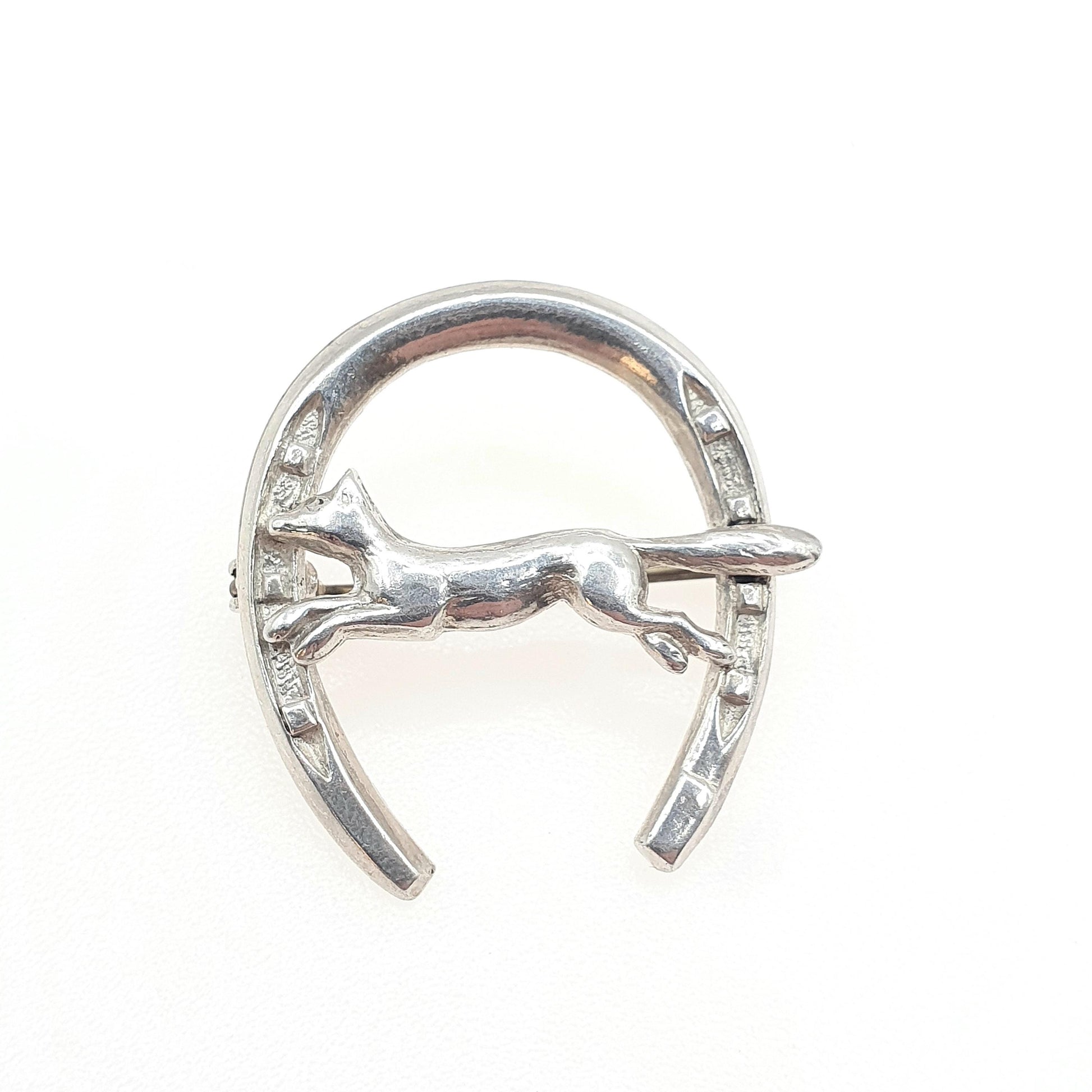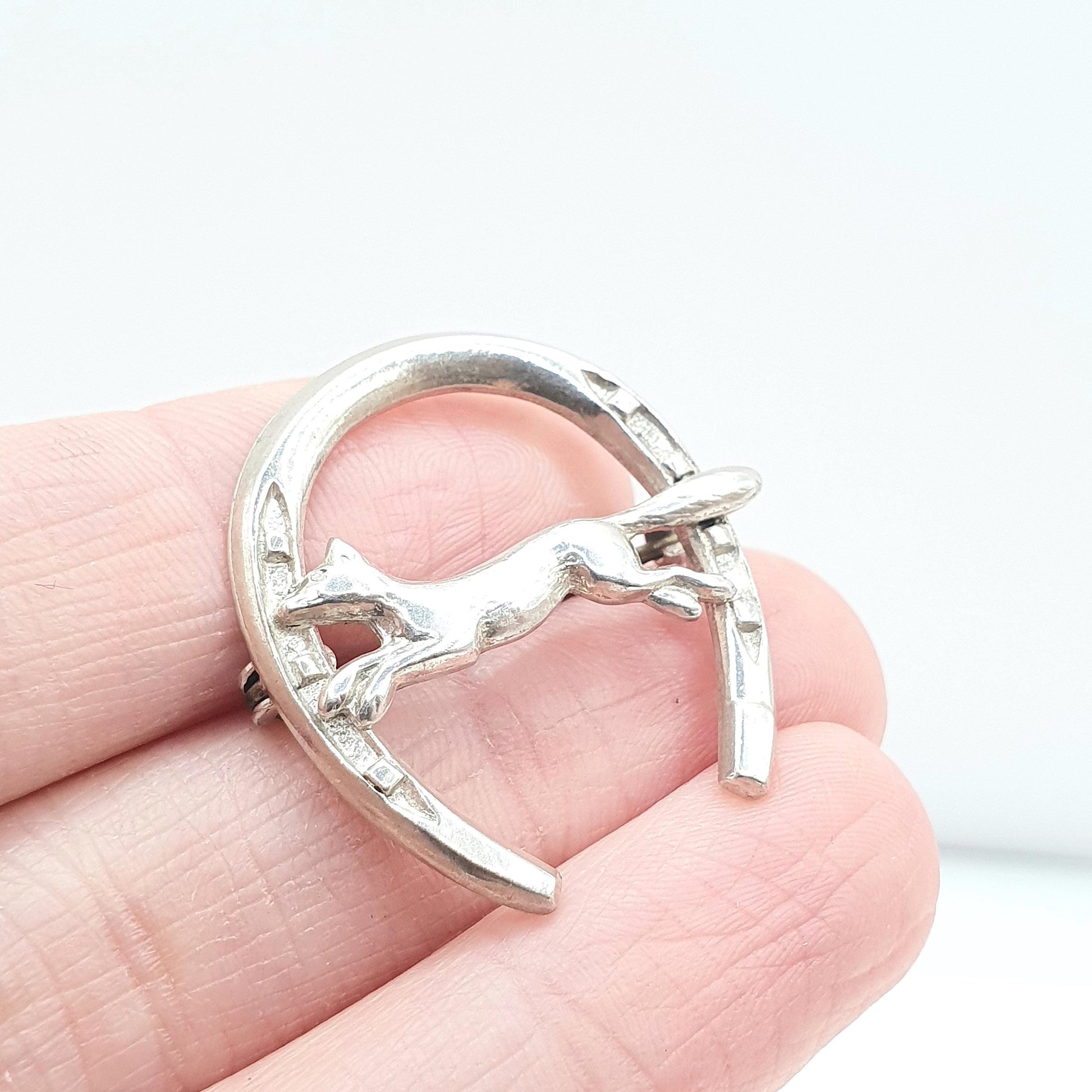 Antique Victorian Solid Silver Horseshoe Fox Brooch Good Luck Lucky Vintage Unisex Jewelry Jewellery