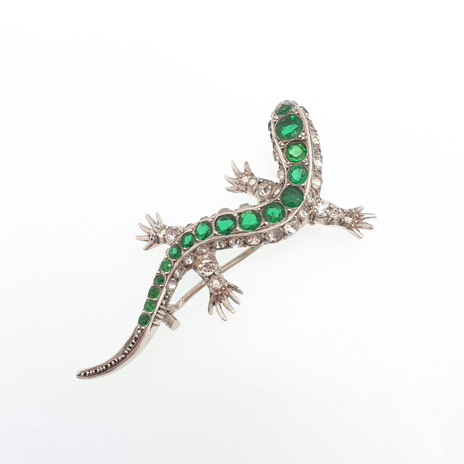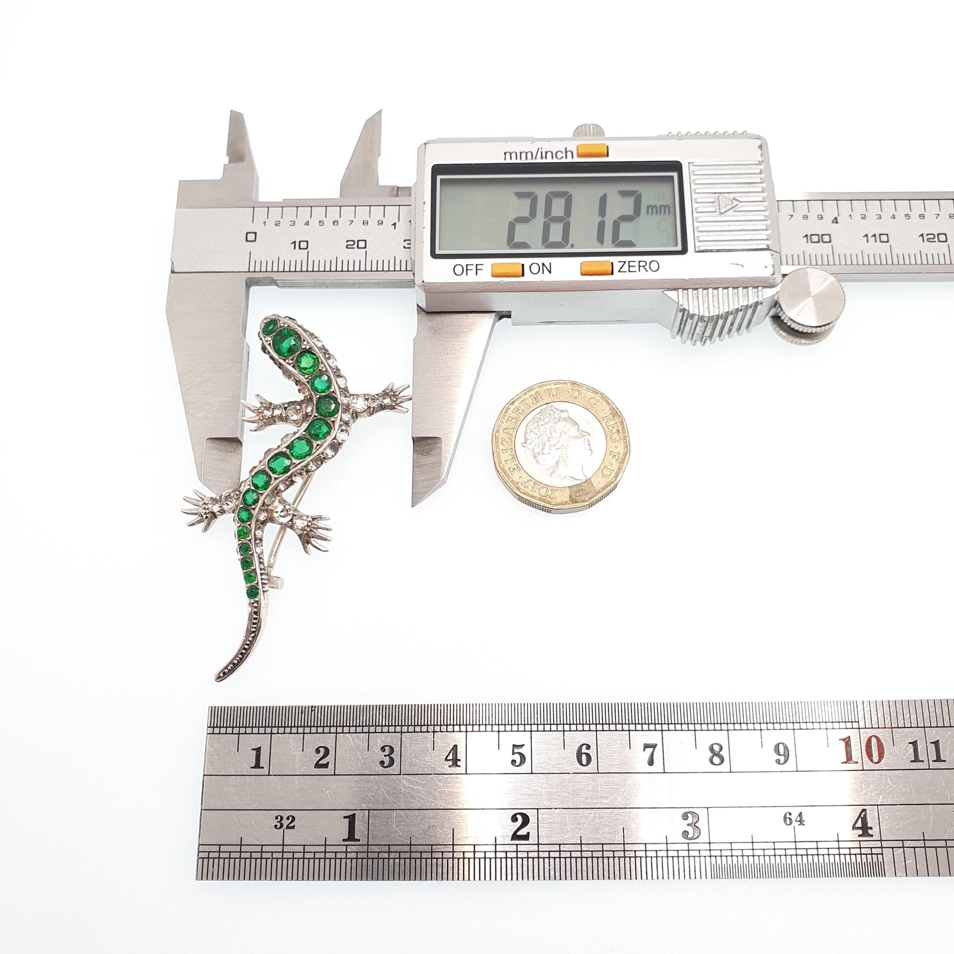 Antique Victorian Solid Silver Lizard Brooch Emerald & Diamond Paste Pastes Reptile Animal Gecko Vintage Womens Retro Jewelry Jewellery