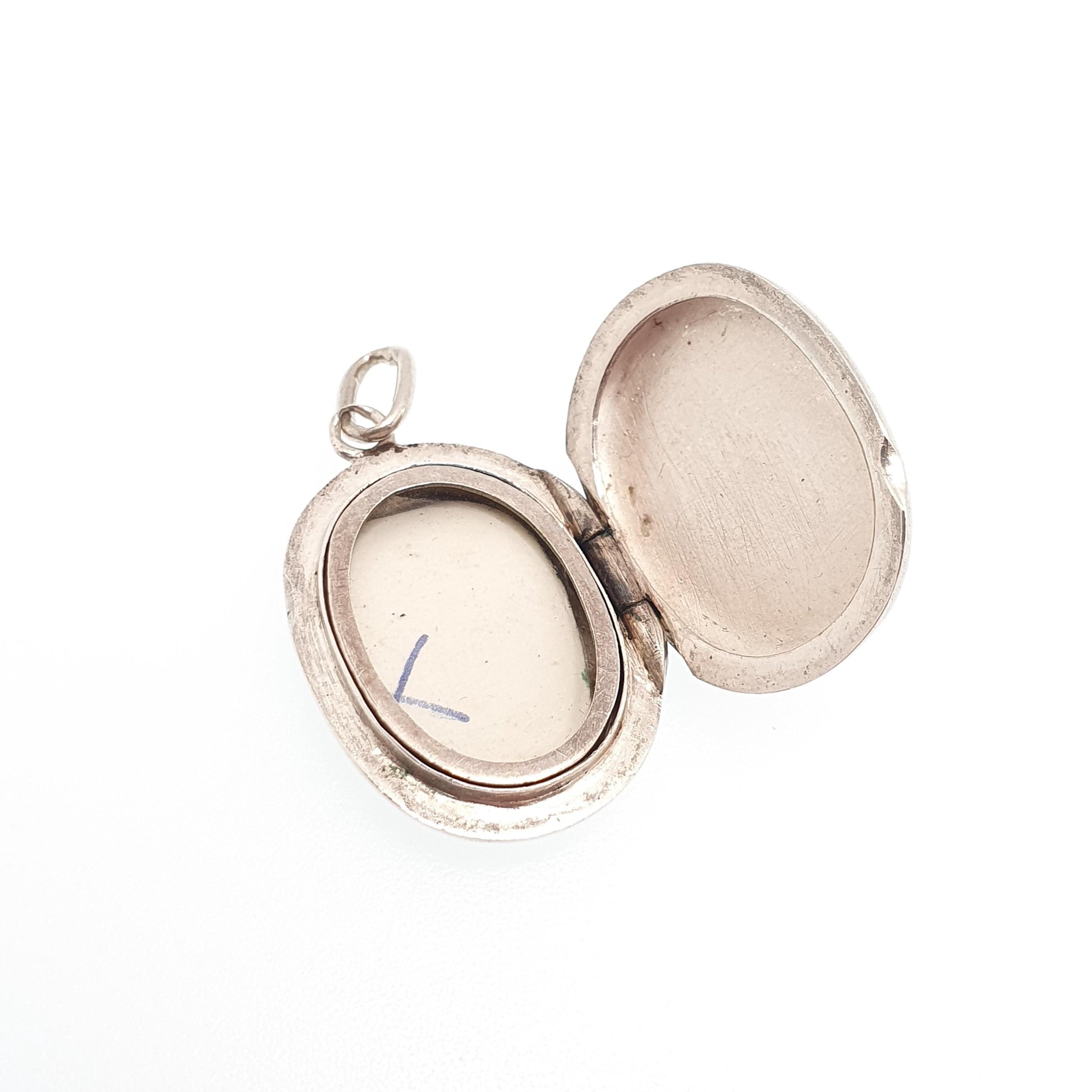 Antique Victorian Solid Silver Locket Smooth Polished Plain Blank Small Oval Necklace Pendant Picture Photo 1800s Vintage Jewellery Jewelry