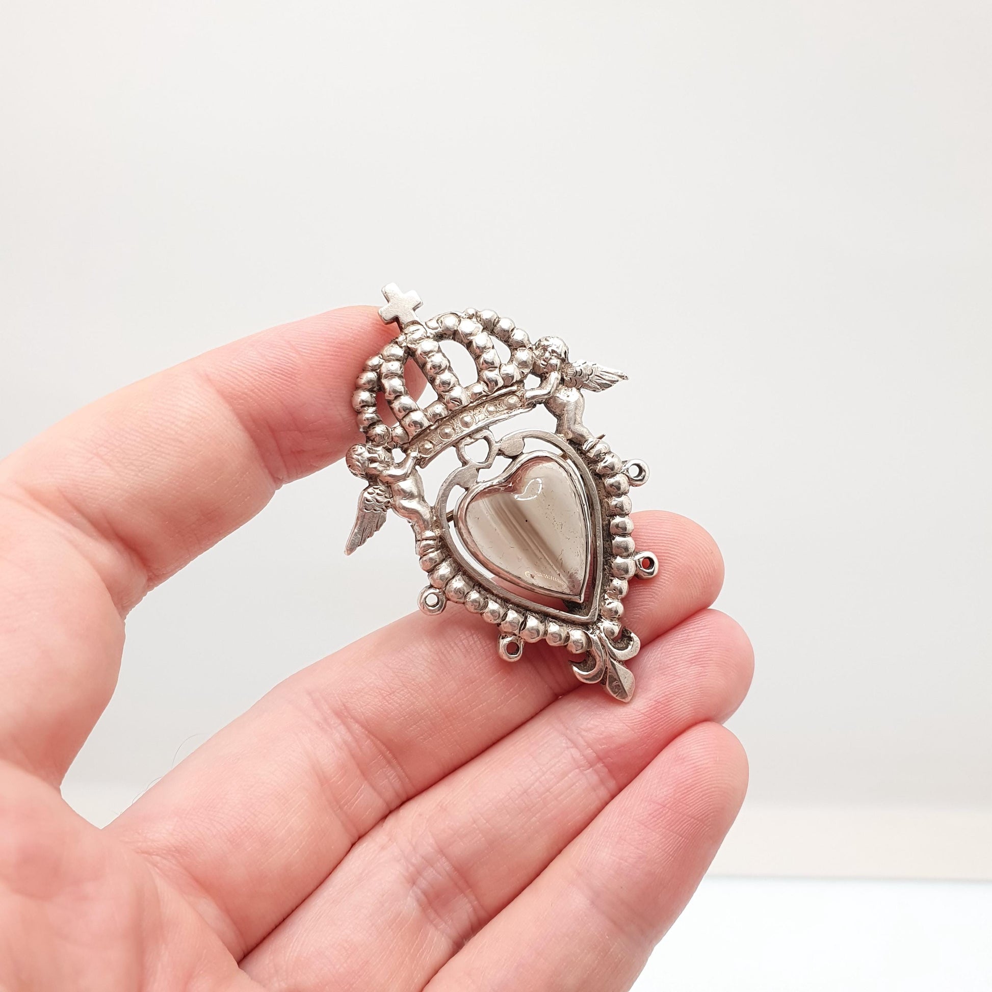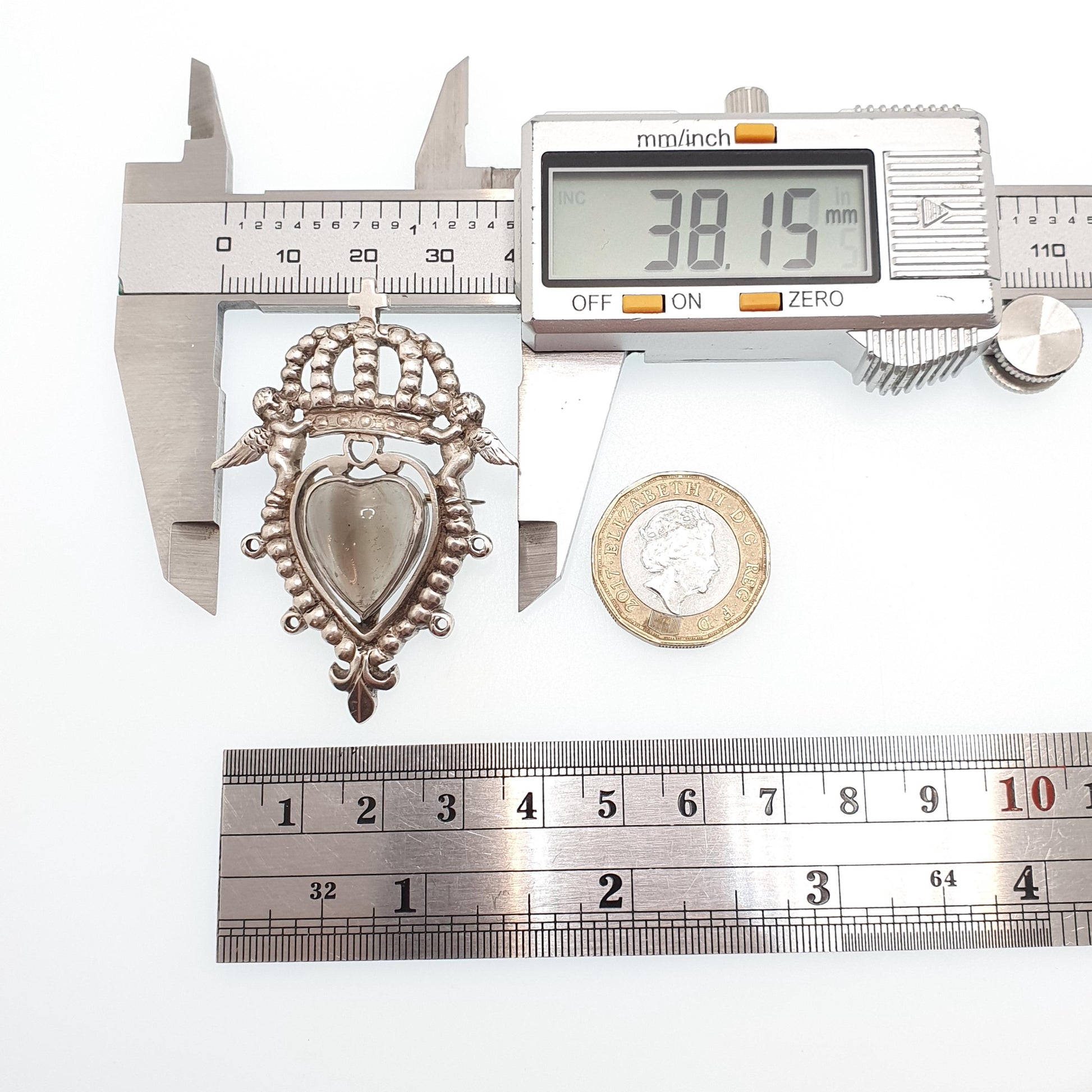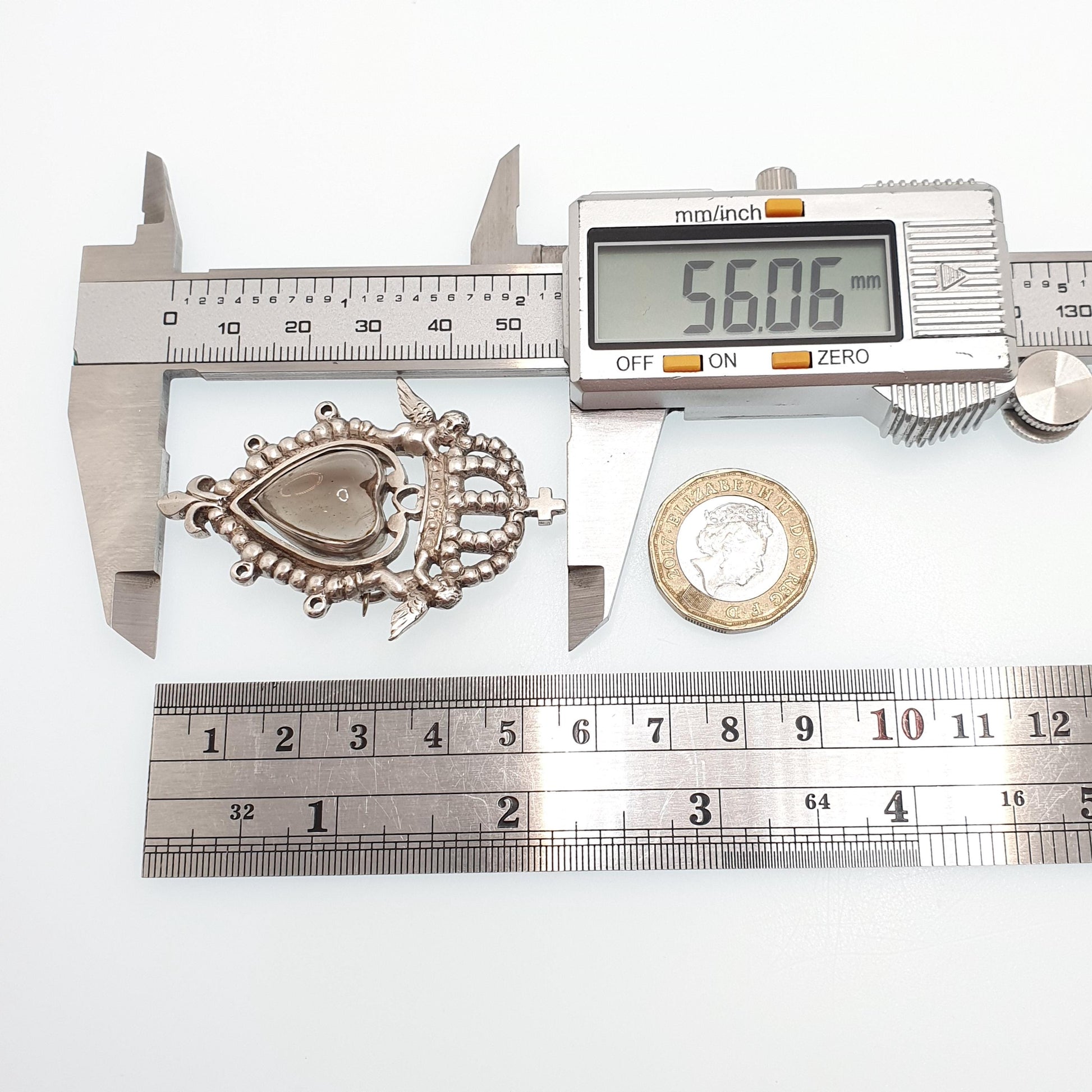 DESCRIPTION: A stunning and high quality antique Victorian sterling silver Luckenbooth brooch, decorated with angel cherubs and adorned with a natural smoky quartz gemstone in a heart cut shape. The brooch is Scottish in origin. It weighs approx. 20.89g and the size dimensions are in the later photos. As to be expected with age and use, the item isn't stamped/hallmarked, it test for sterling 925 silver.