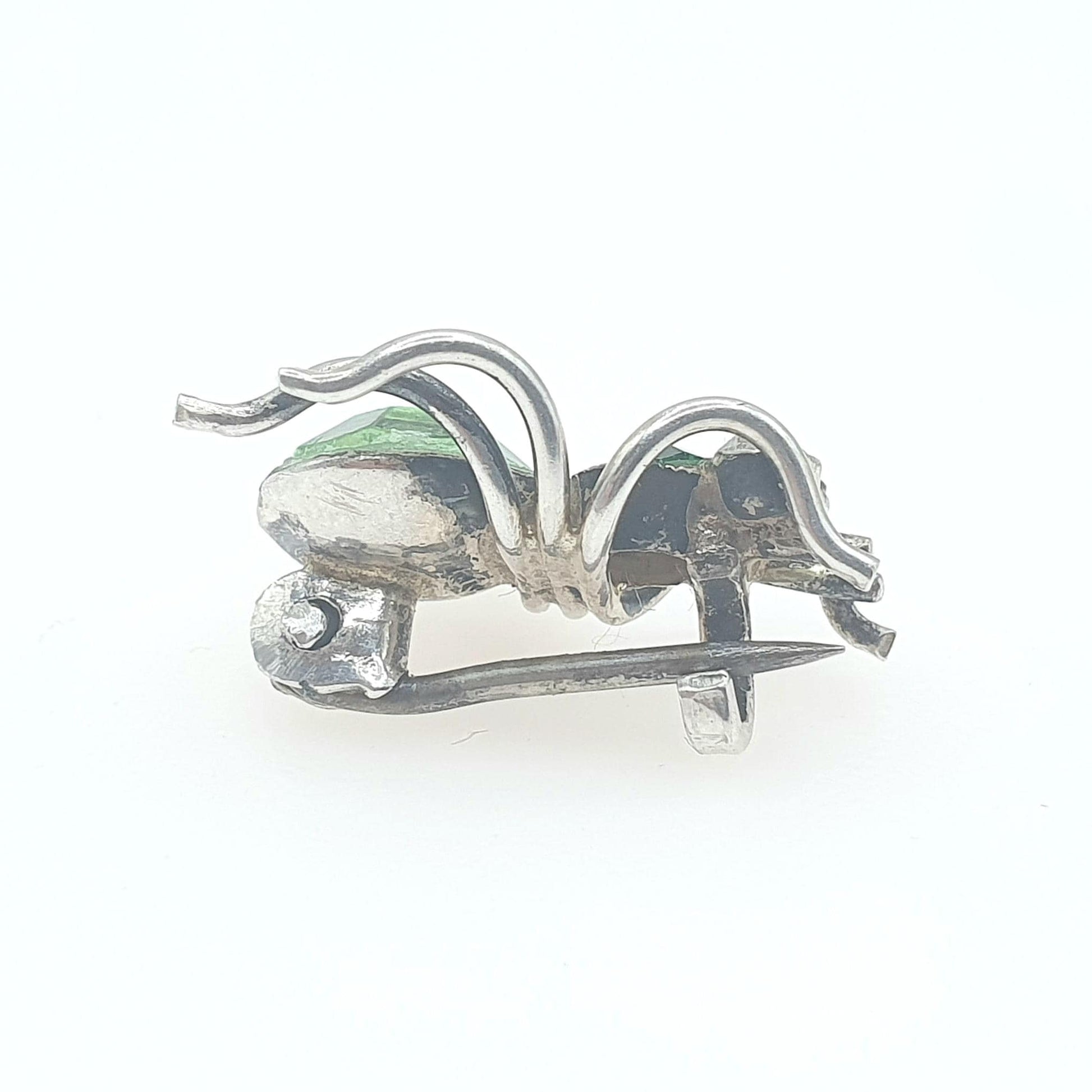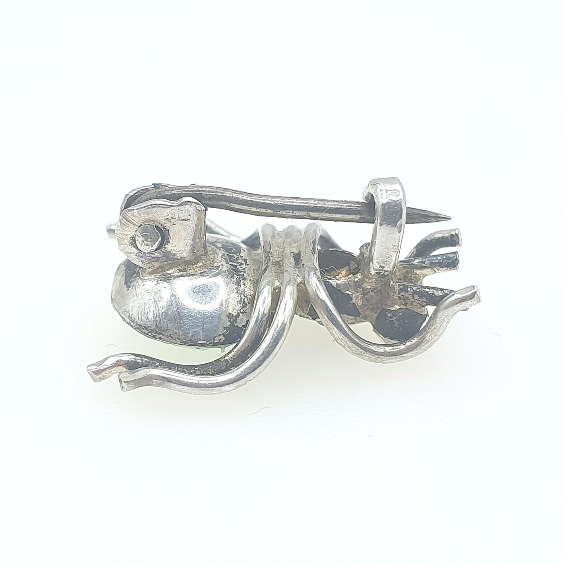 Antique Victorian Solid Silver Spider Brooch Green Paste Tiny Spiders Spiderweb Insect Bug Womens Vintage Jewelry Jewellery