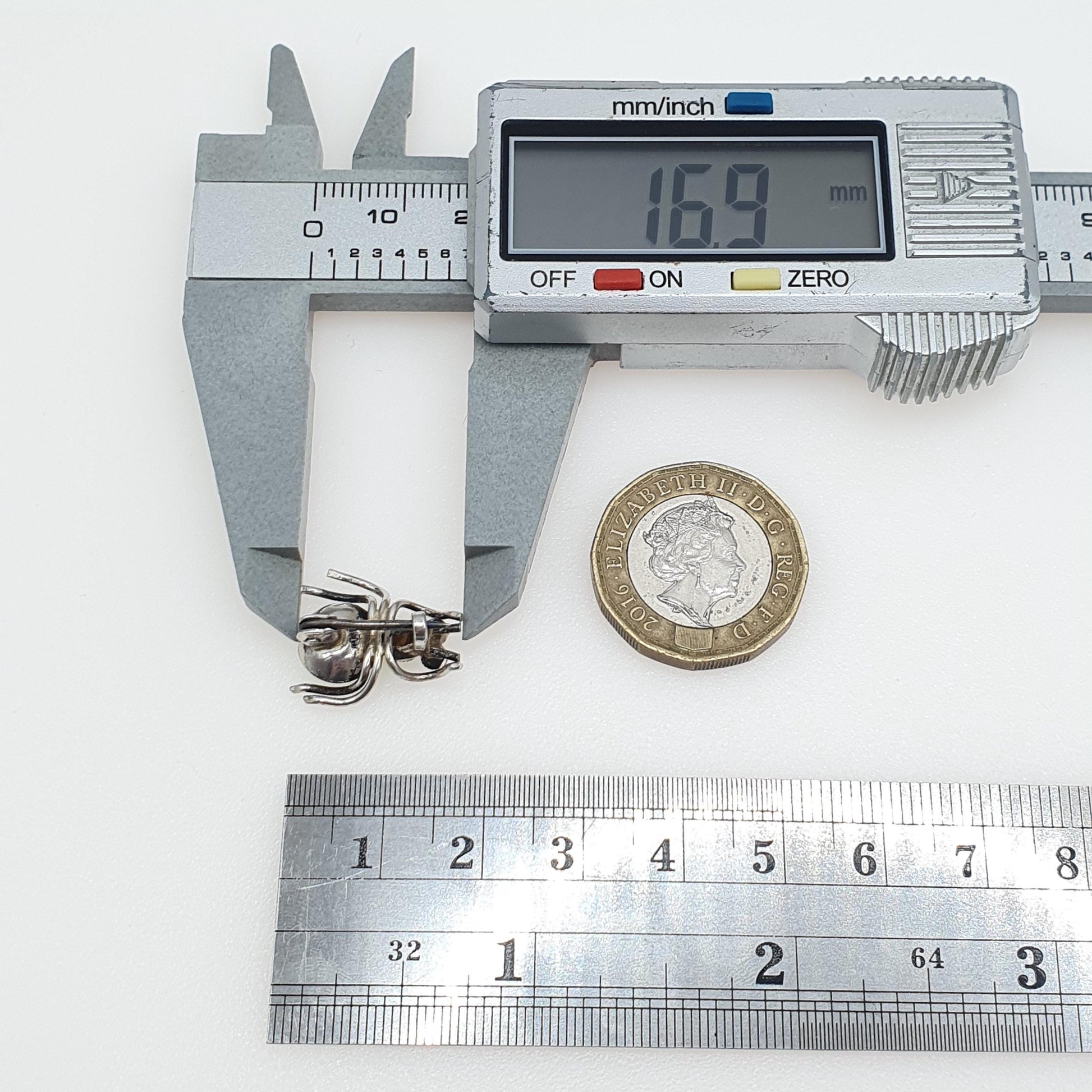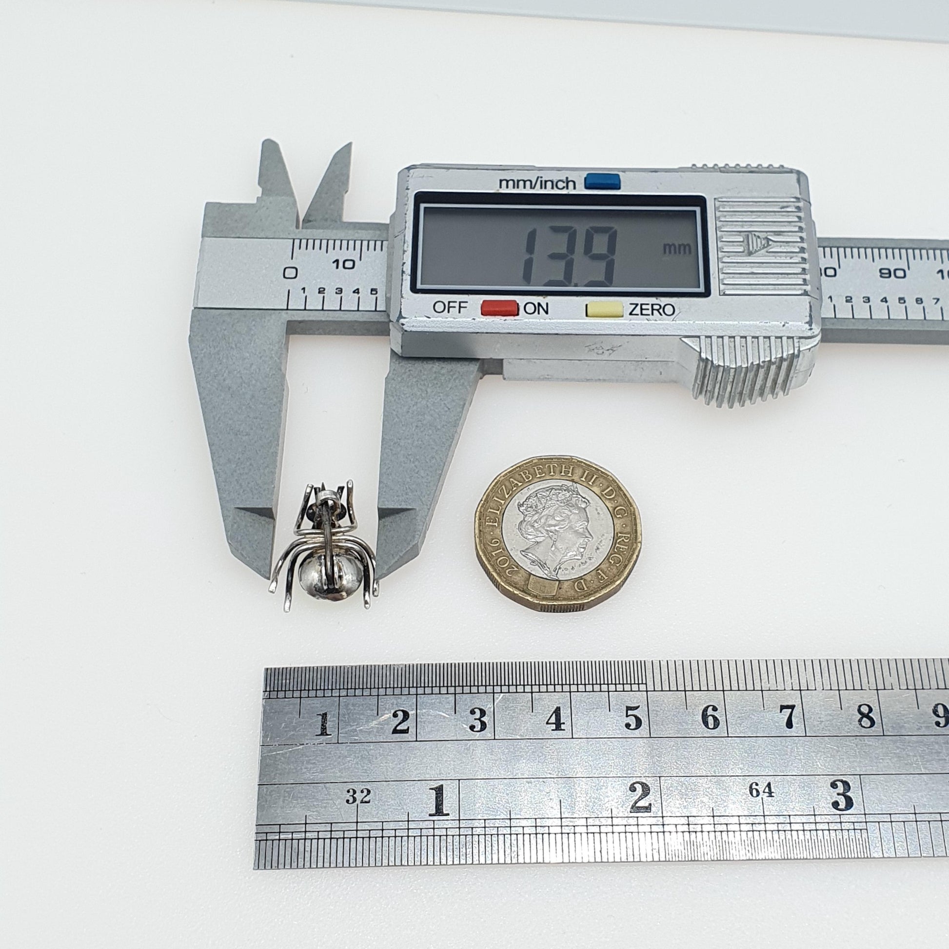 DESCRIPTION: A brilliant and rare antique solid silver tiny spider brooch, adorned with various pastes. As to be expected with age, the item is not stamped, but t for high grade silver (800+) It weighs approx. 1.85g and the size dimensions are in the latter photos.