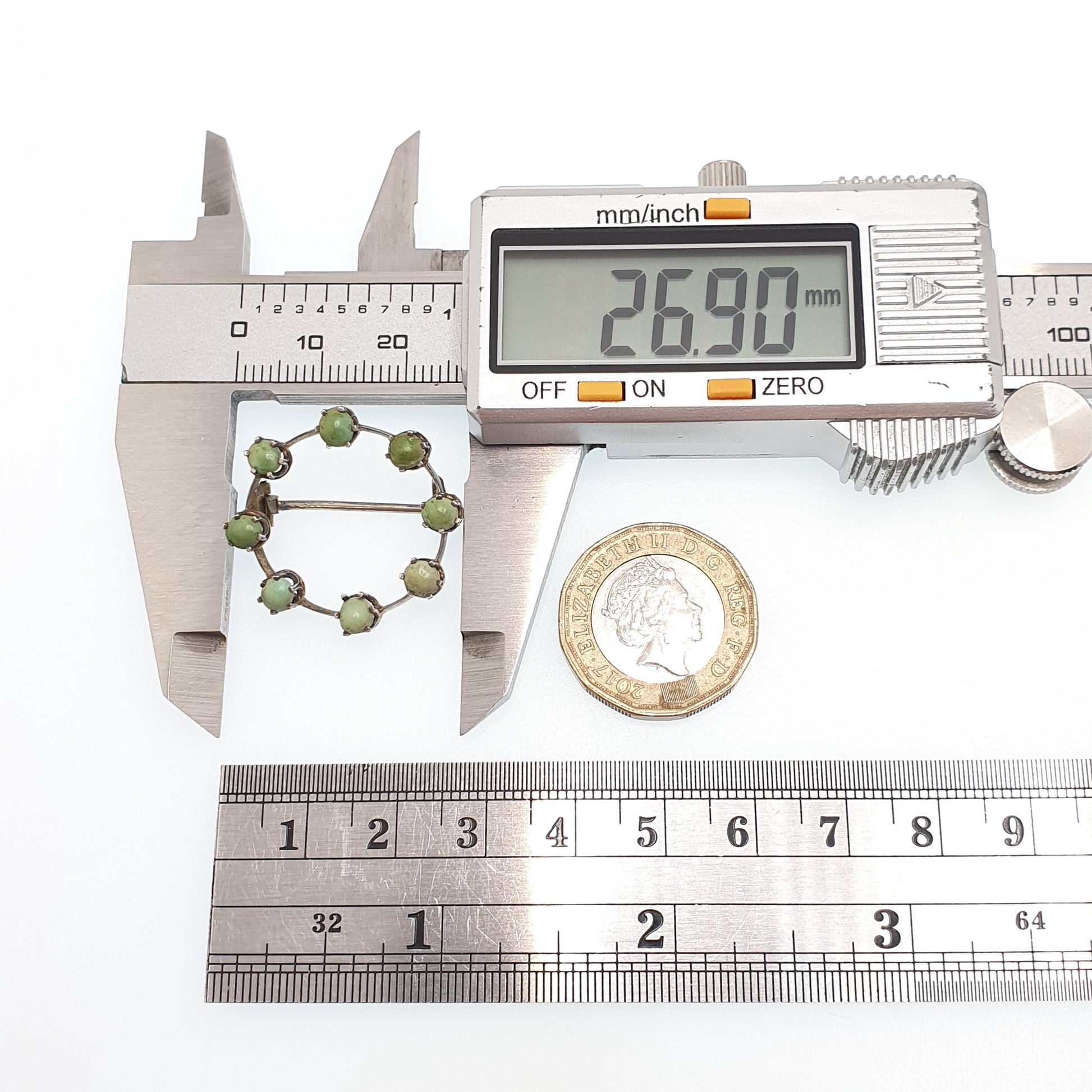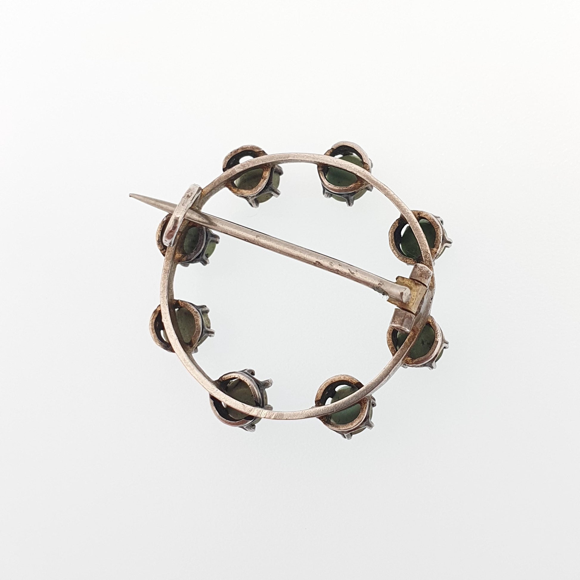 Antique Victorian Solid Silver Turquoise Brooch Circle O 0 Zero Infinity Natural Gemstone Womens Jewelry Jewellery Vintage