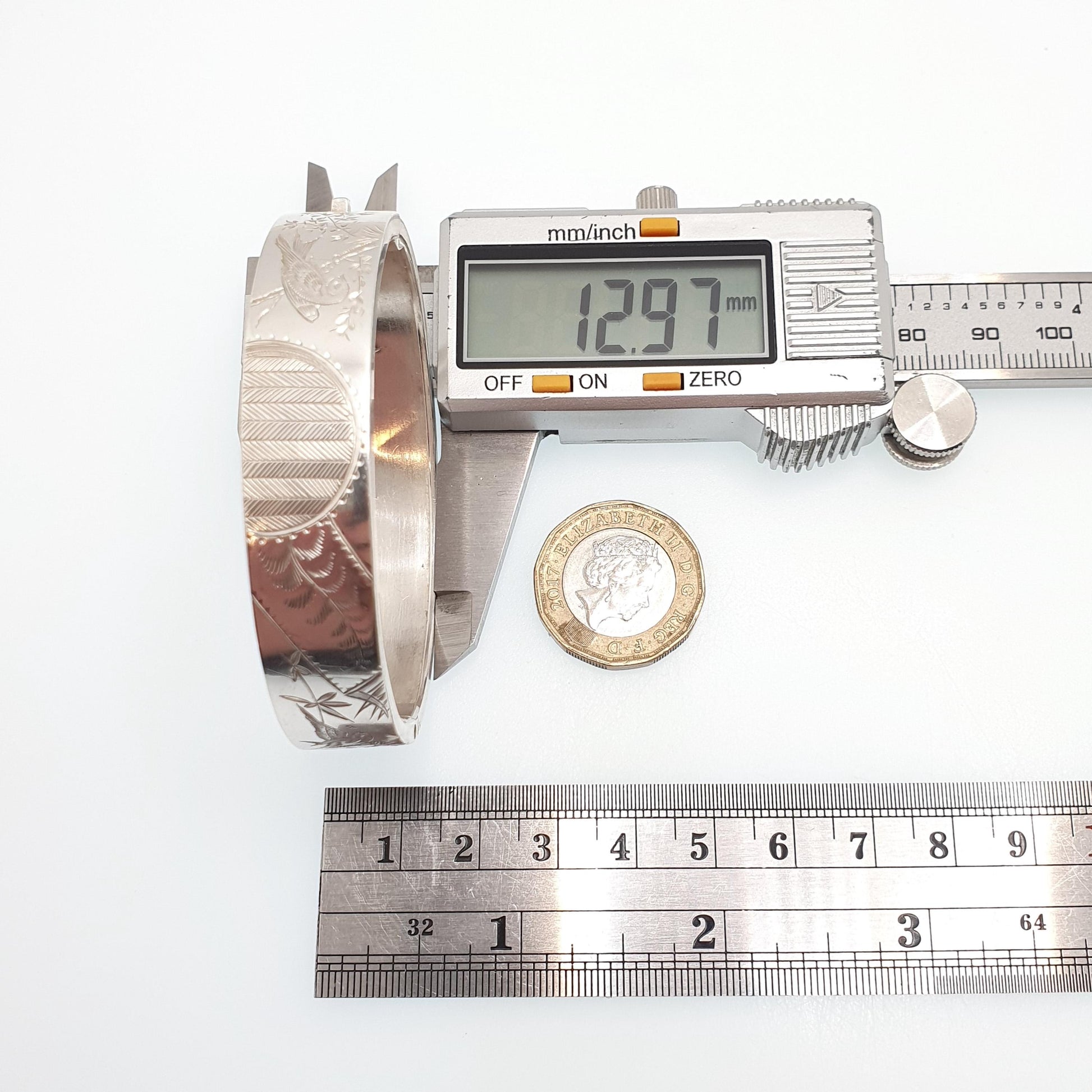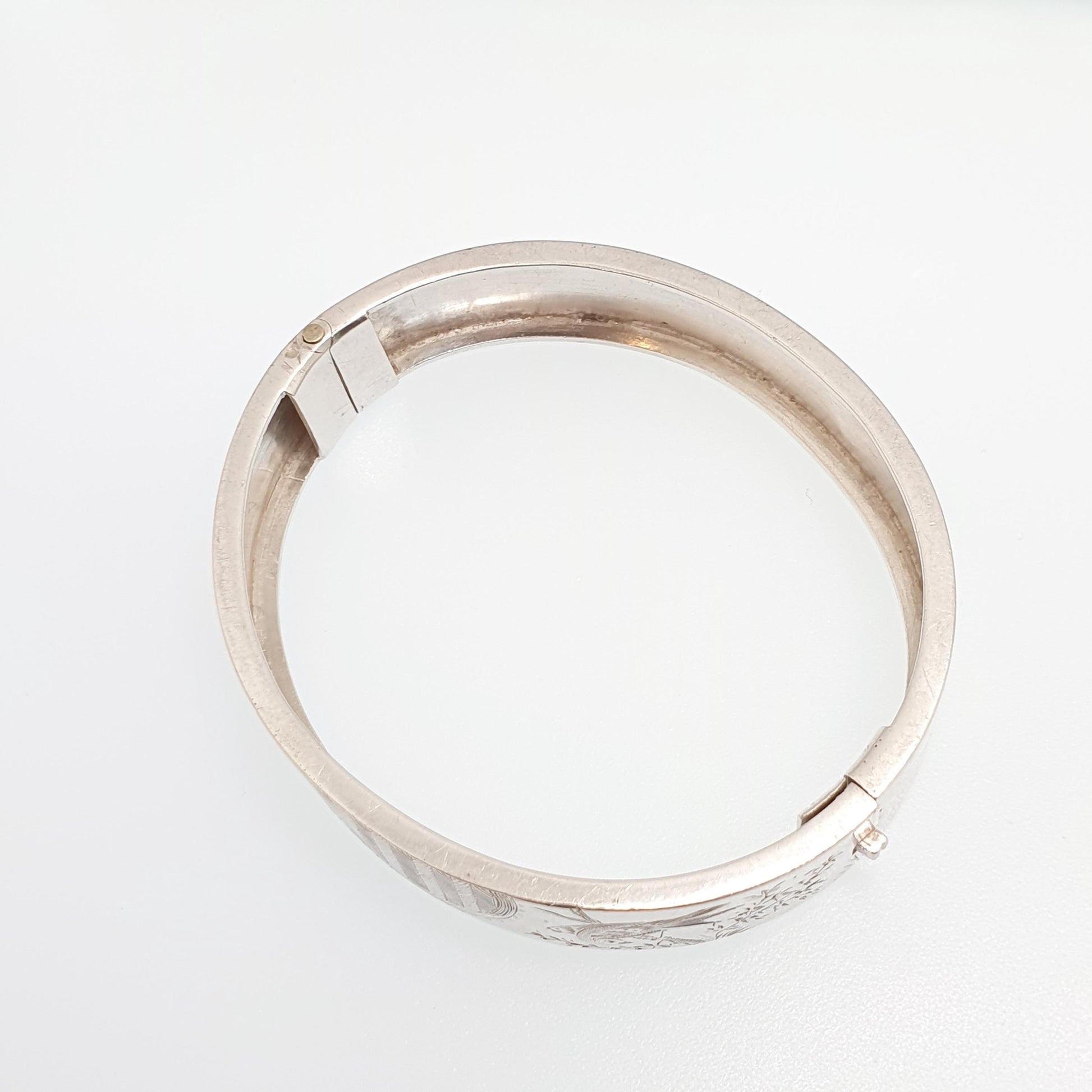 DESCRIPTION: A beautiful antique Victorian sterling silver snap bracelet, with a hand engraved face depicting a birds. It measures internally 5.5cm or 2.16" from hinge to clasp, therefore you wrist needs to be thinner than that for it to fit (you'll need small wrists). The total weight is 18.12g and the clasp opens/closes tightly. It's stamped "STERLING" for sterling silver. There are a few dents on the rear (see pictures/video).