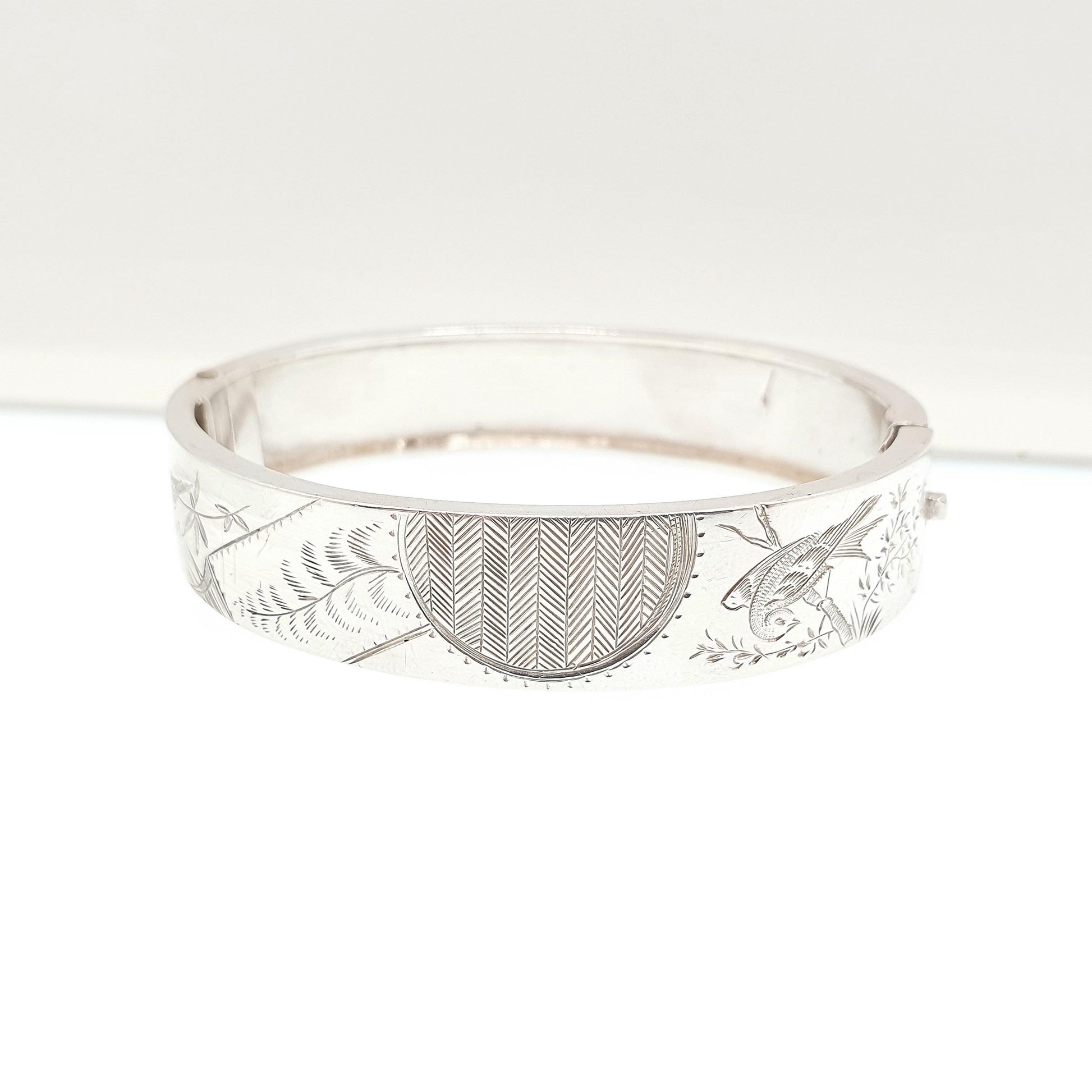 Antique Victorian Sterling Silver Bird Bracelet Bangle Hand Engraved Aesthetic 18.12g Songbird Swallow Vintage Womens Jewelry Jewellery