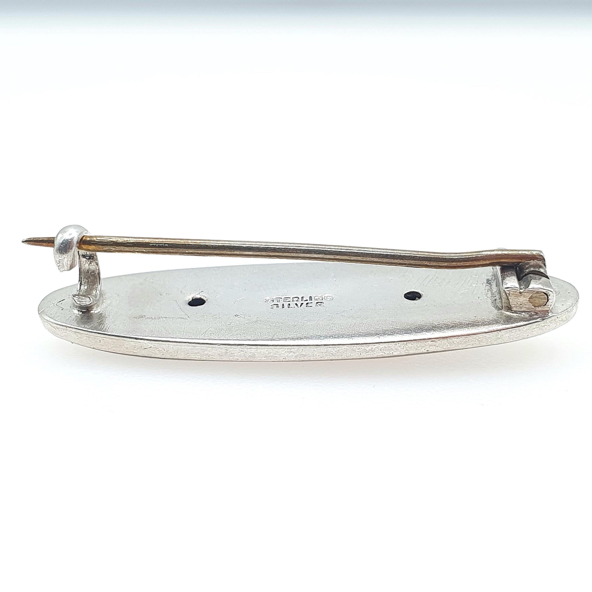 DESCRIPTION: A beautiful antique sterling silver brooch, adorned with black enamel and seed pearls. It's stamped "STERLING SILVER", weighs 4.19g and the size dimensions are in the later photos. PLEASE NOTE: There are some minor marks to the enamel, to be expected with age and use (see photos/video).