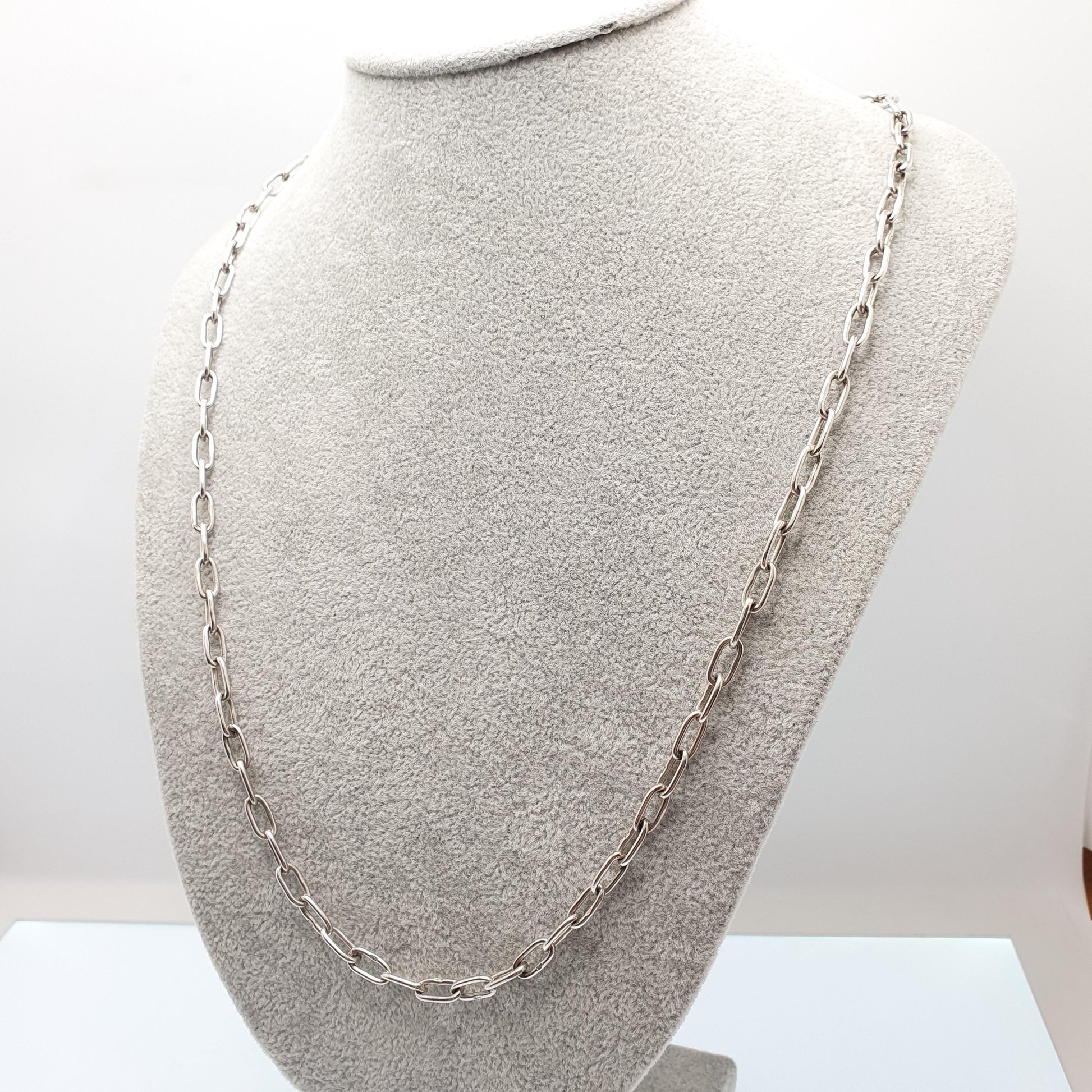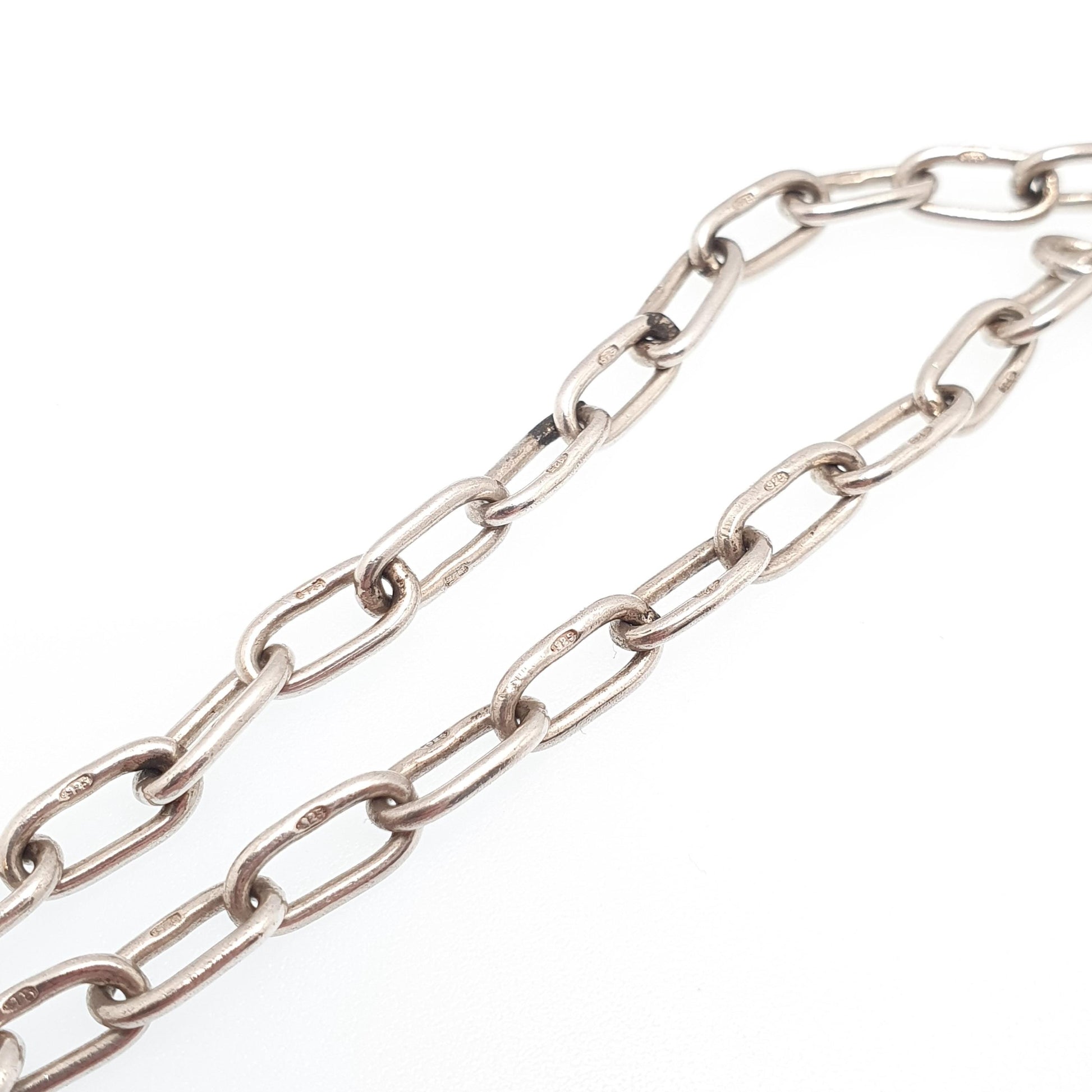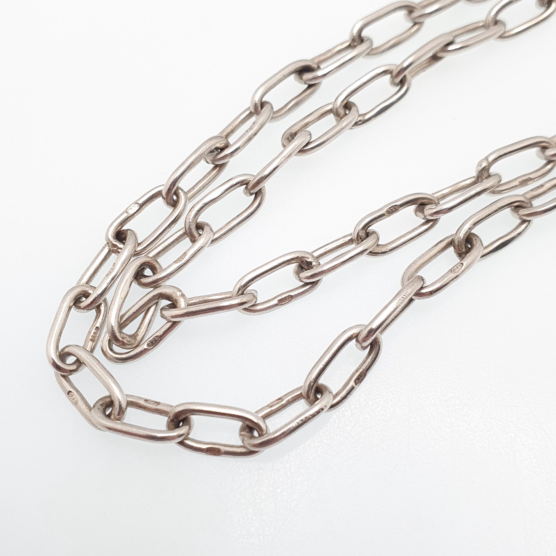 DESCRIPTION: A genuine antique Victorian sterling silver oval cable link chain necklace, with a dog clip clasp. The chain measures approx. 65cm or 25.5" in unfastened length, weighs 25.61g and is approx. 5.1mm thick. It's stamped "925" on the links and tests for sterling silver.