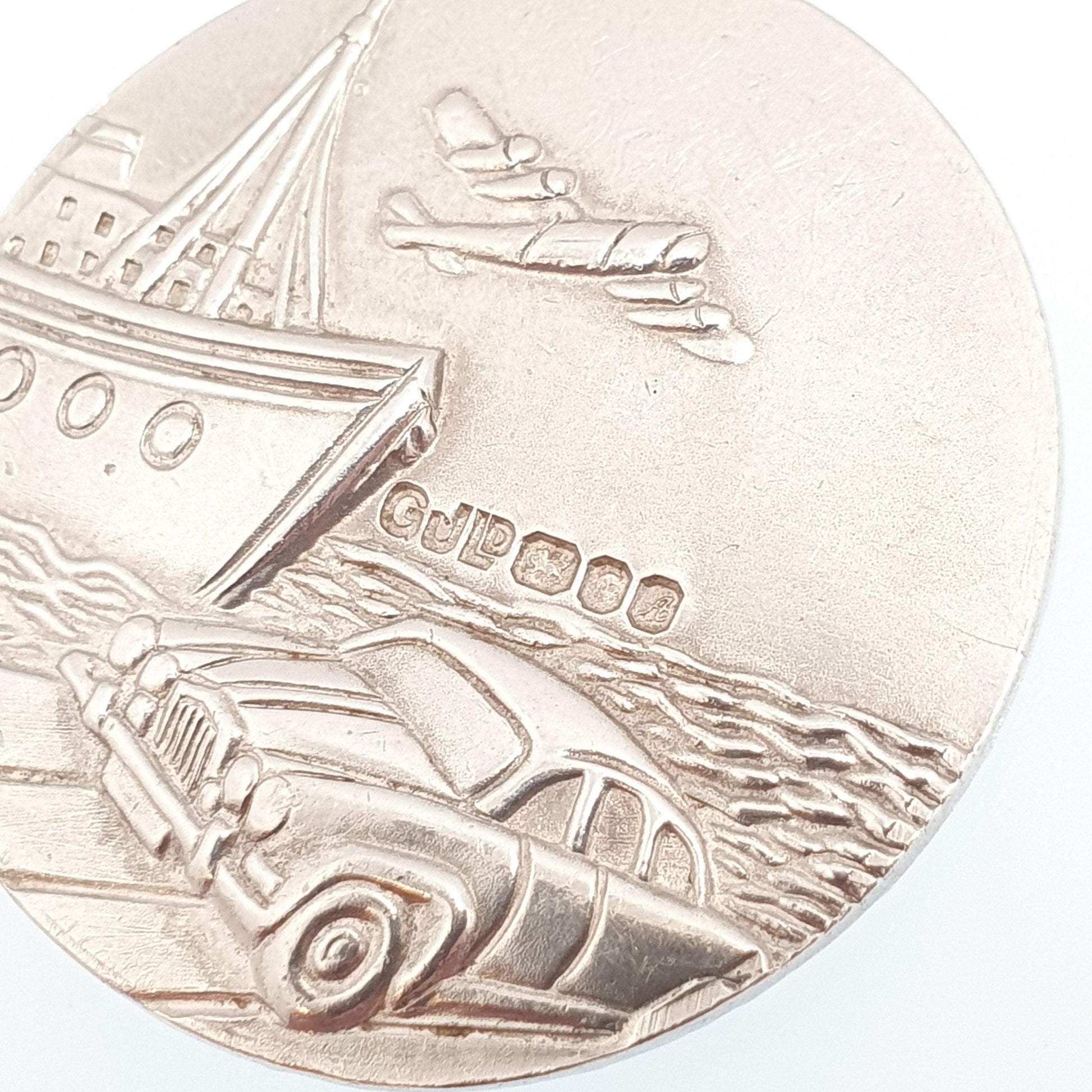 DESCRIPTION: A large and chunky genuine Georg Jensen vintage sterling silver St Christopher pendant necklace. The item has a crisply moulded rear, depicting a plane, boat and car. The pendant is fully hallmarked, dating to 1975, along with Georg Jensen's makers mark. It weighs 13.94g and the size dimensions are in the last couple of photos.