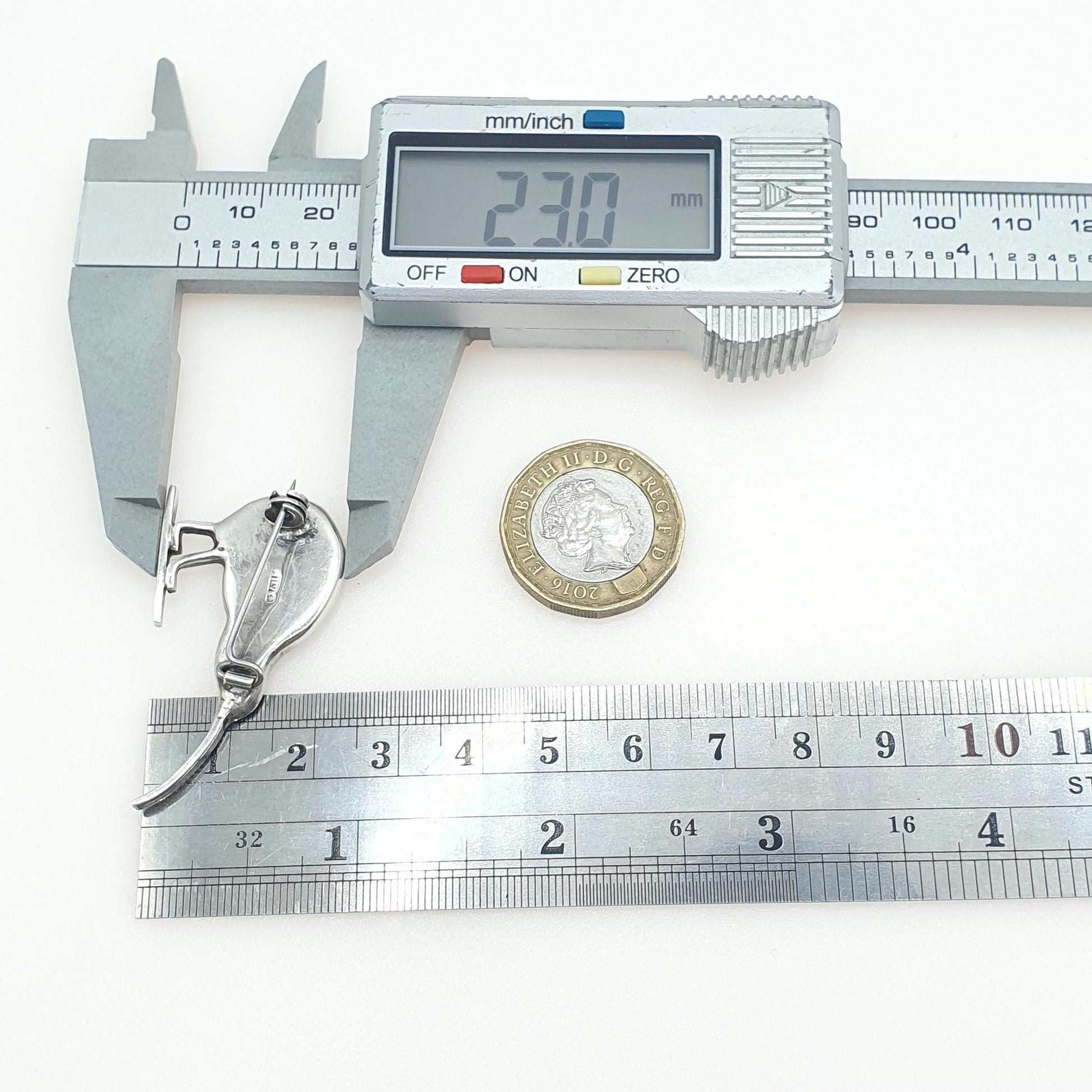 DESCRIPTION: An eye catching vintage sterling silver kiwi bird brooch, adorned with genuine abalone shell. The item weighs approx. 5.72g and the size dimensions are in the later photos. The item is stamped "SILVER" for solid silver.