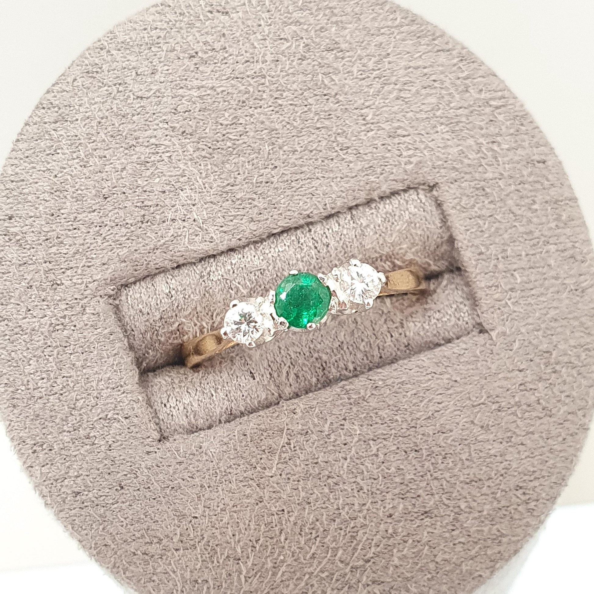 Vintage 18ct Gold Diamond & Emerald Ring Trilogy Solid 18k 18kt 750 Natural Gemstones Jewelry Jewellery