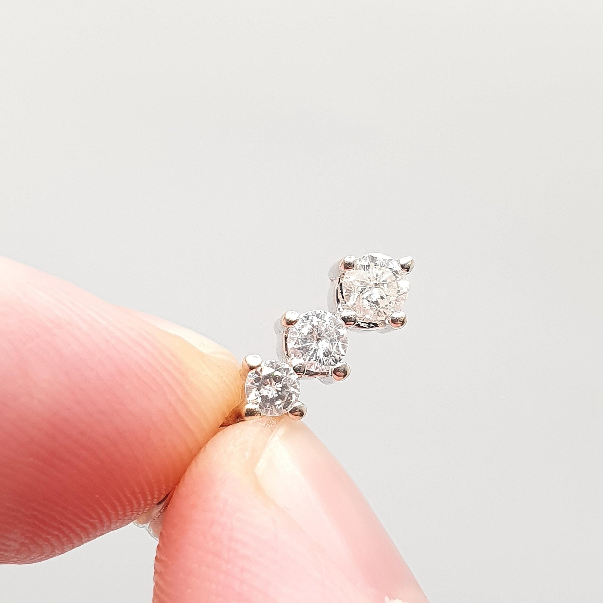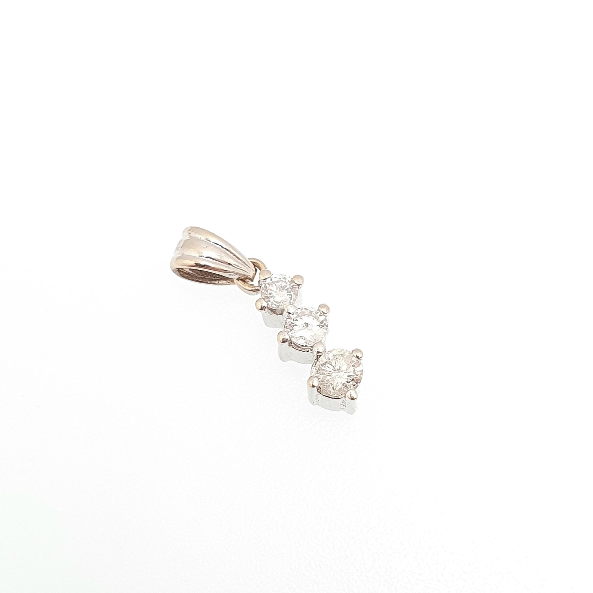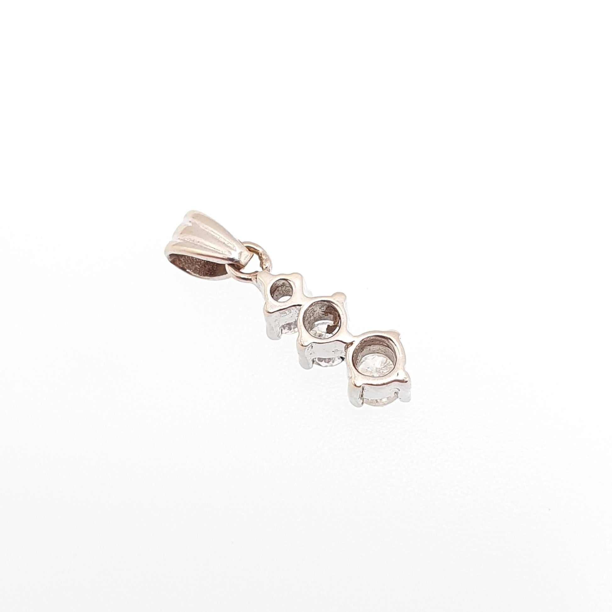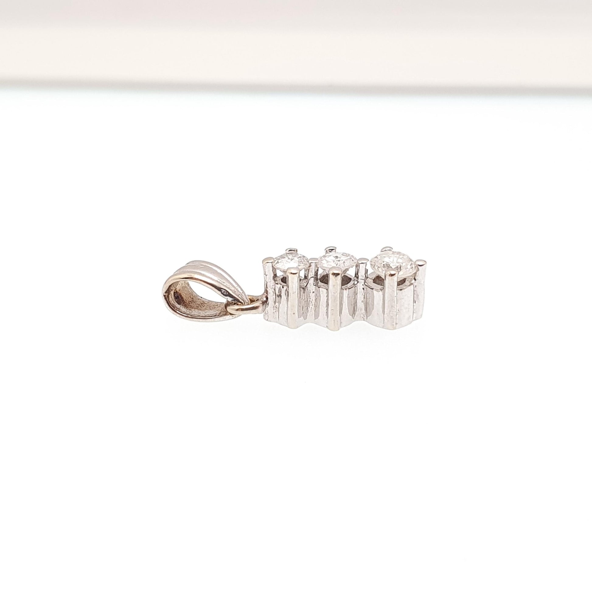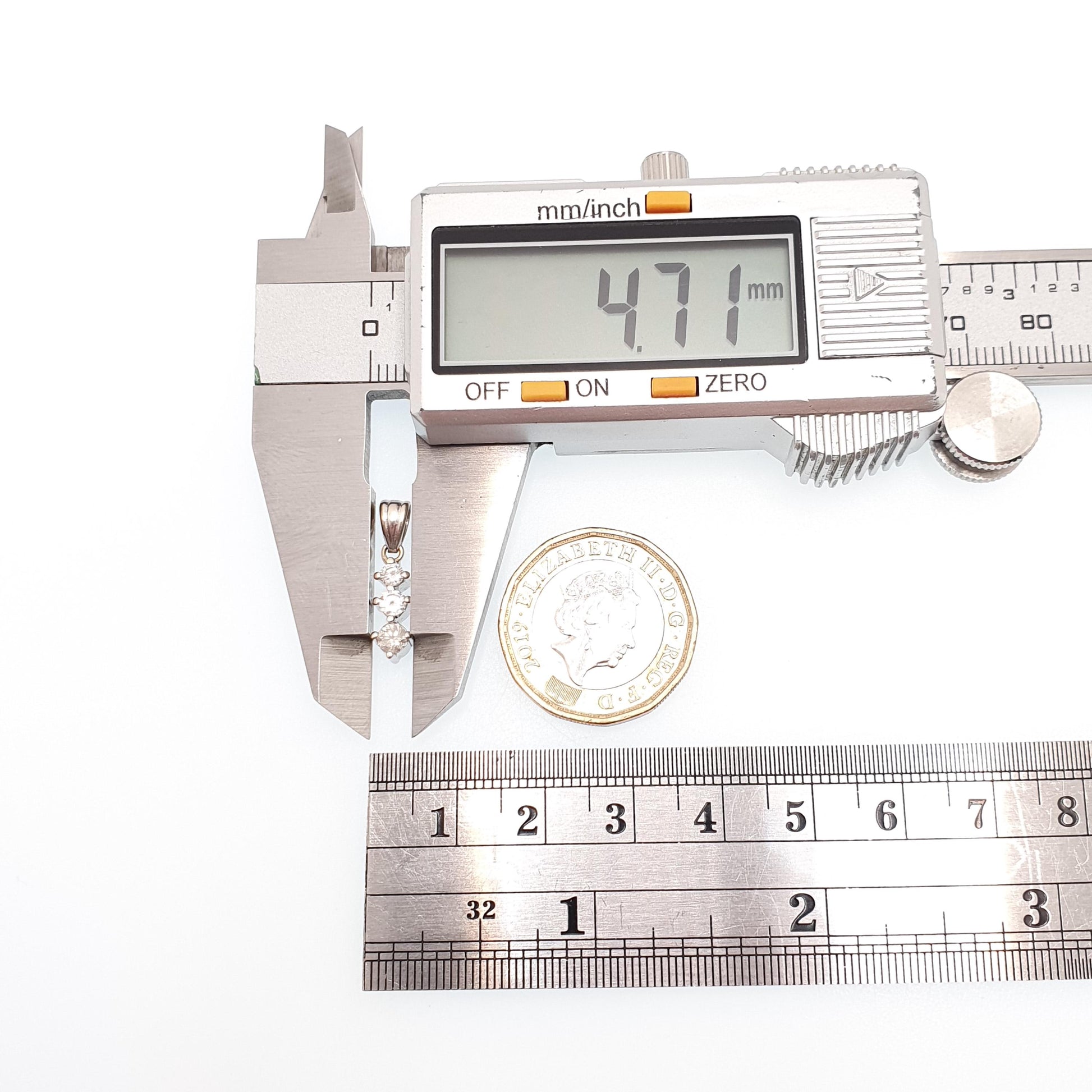 DESCRIPTION: A sweet vintage solid 18ct 750 white gold diamond pendant, with a beautiful sparkle. The pendant boasts three natural diamonds that are brilliant cut, with a combined carat weight of 0.22. The item weighs approx. 1.48g and the size dimensions are in the later photos. As to be expected, the item isn't stamped/hallmarked, it tests for solid 18ct white gold.
