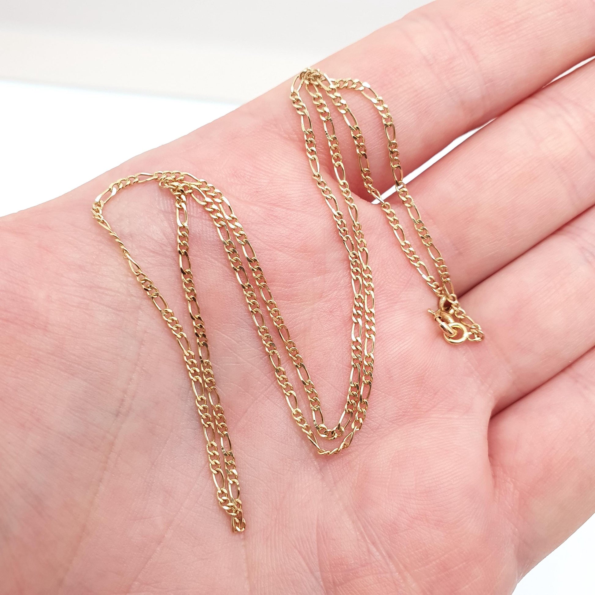 Vintage 18k 18ct Gold Chain Necklace Figaro Link Curb 43cm 16.9" 3.02g Yellow Solid 18 Carat Mens Womens Jewelry Jewellery