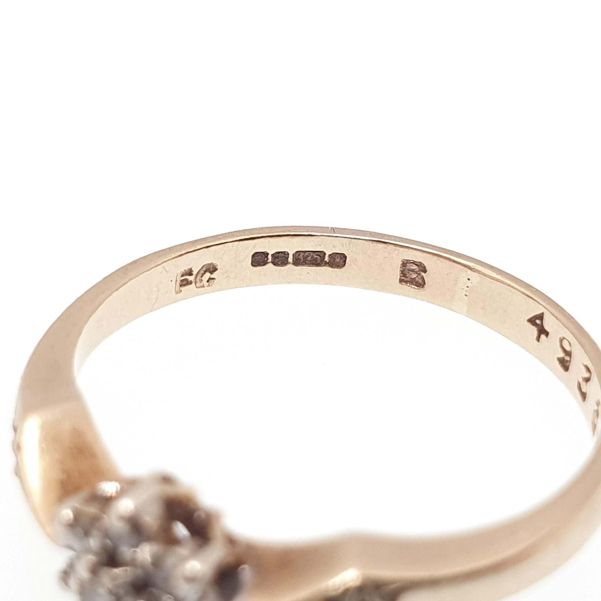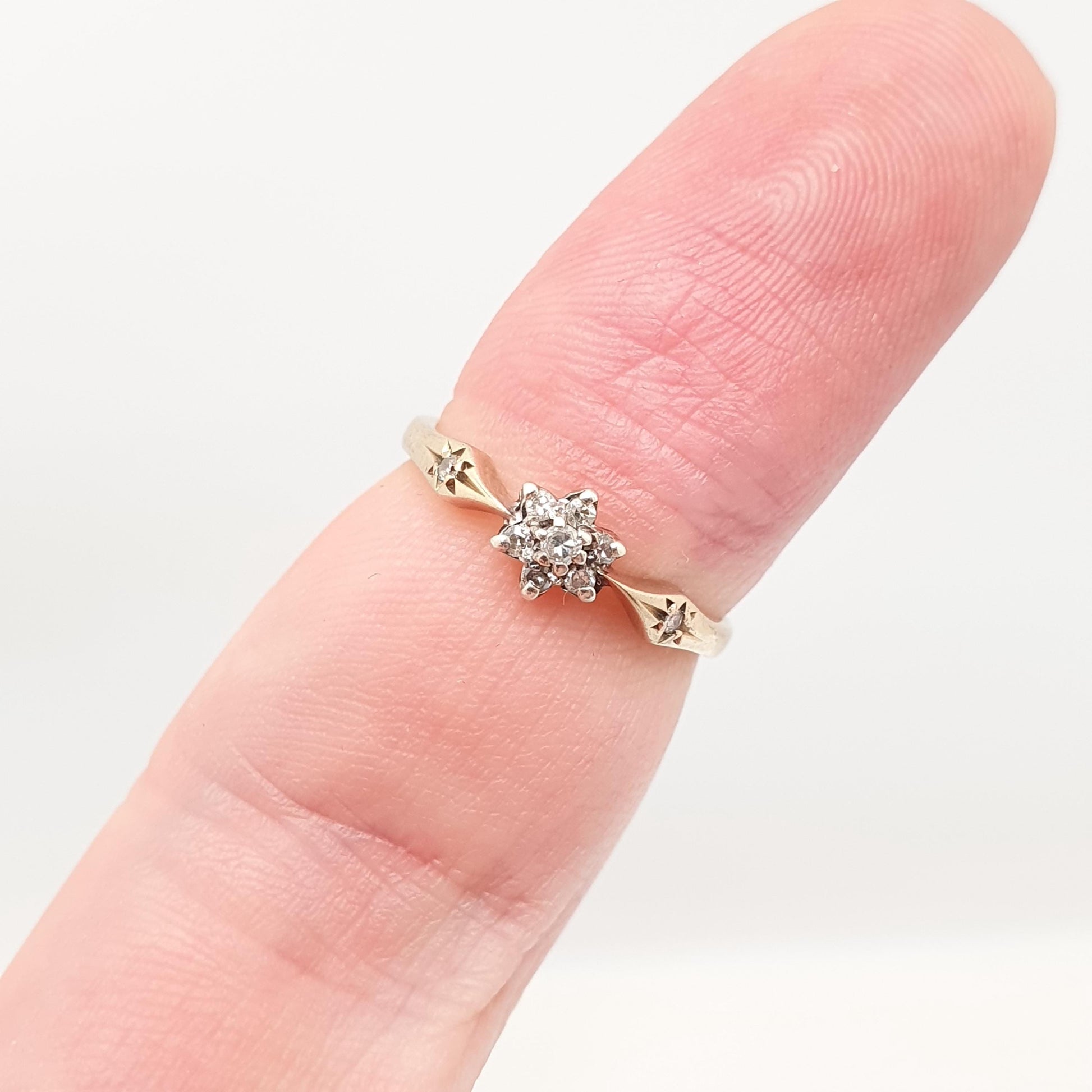 Vintage 9ct 9k Diamond Gold Ring Cluster Natural Diamonds Solid 375 Sparkly Genuine Real Gemstone Jewelry Jewellery