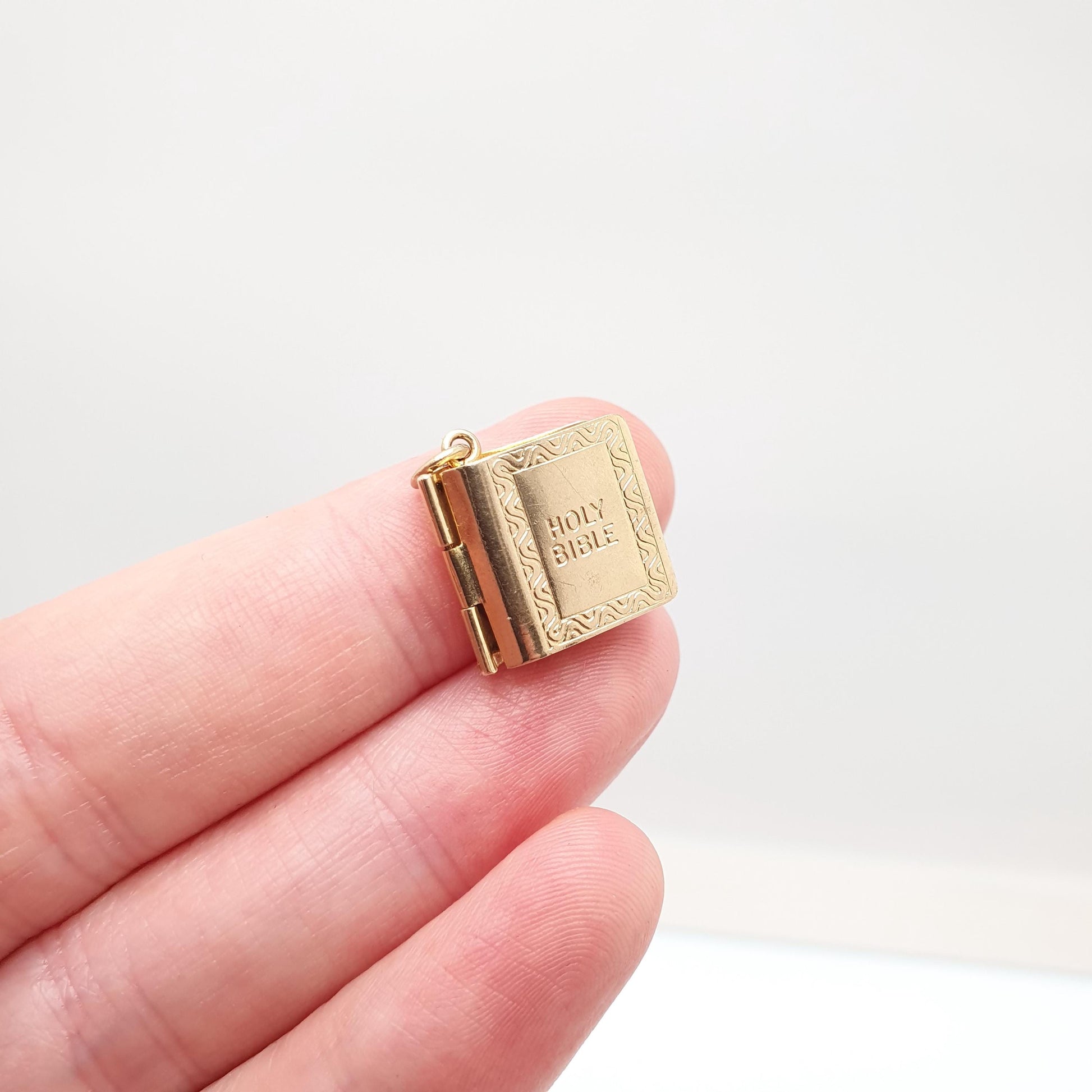 Vintage 9ct 9k Gold Bible Charm Bracelet Opening with Old and New Testament Necklace Pendant Solid 375 Christian Catholic Jewellery Jewelry