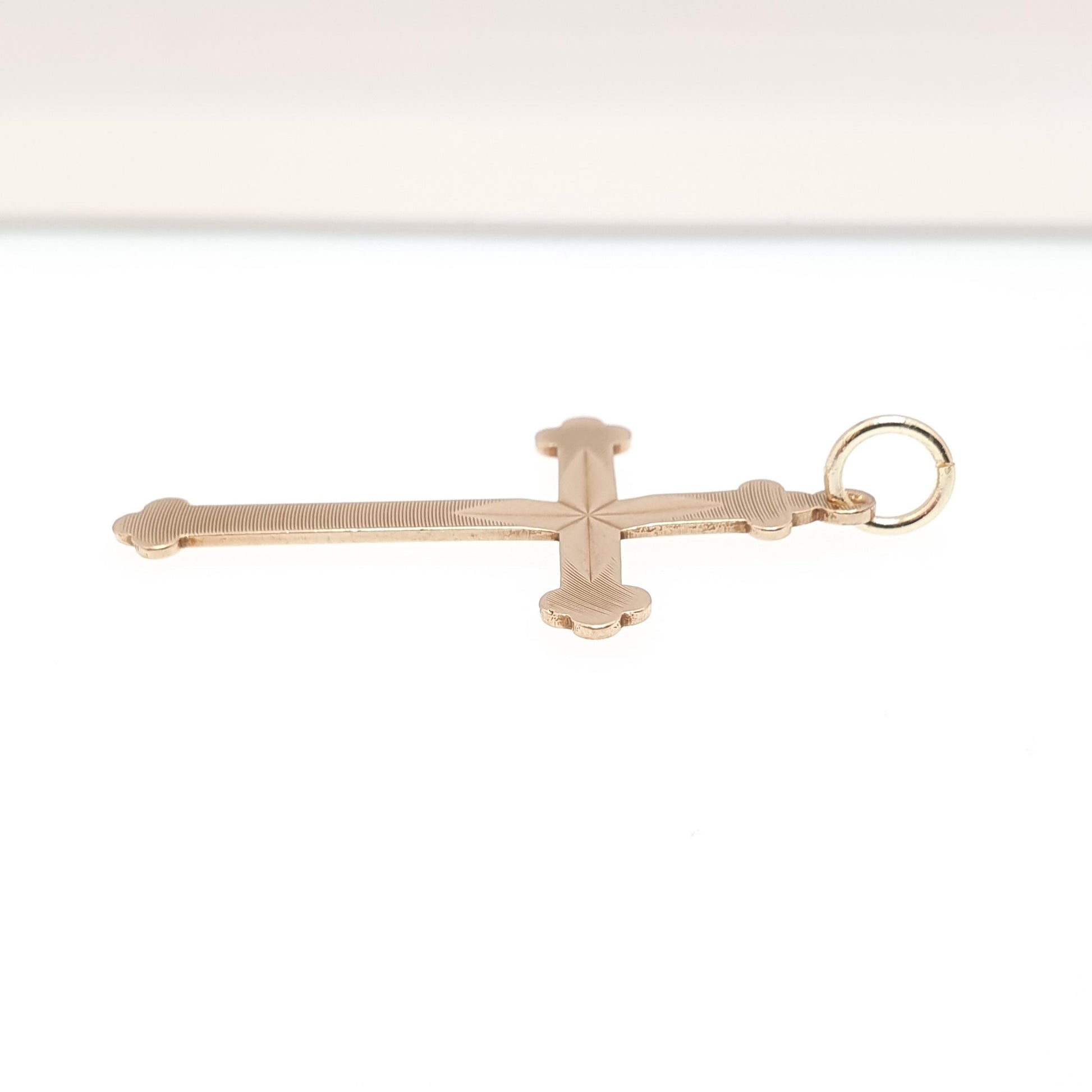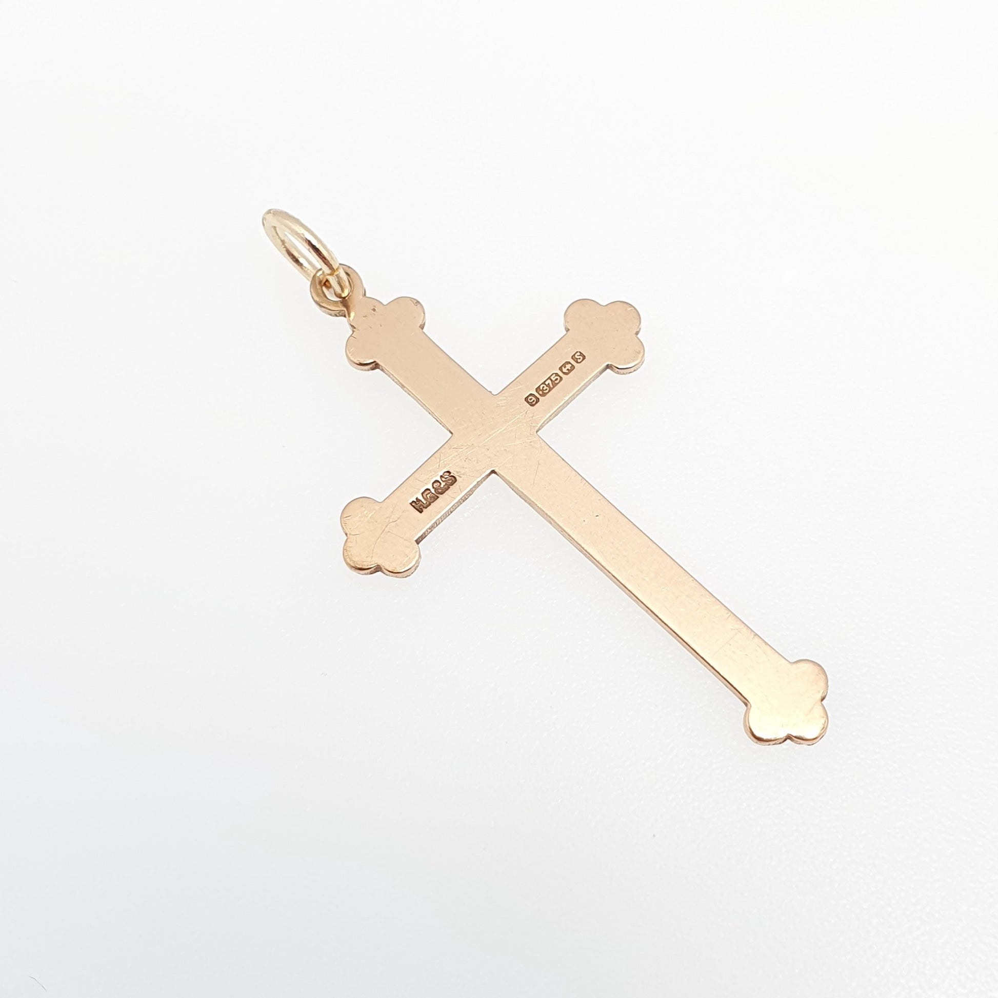 DESCRIPTION: A genuine vintage solid 9ct 375 gold bulbed crucifix cross pendant. The item is fully hallmarked for 9ct gold, dating to 1967. It weighs 1.44g and the size dimensions are in the last couple of photos.