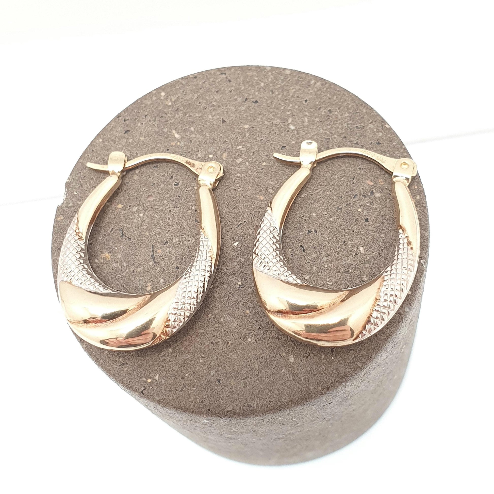 Vintage 9ct 9k Gold Hoop Earrings Large Big Gypsy Creole White Yellow 1980s 375 9 Carat Dangle Hanging Womens Jewelry Jewellery