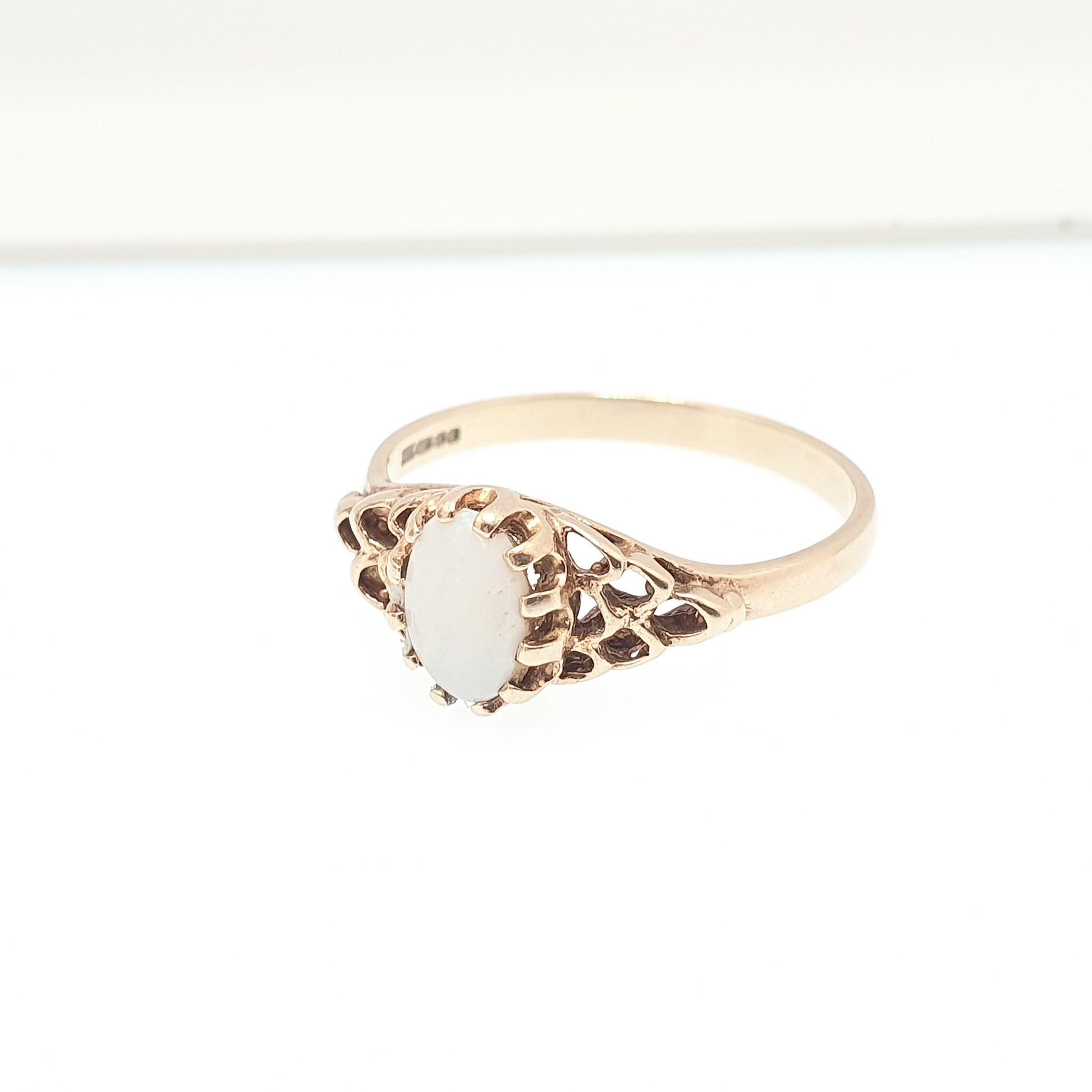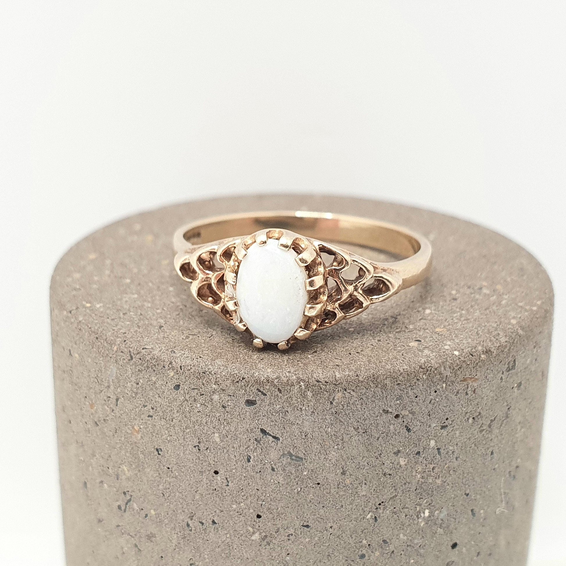 Vintage 9ct 9k Gold Opal Ring White Solitaire Gemstone Solid 9kt Yellow Hallmarked Retro Womens Jewelry Jewellery